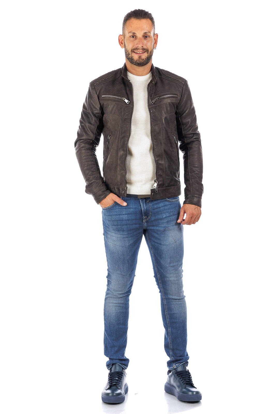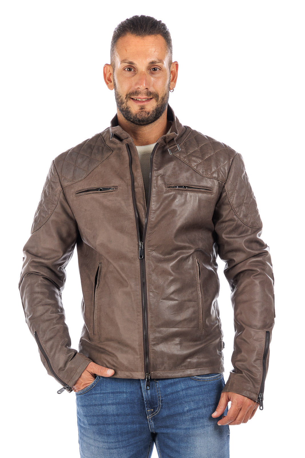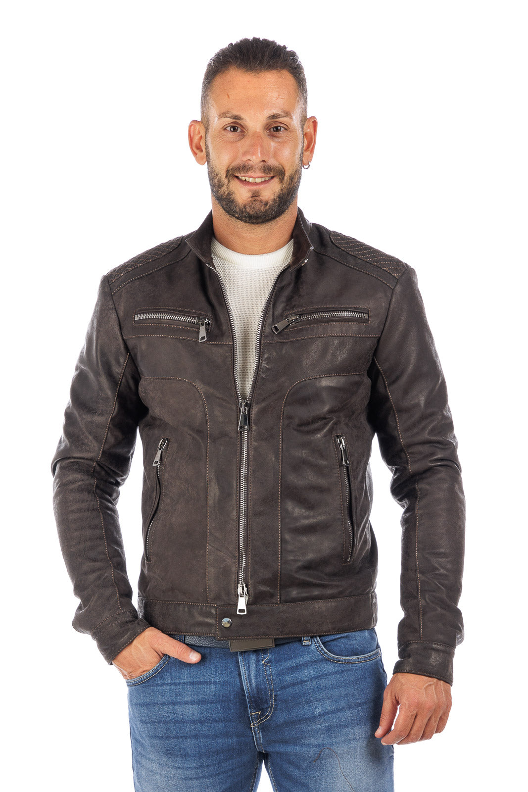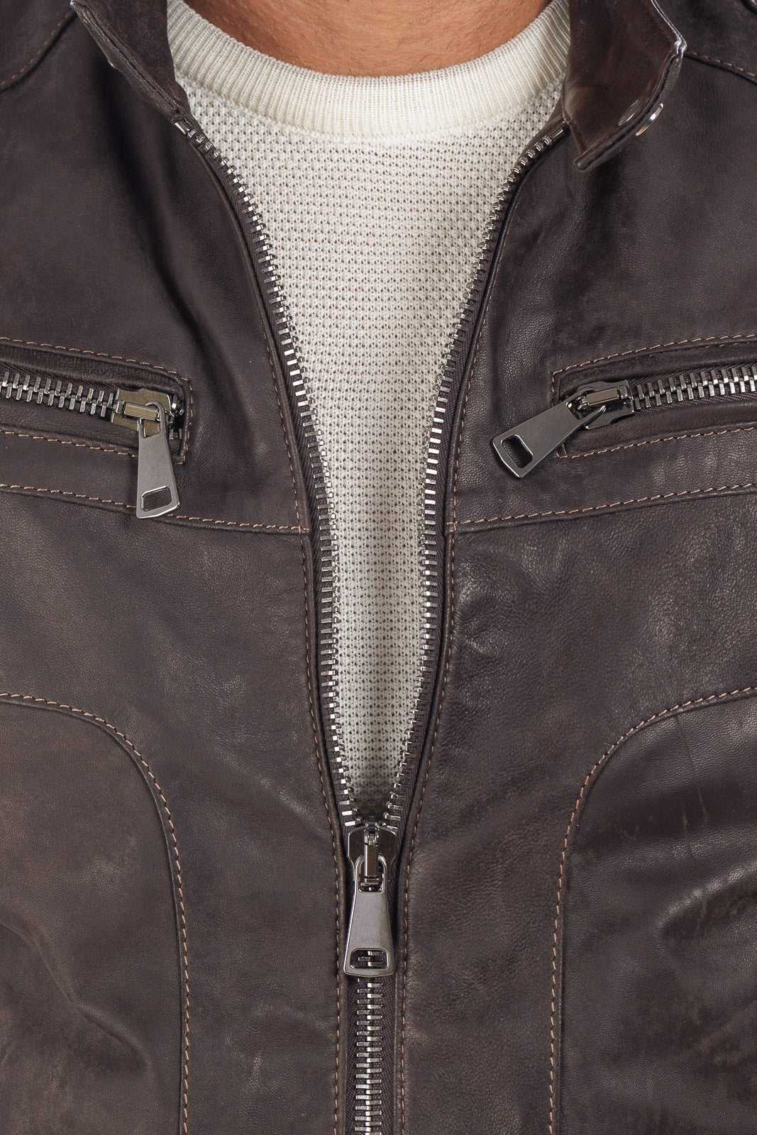 Giacca in pelle testa di moro vintage naturale con zip Triumph