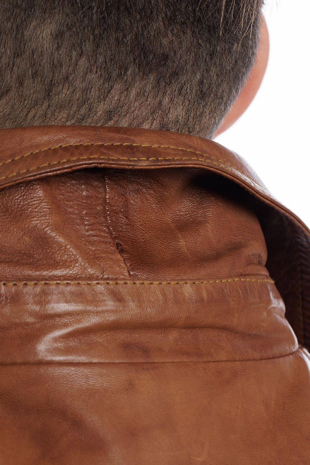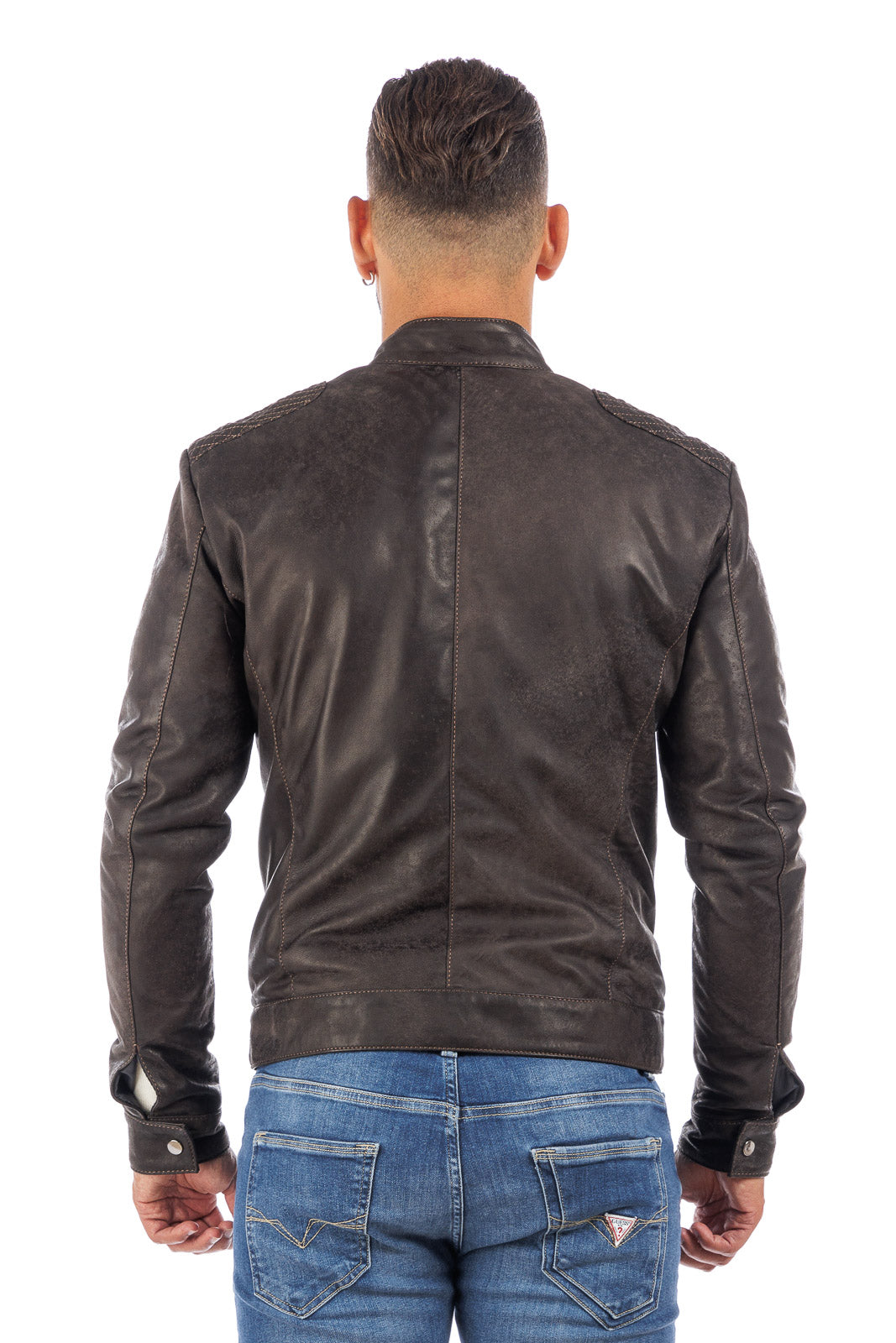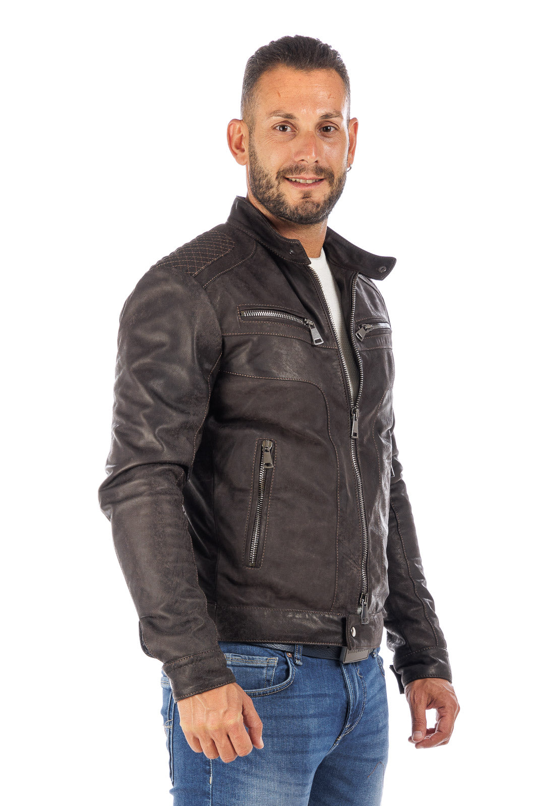 Giacca in pelle testa di moro vintage naturale con zip Triumph