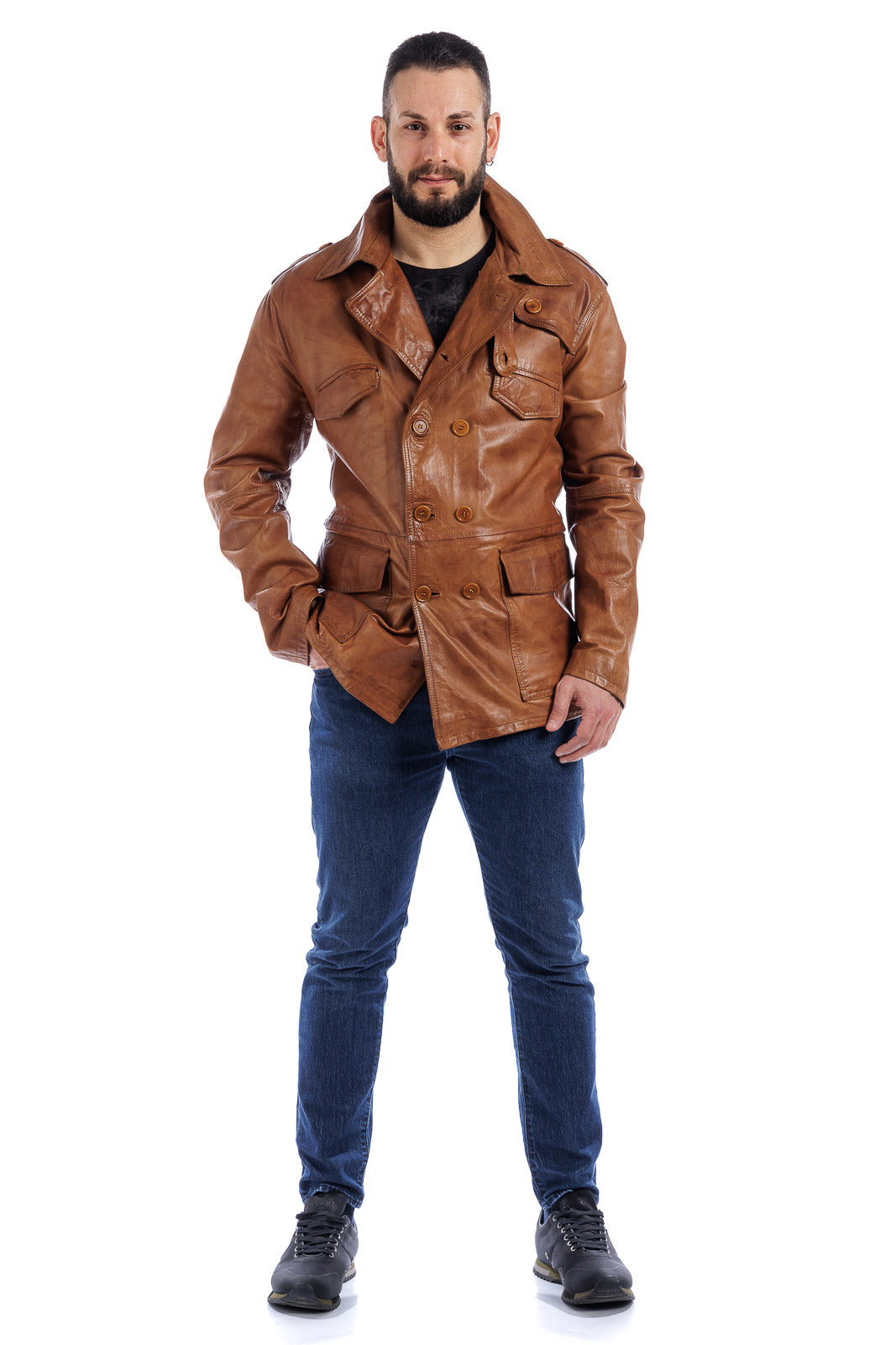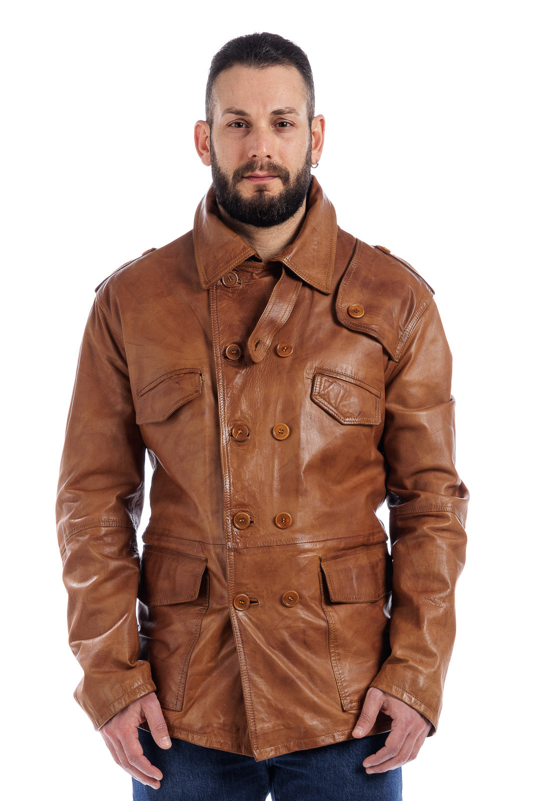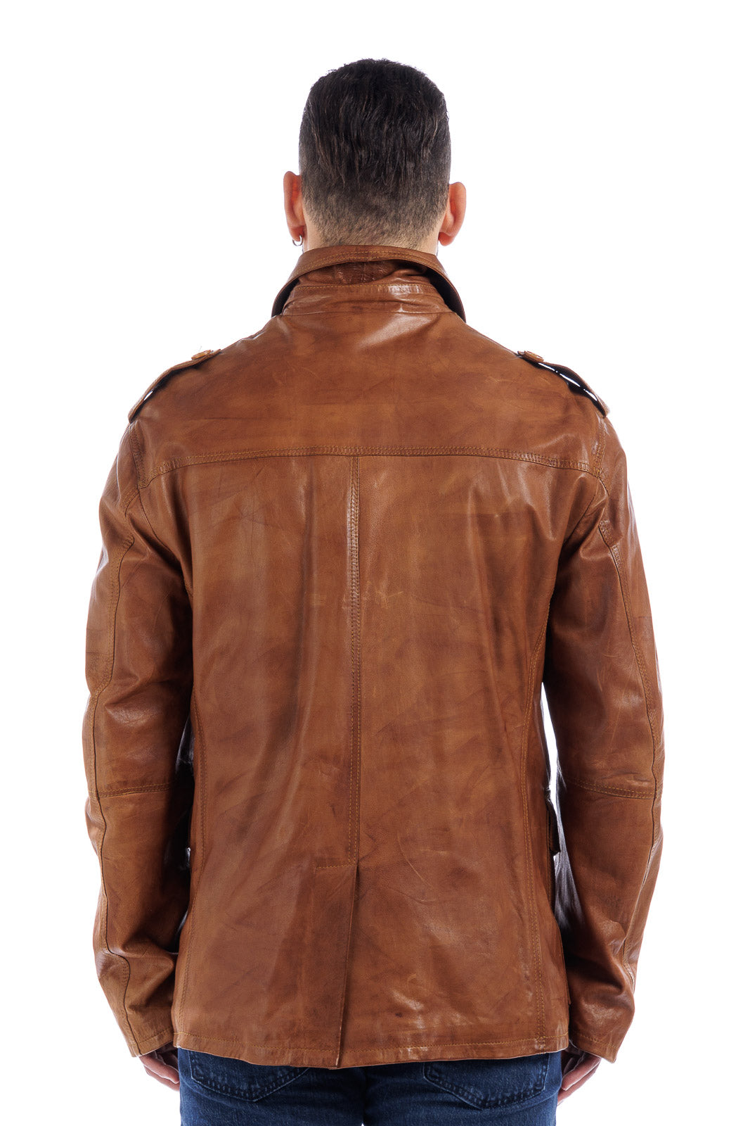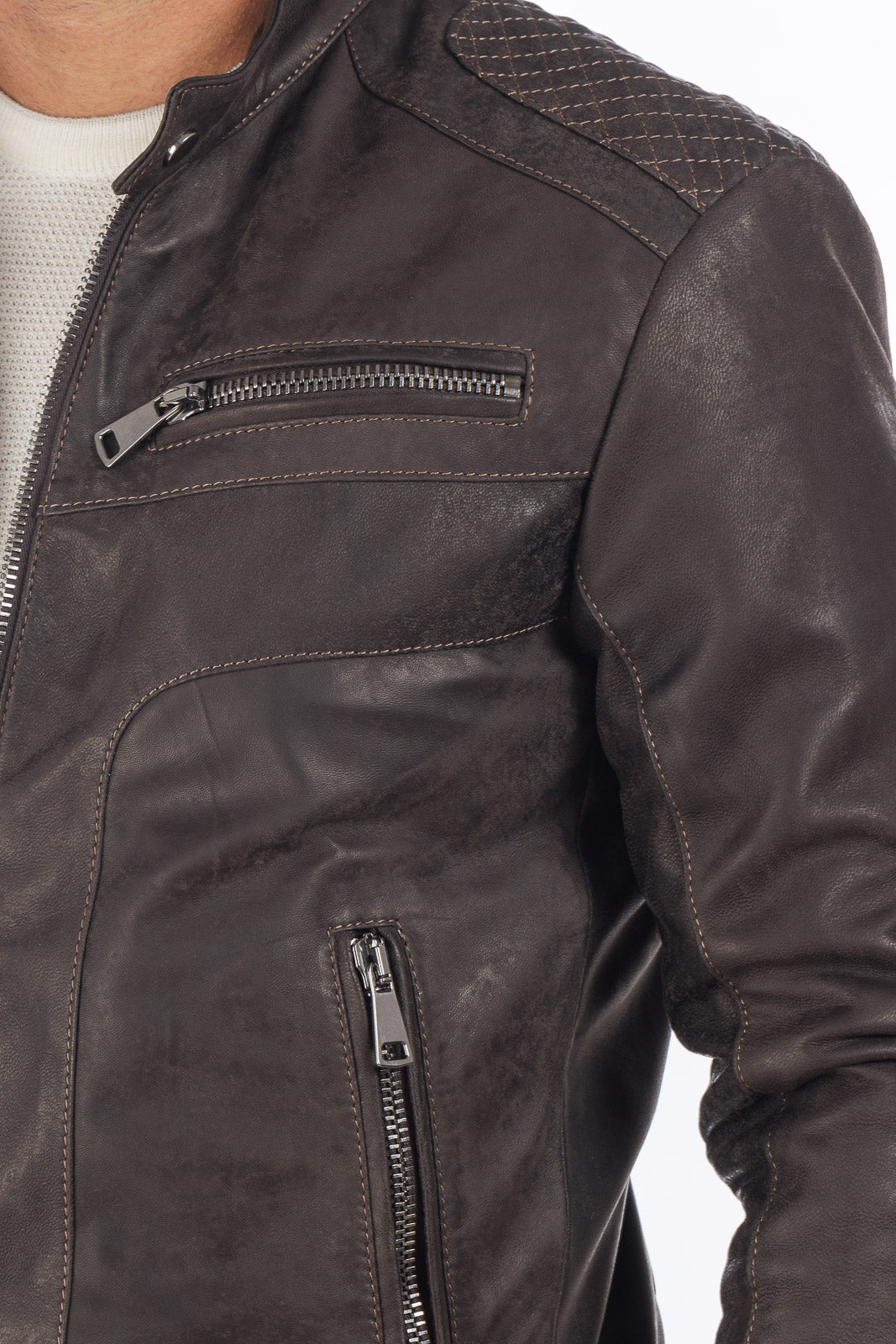 Giacca in pelle testa di moro vintage naturale con zip Triumph