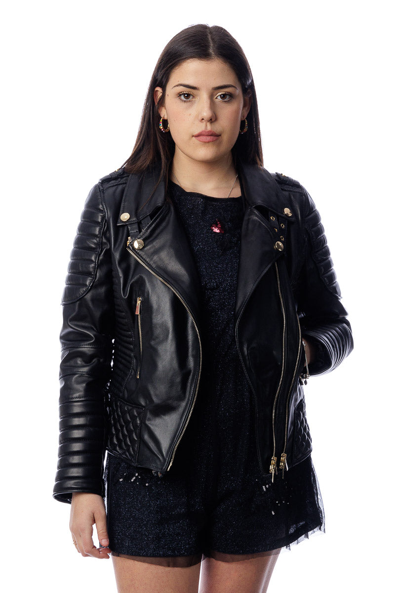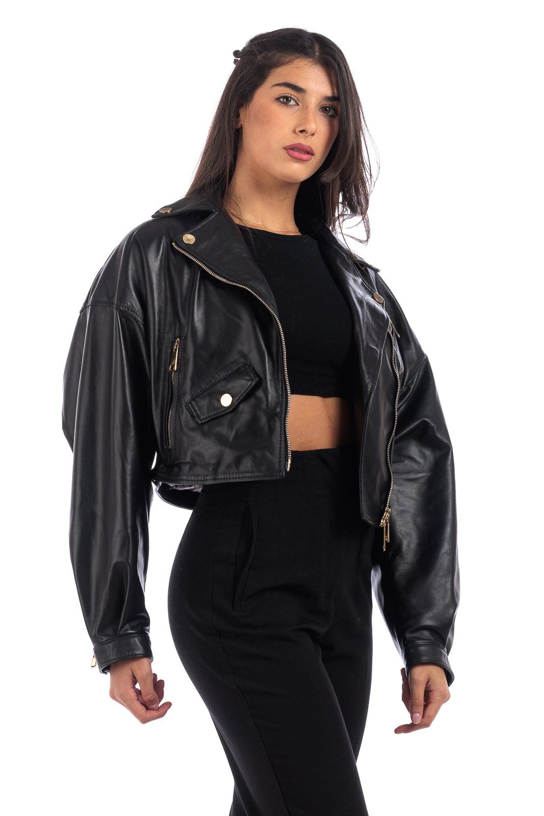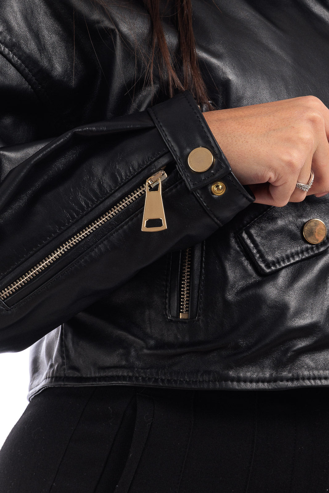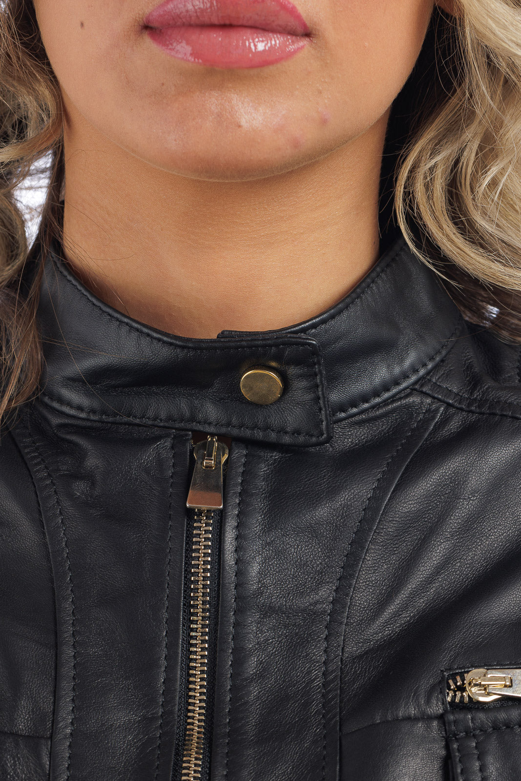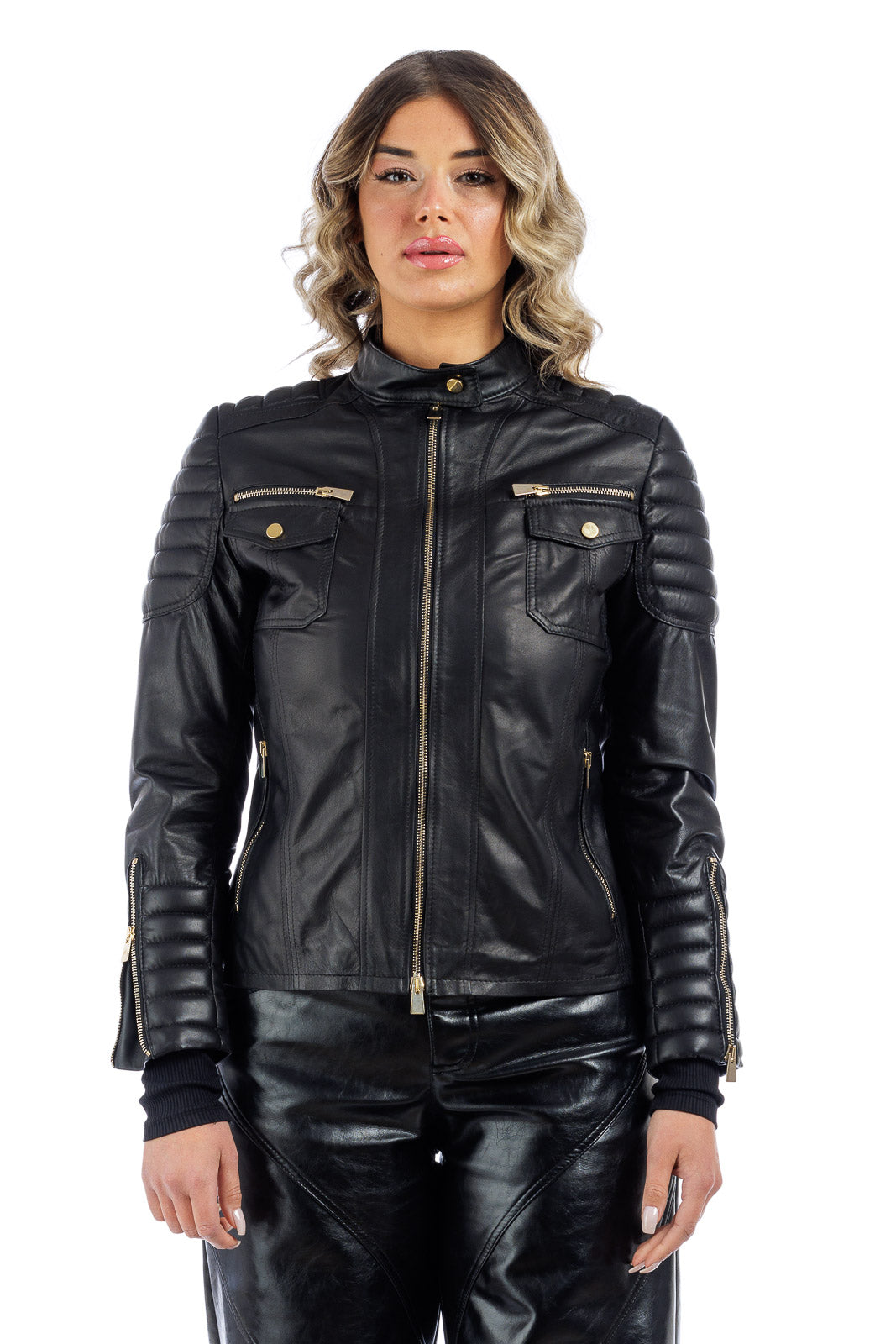 Giacca in pelle donna con zip chiodo 3000 punti a mano