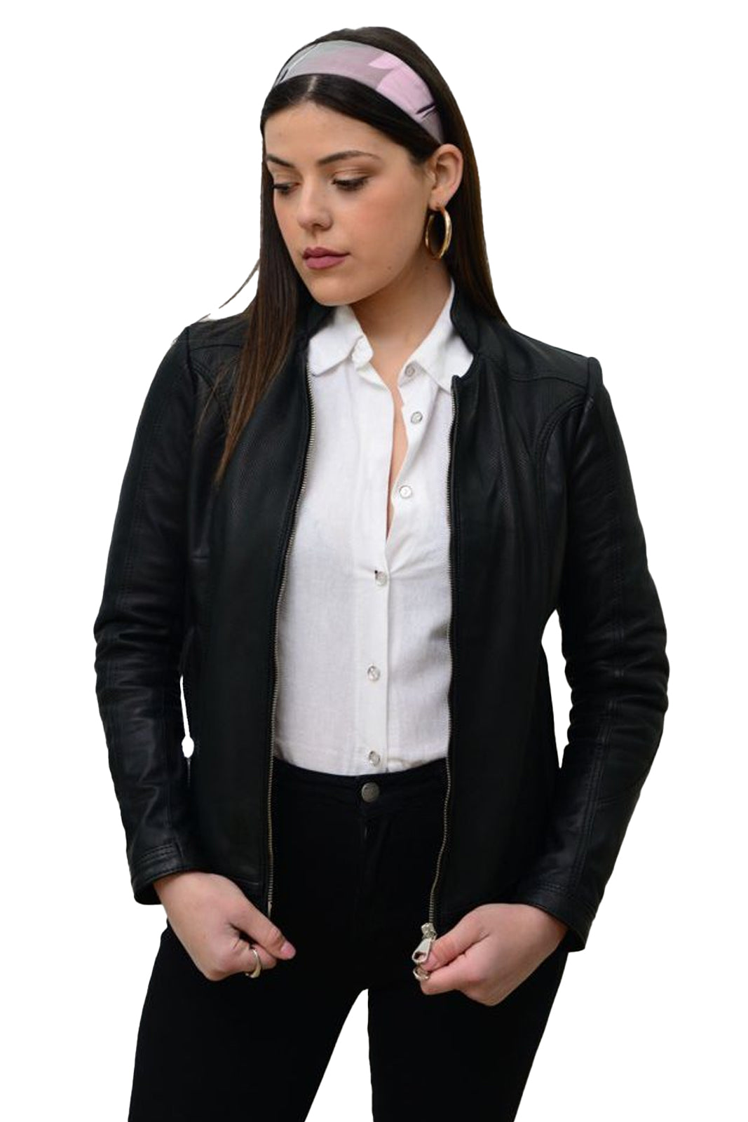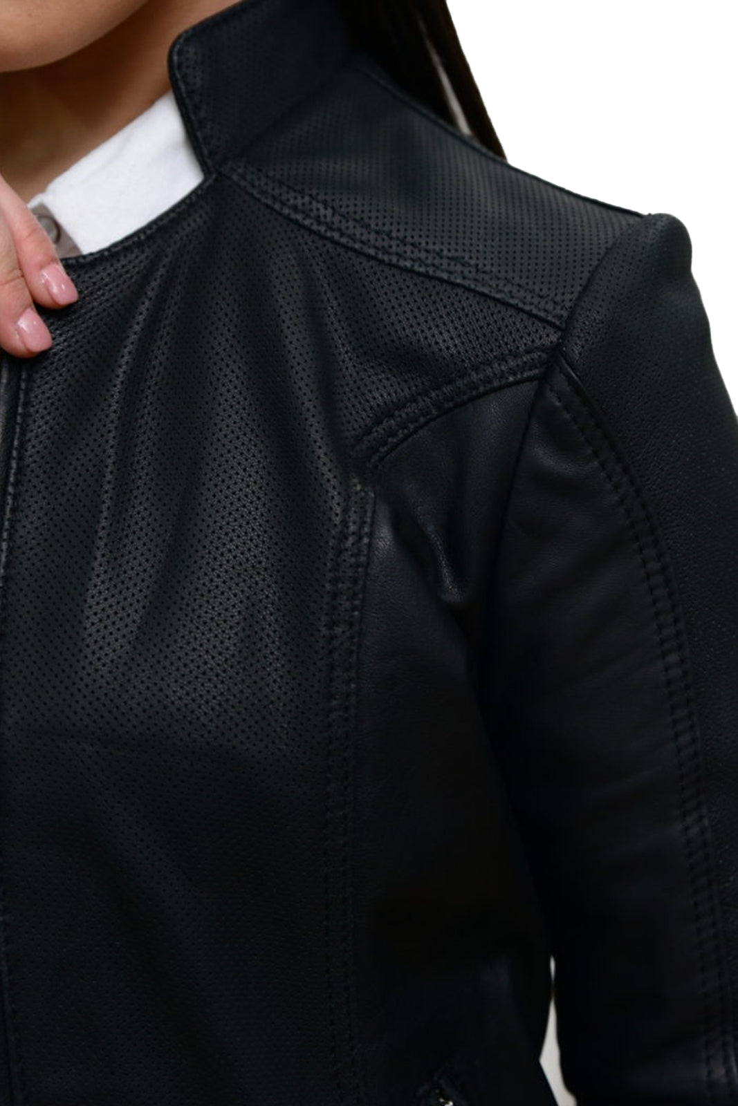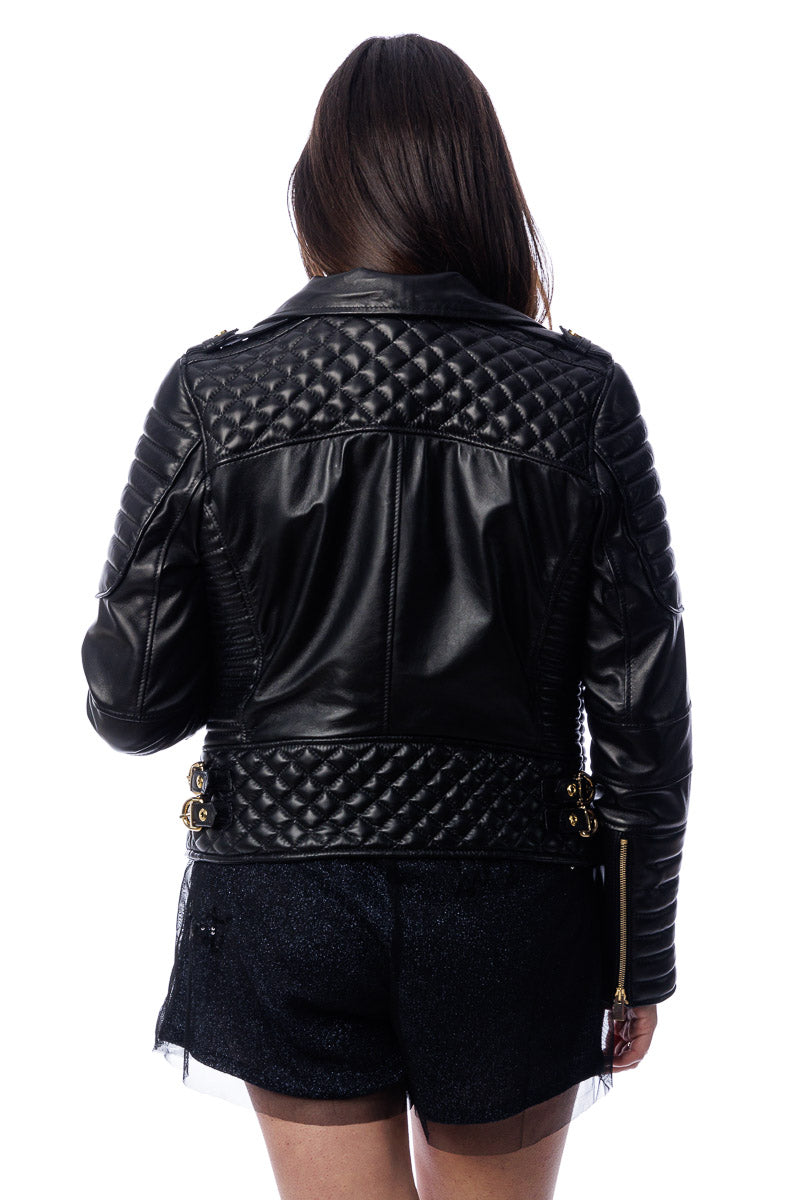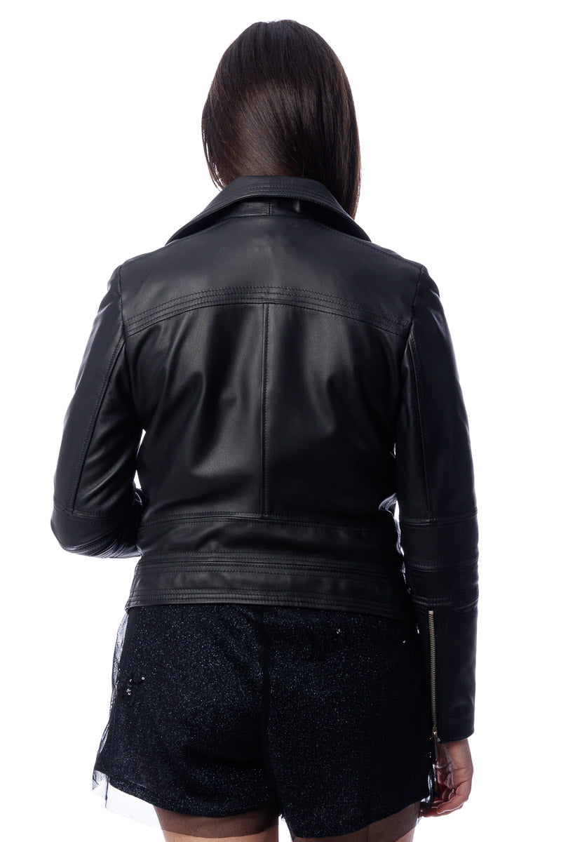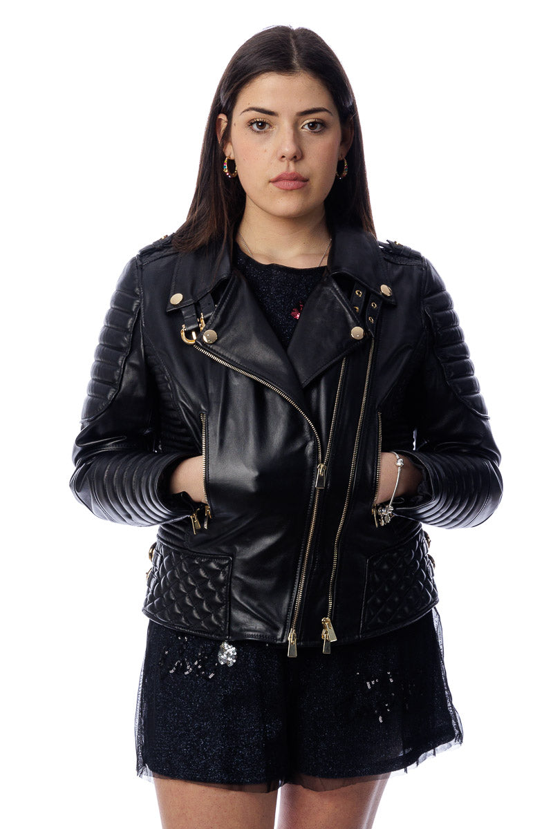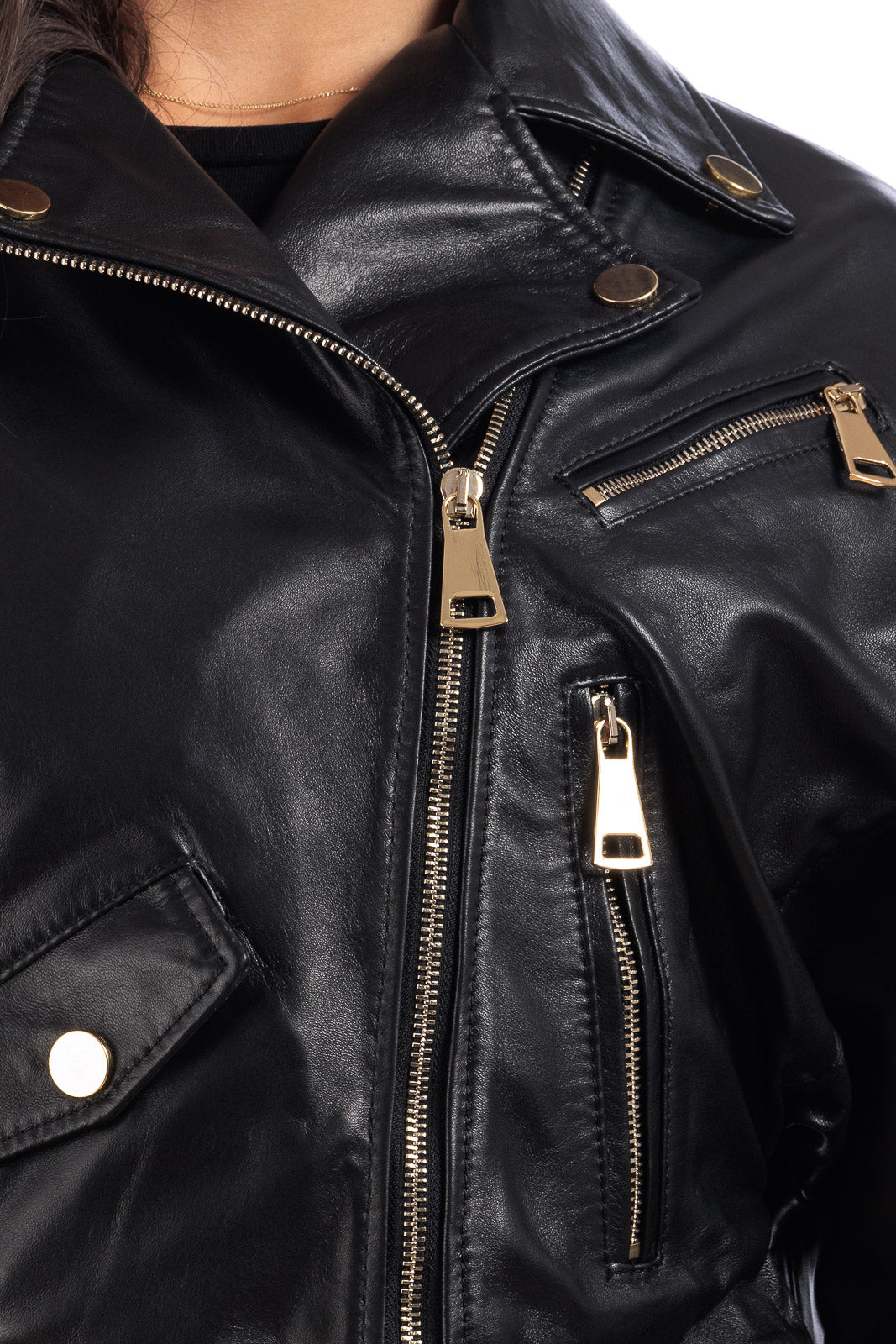 Giacca in pelle donna con zip chiodo 3000 punti a mano