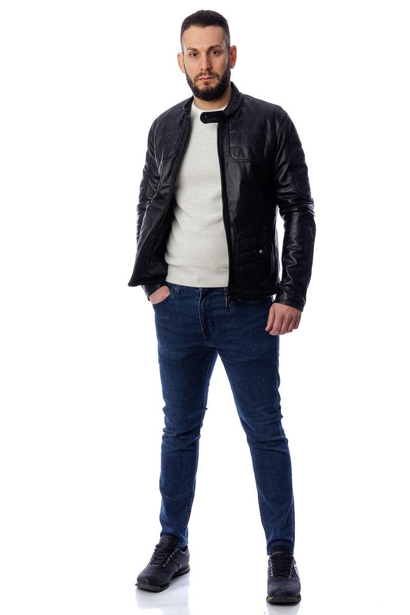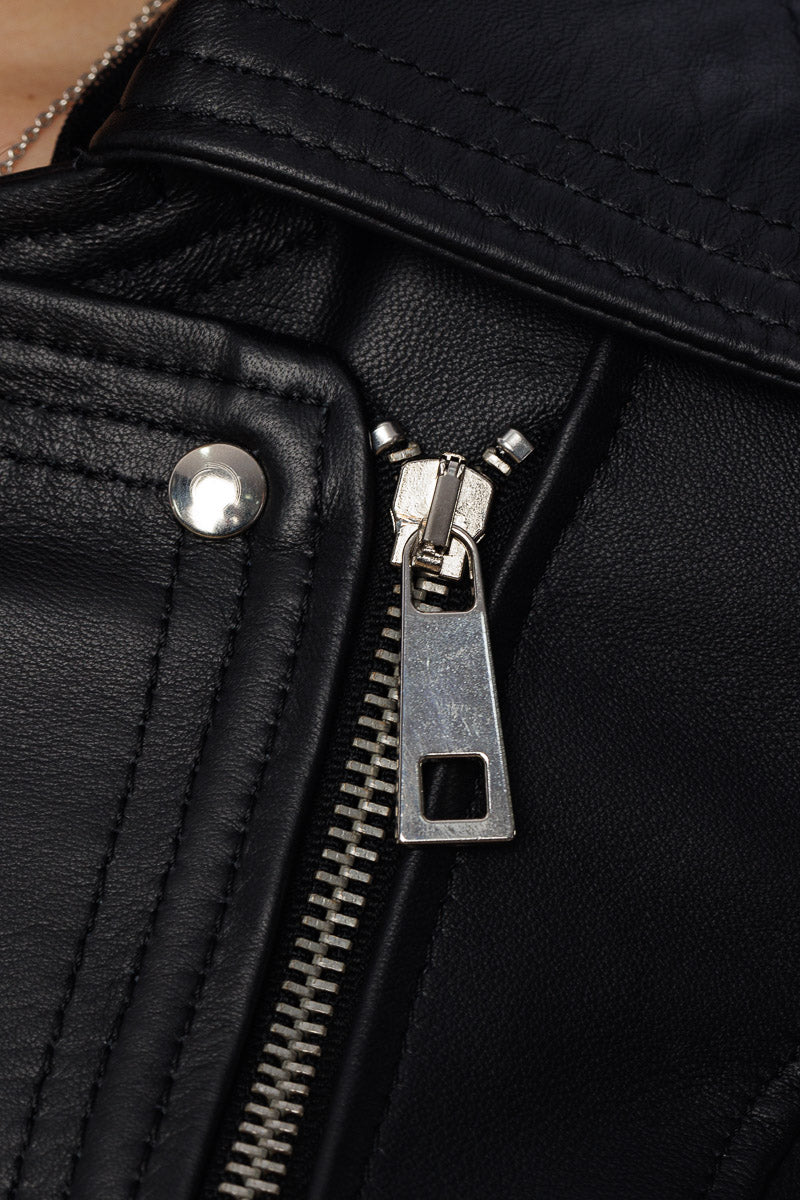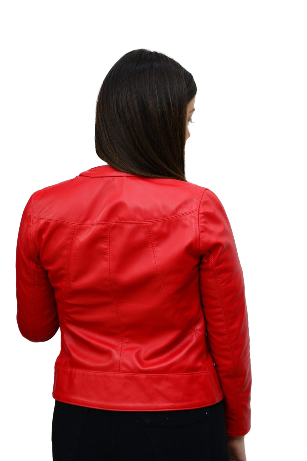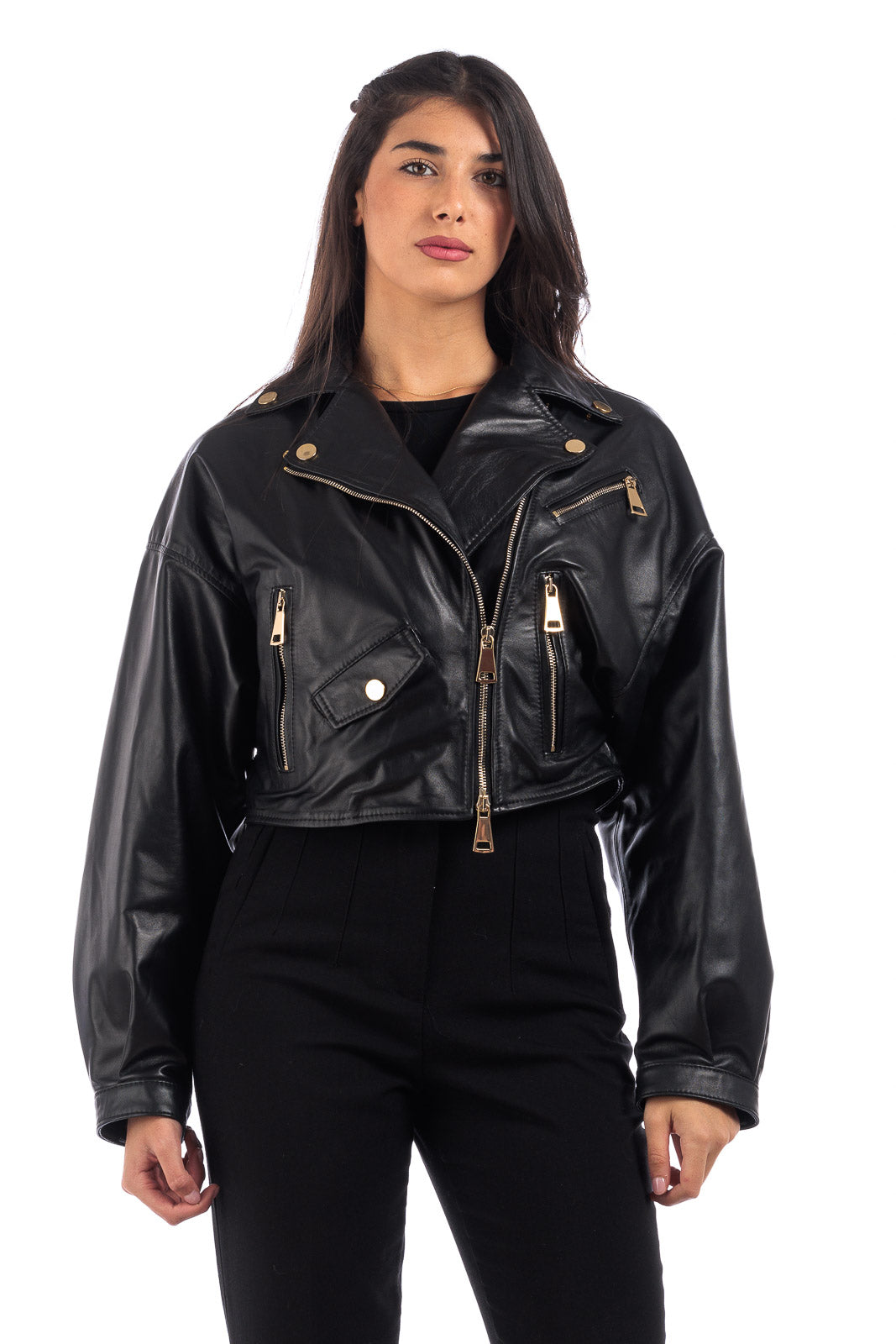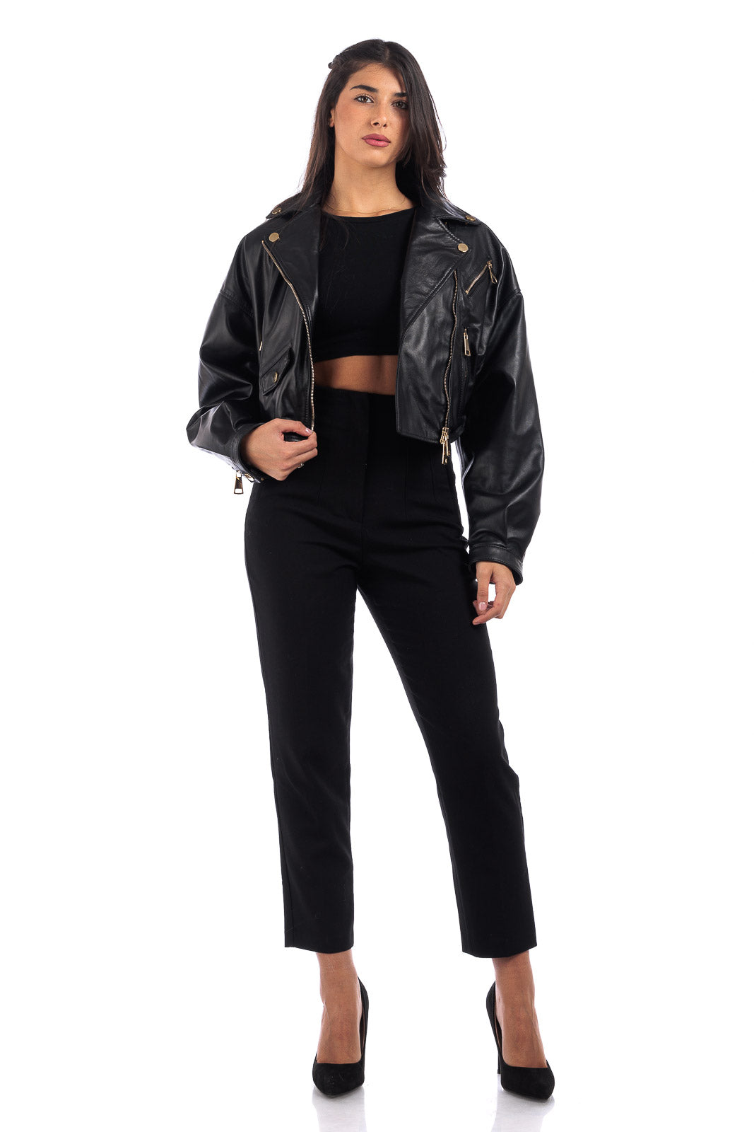 Giacca in pelle donna con zip chiodo 3000 punti a mano