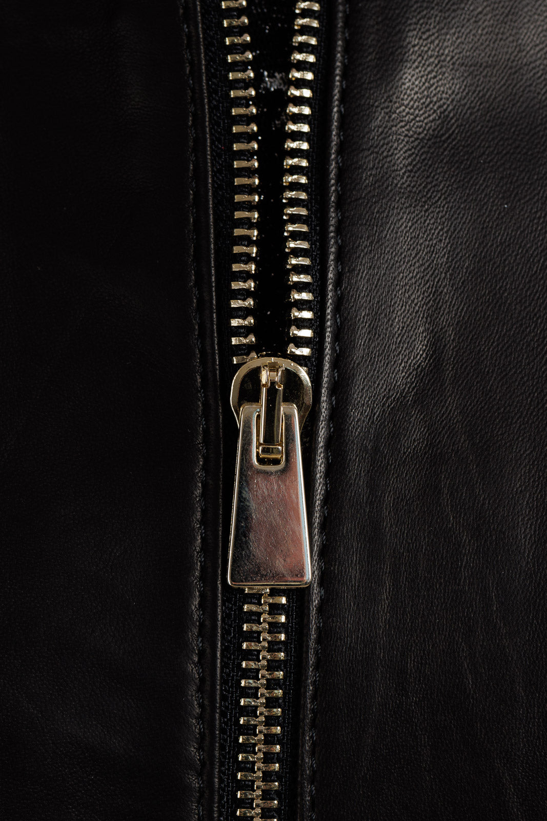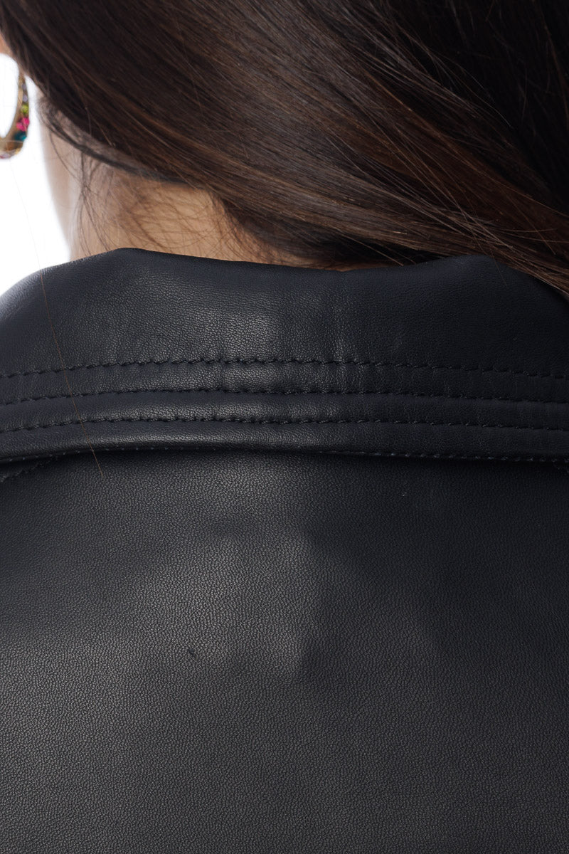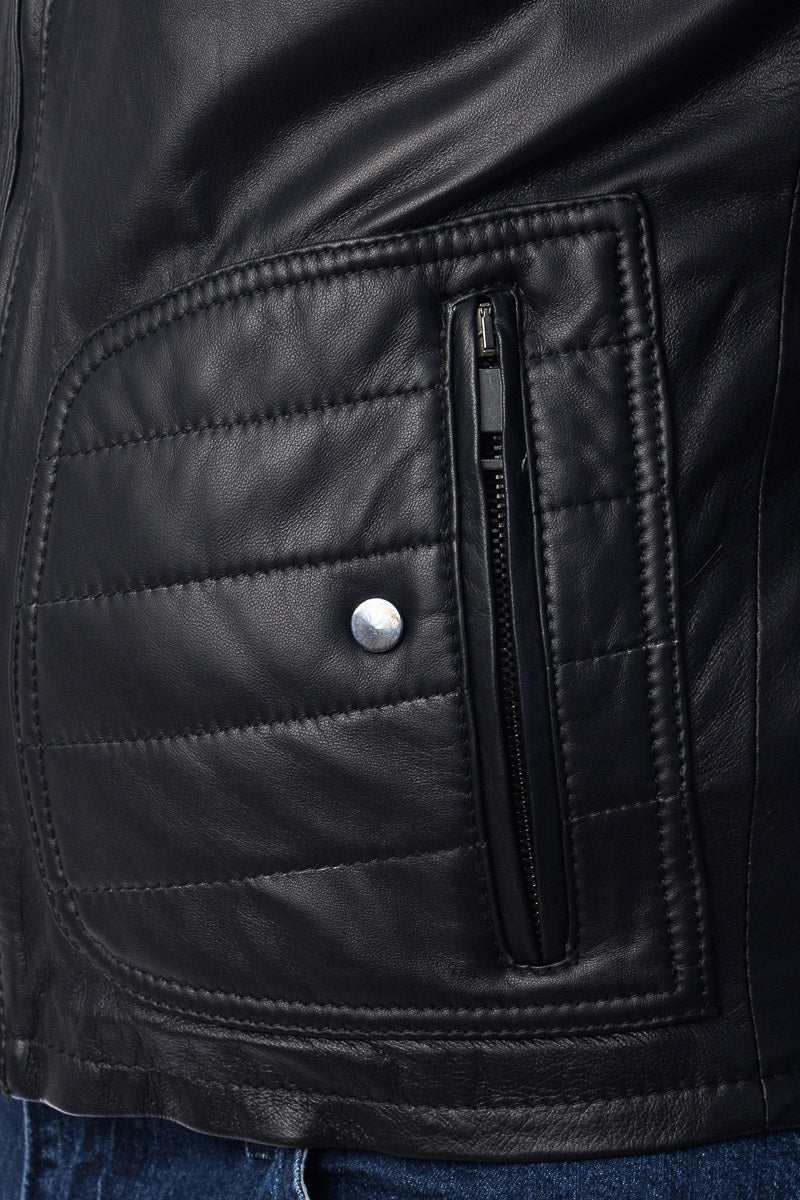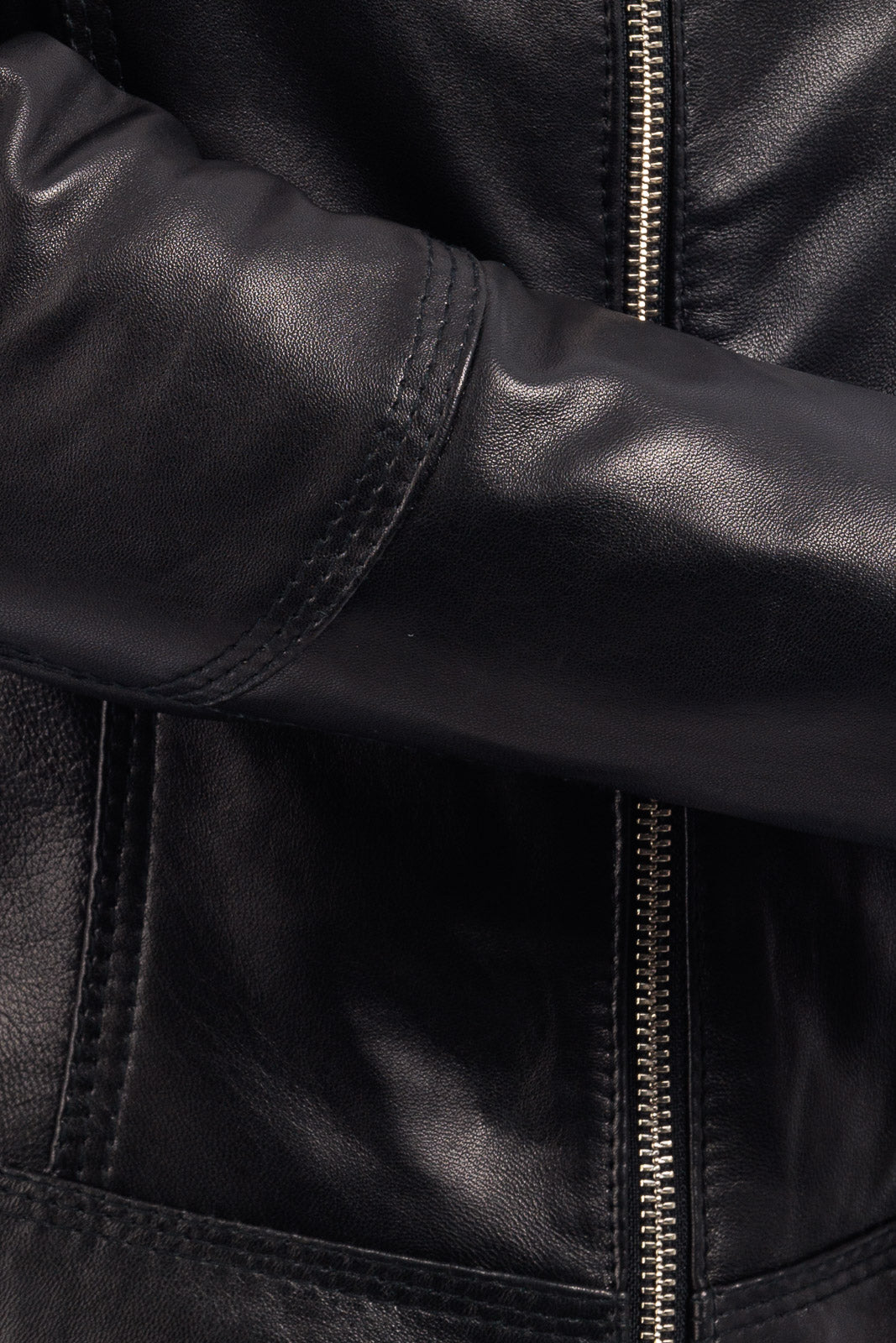 Giacca in pelle nera con collo e gilet staccabile pelo nero JEANS