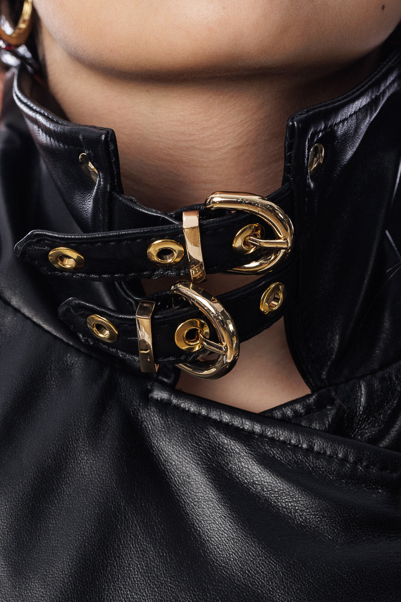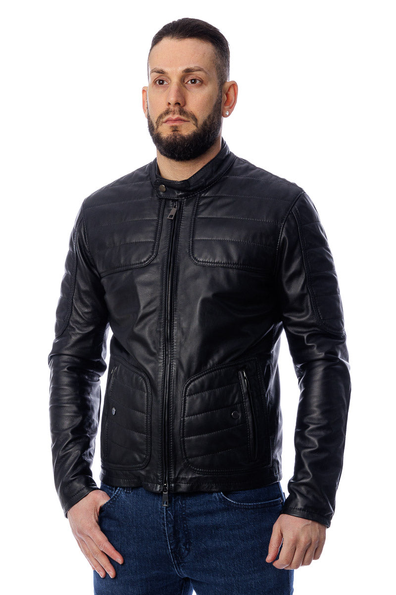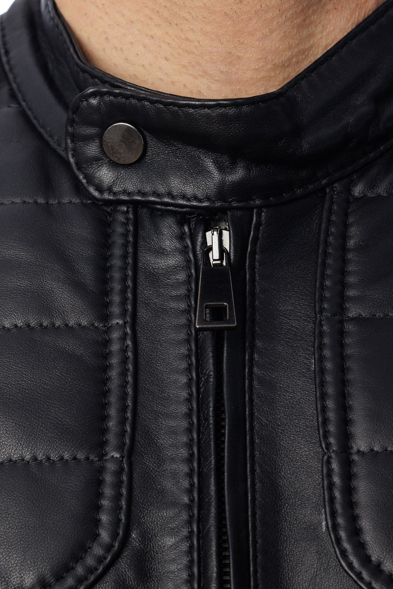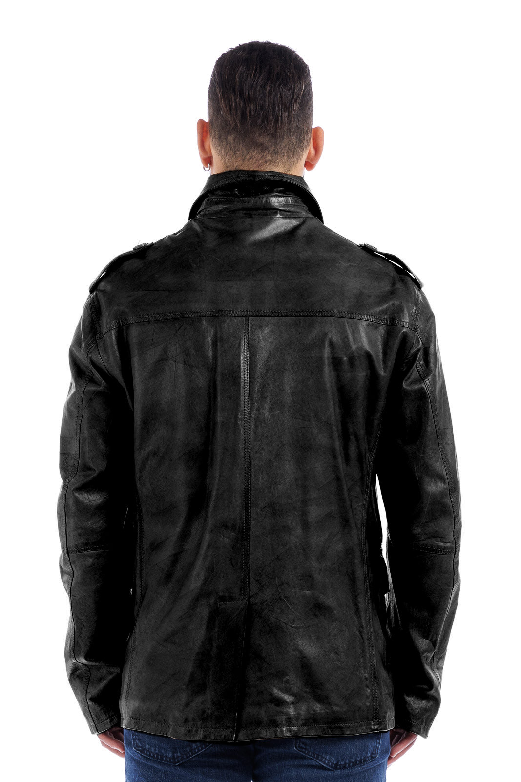 Giacca in pelle nera con collo e gilet staccabile pelo nero JEANS