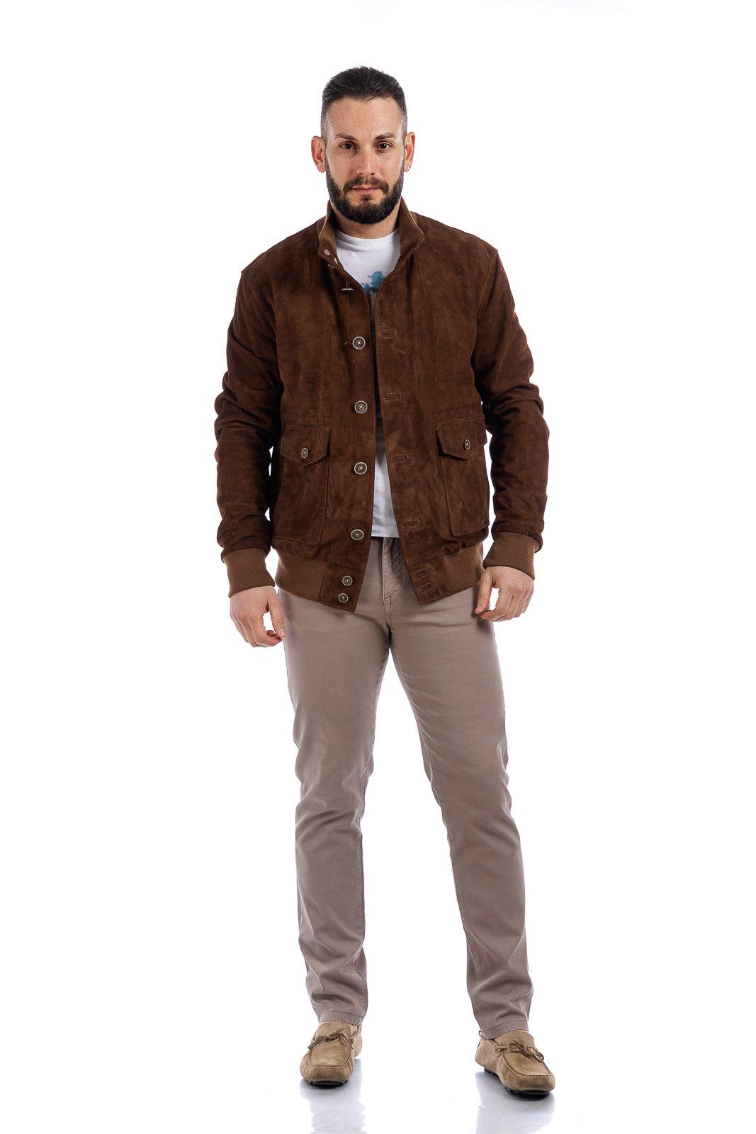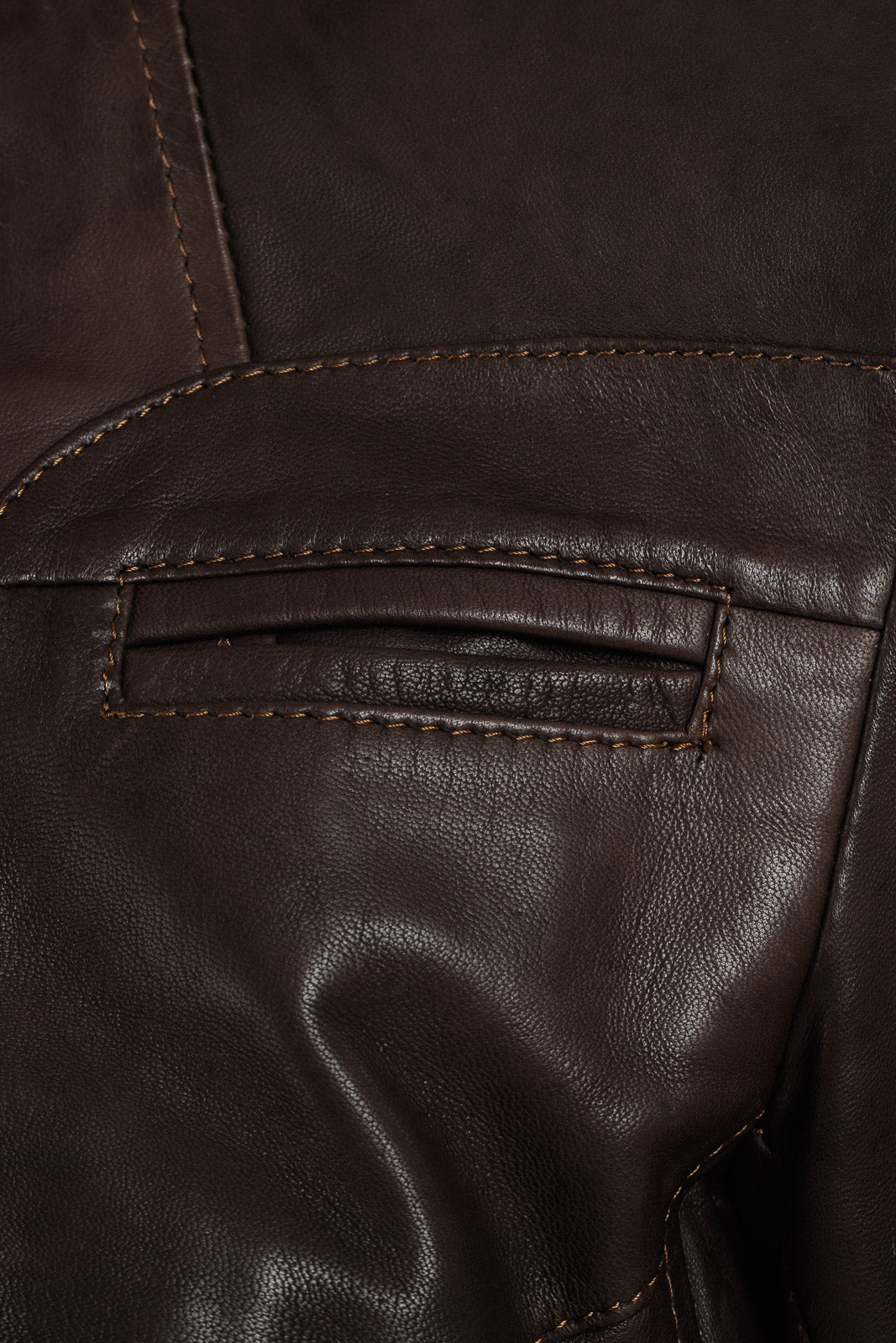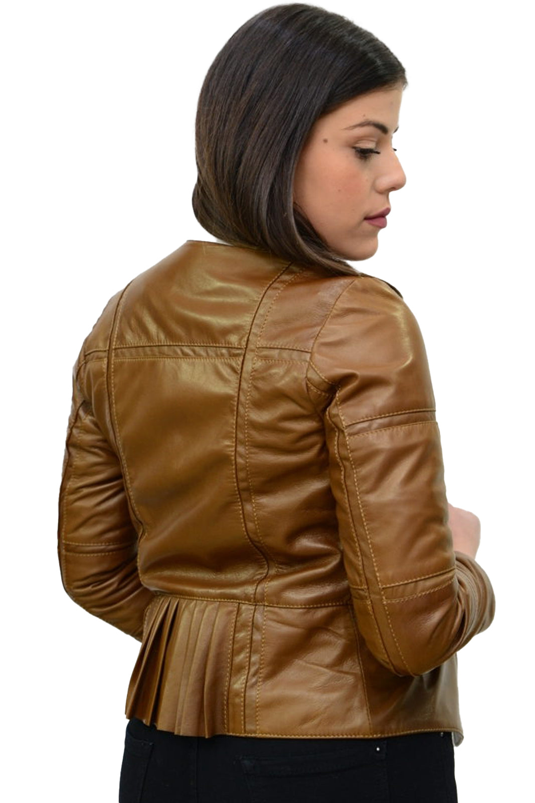 Giacca in pelle donna con zip chiodo 3000 punti a mano marrone