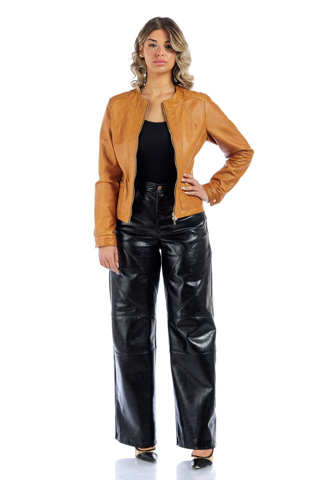Giacca in pelle donna con zip GABY staccabile cuoio