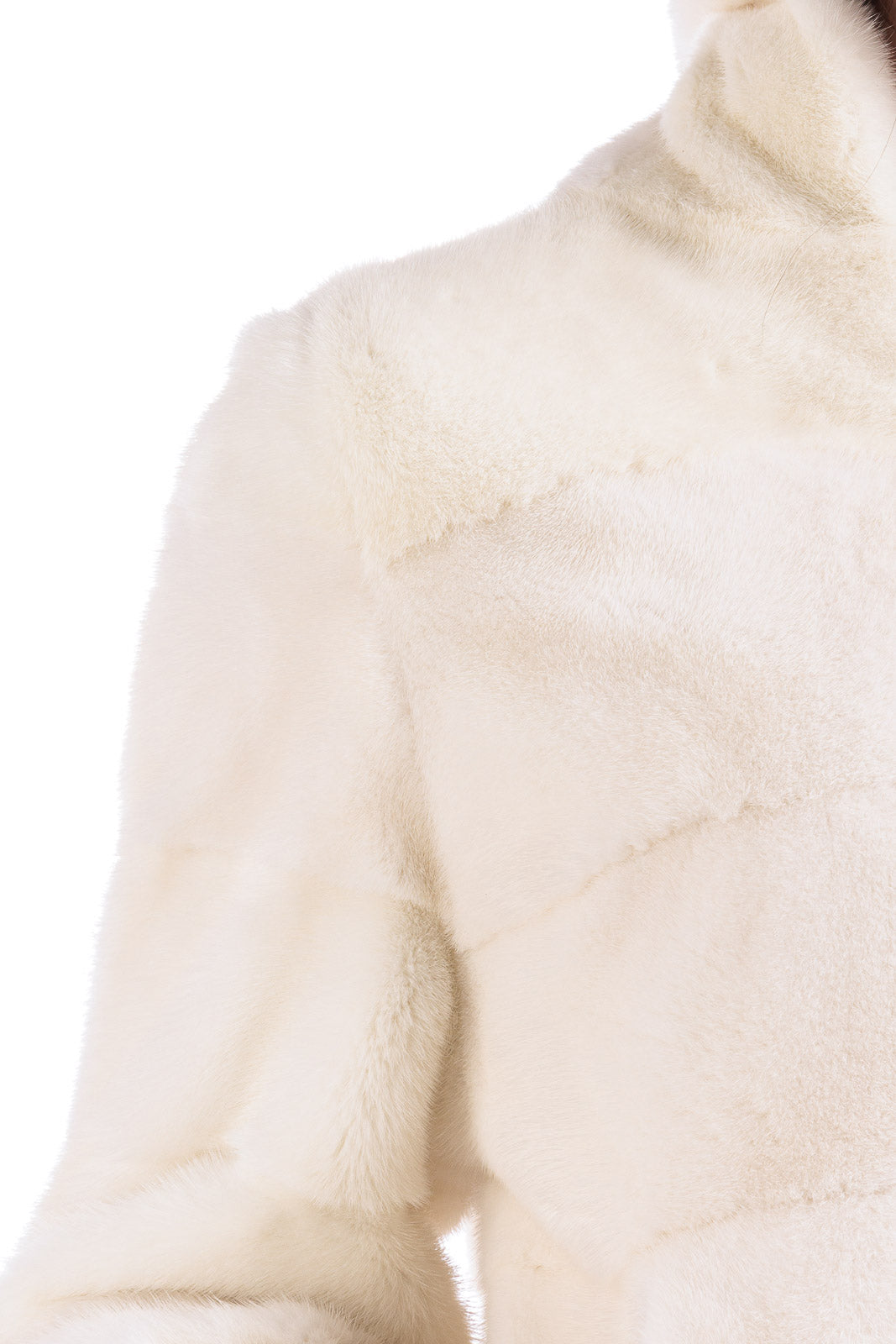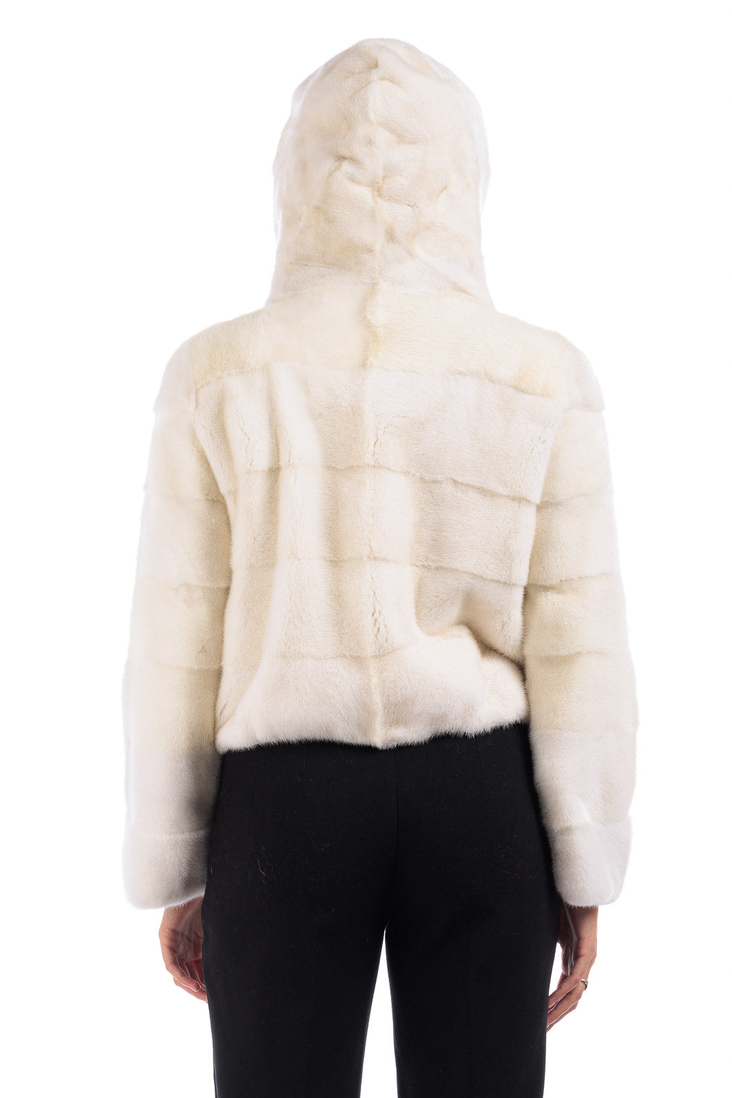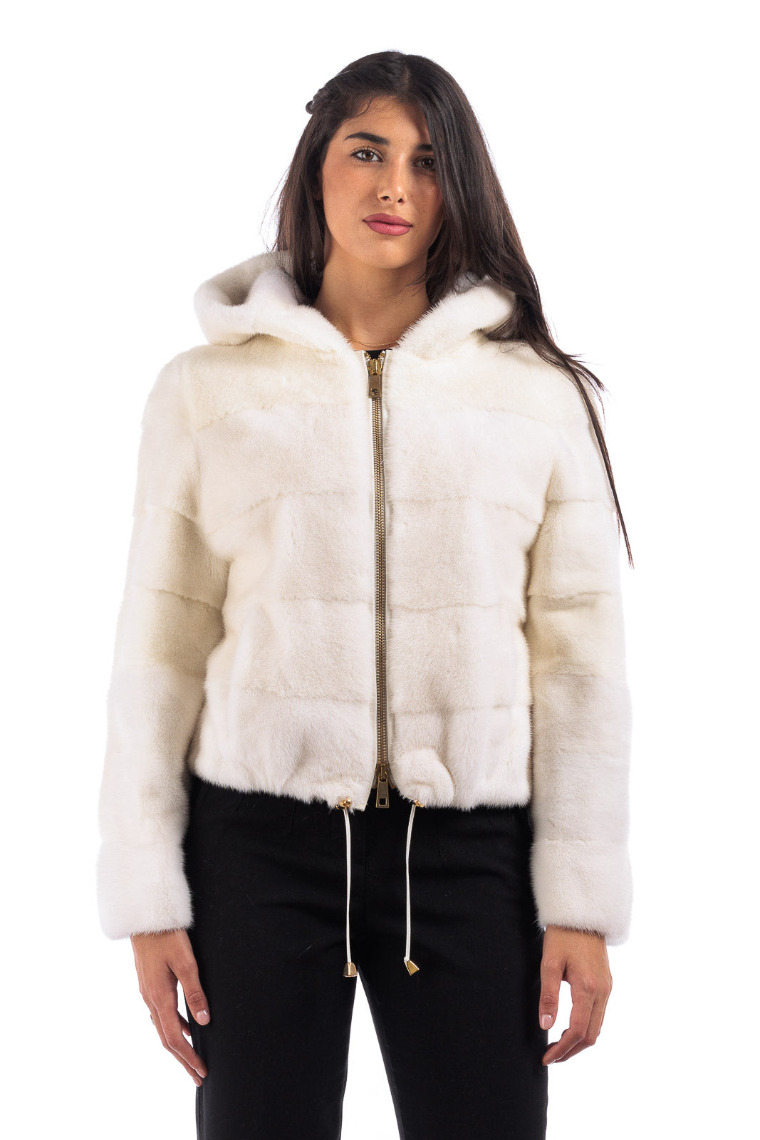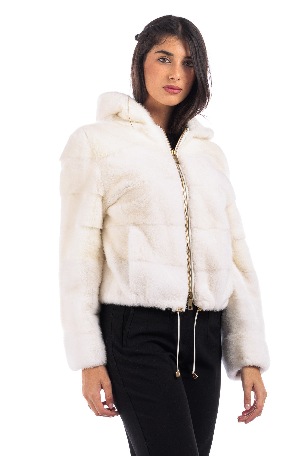 Giacca in pelliccia di Visone bianca corta con cappuccio e zip