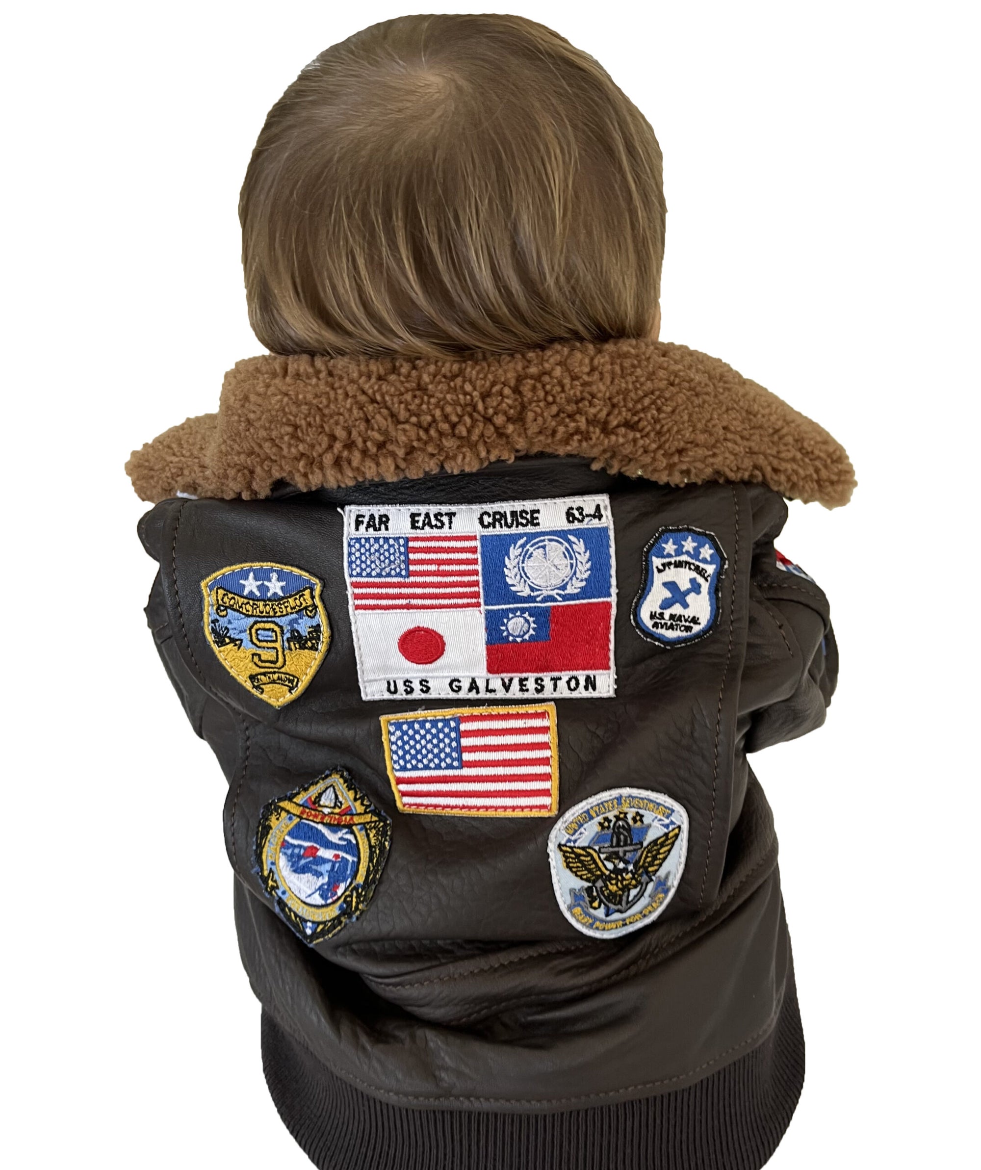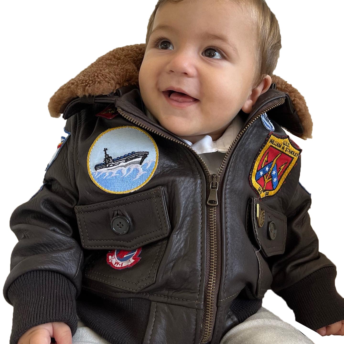 Giacca in vera pelle con zip con toppe e collo in montone TOP GUN bambino