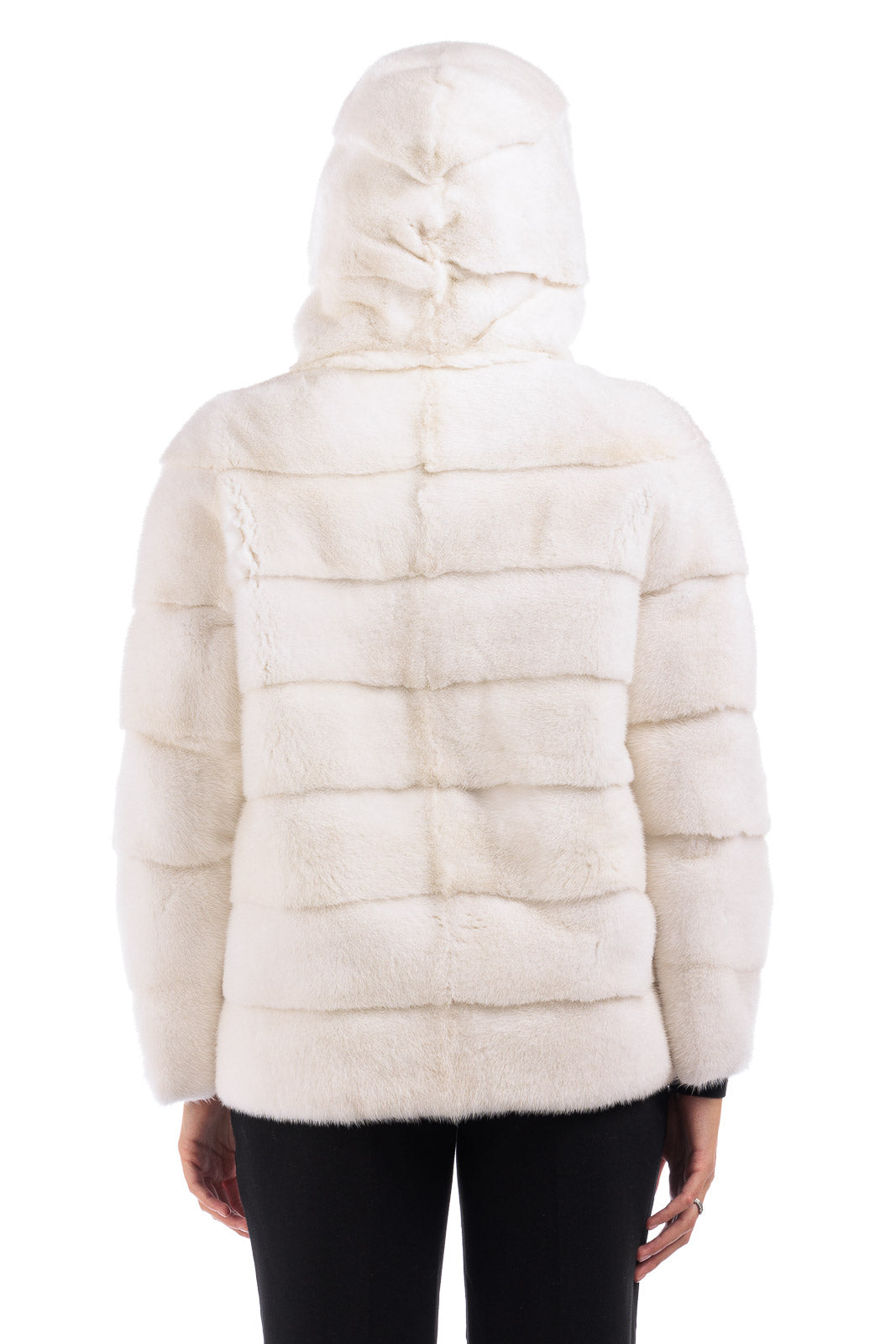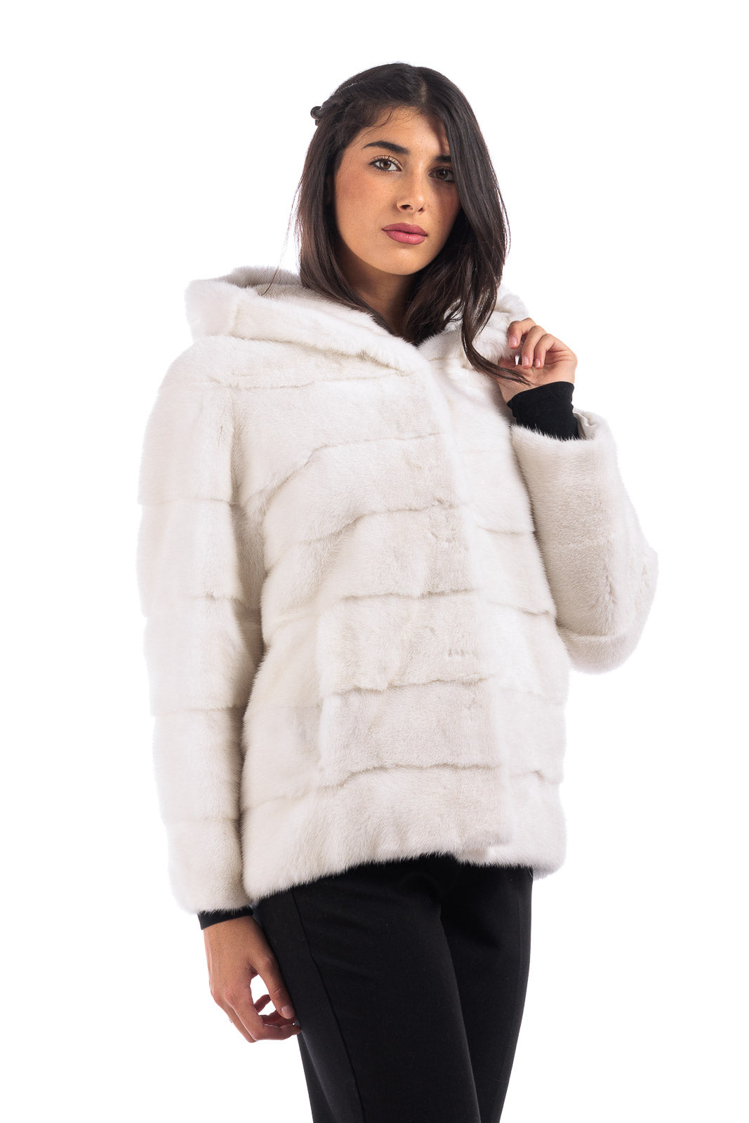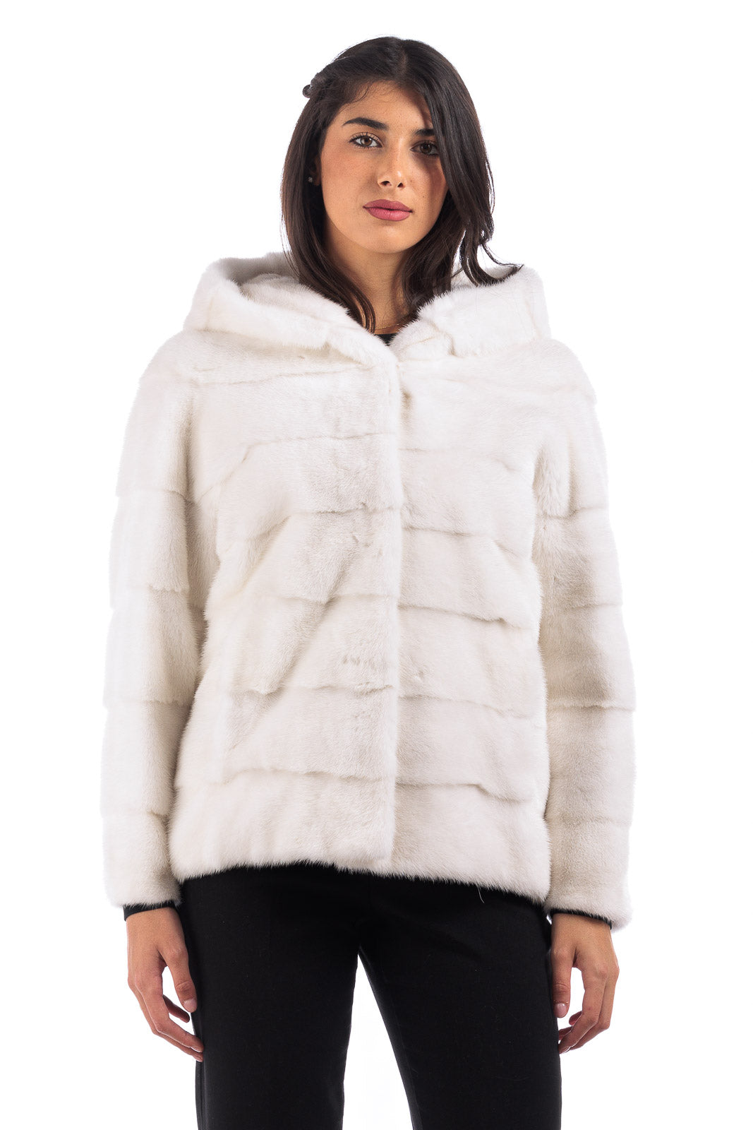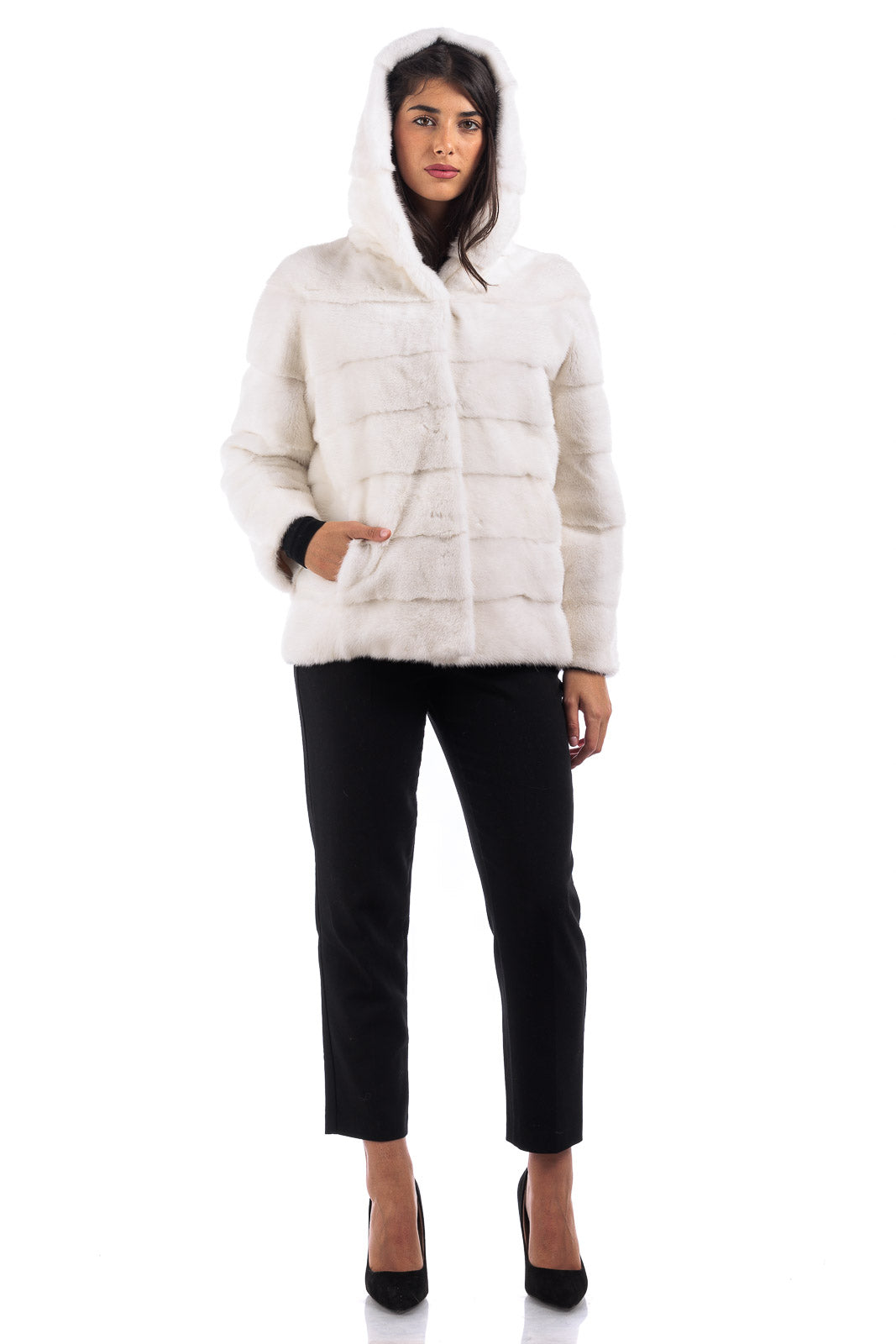 Giacca in pelliccia donna di Visone con Cappuccio bianca