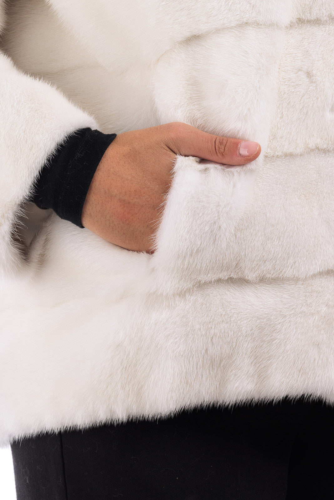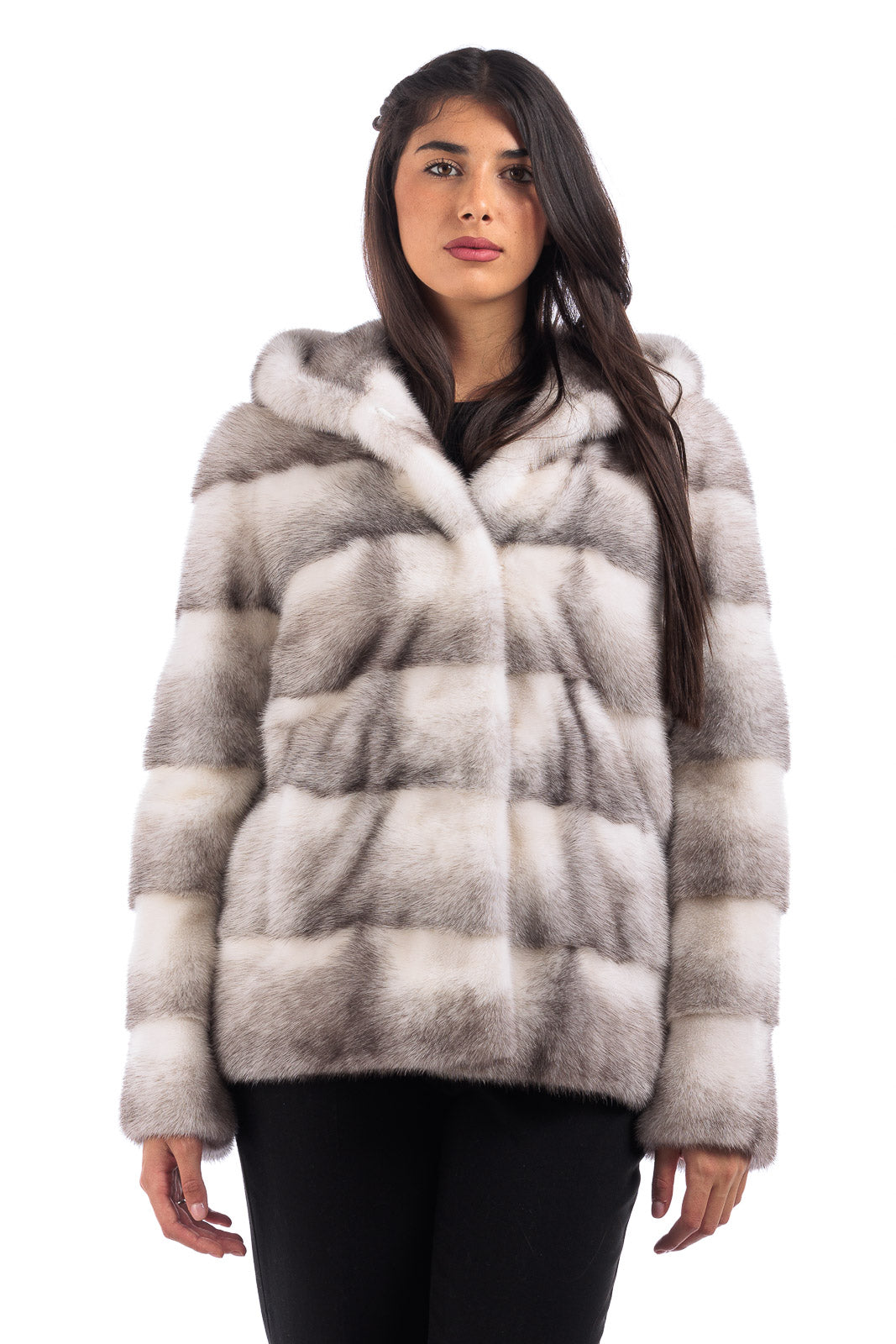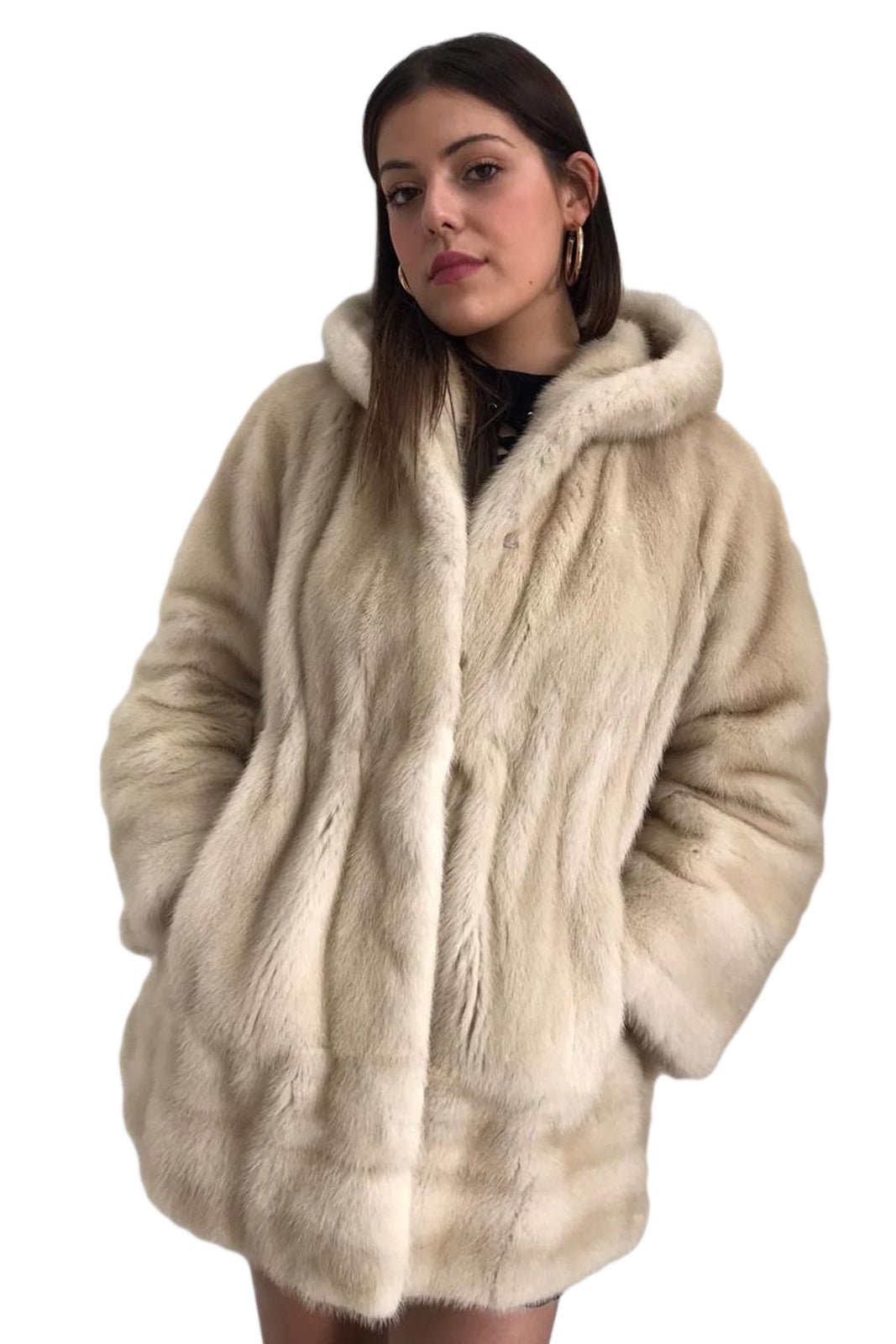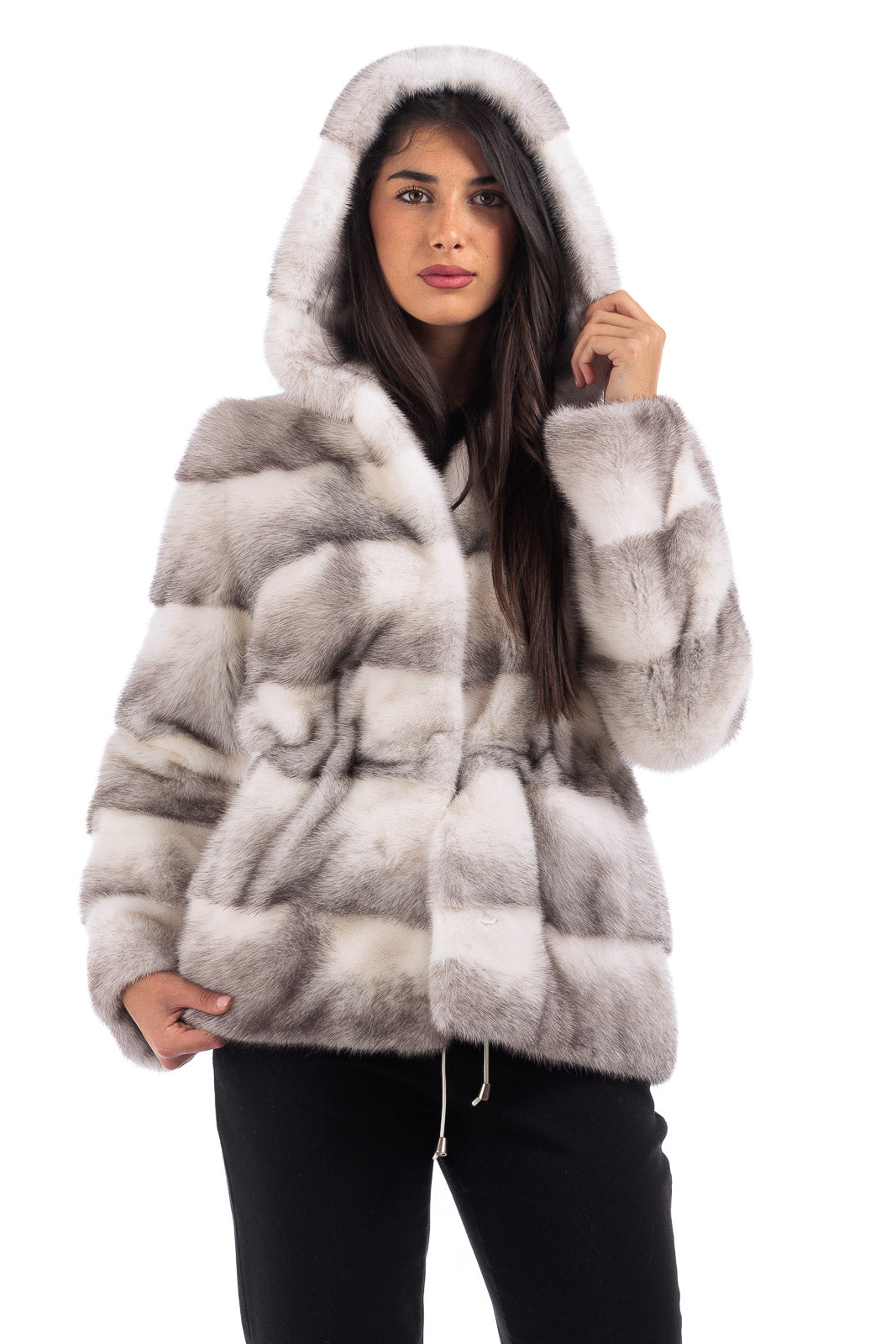 Giacca in pelliccia donna di Visone con Cappuccio bianca