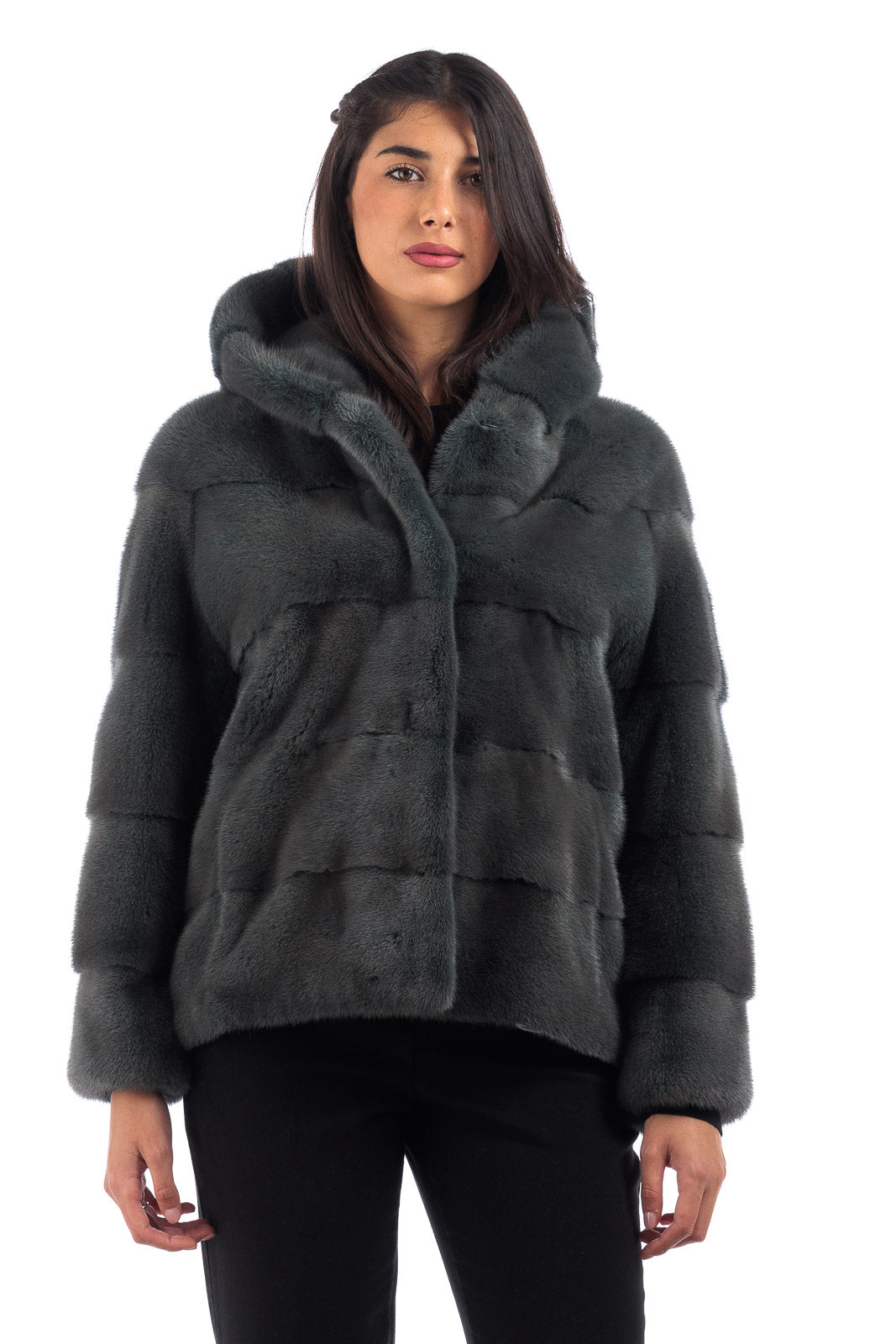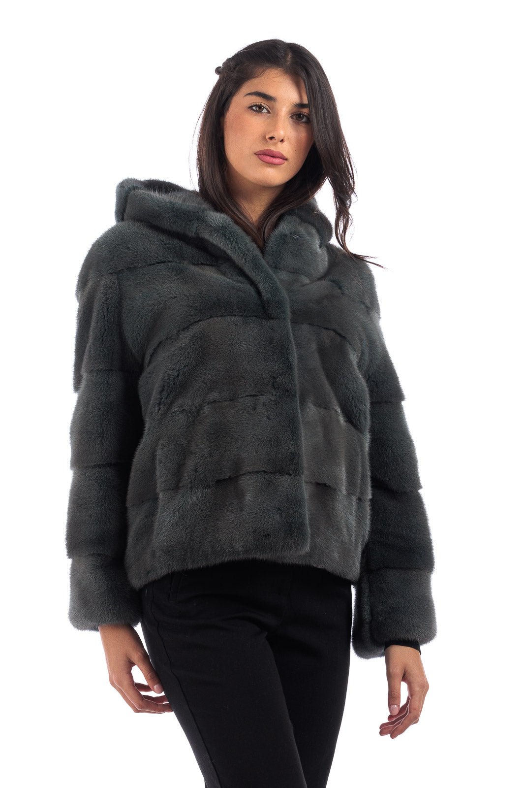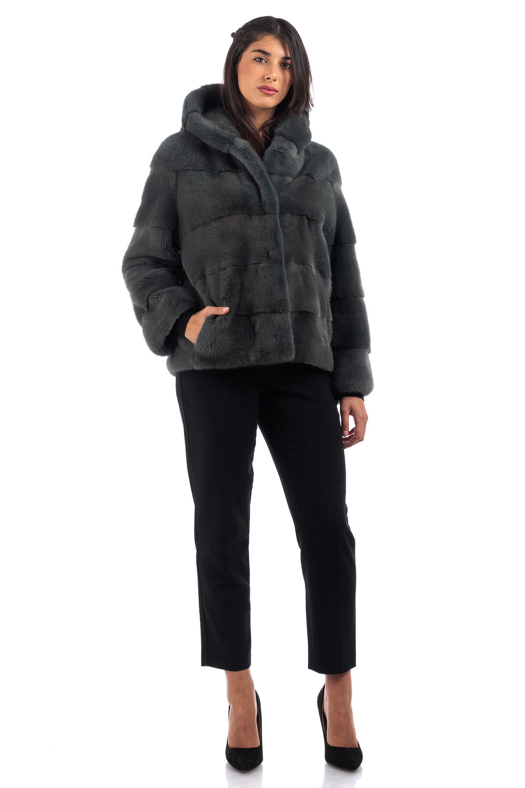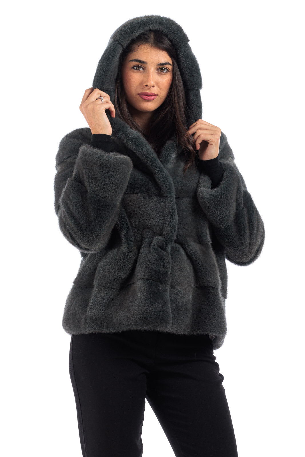 Giacca in pelliccia di Visone con cappuccio Green