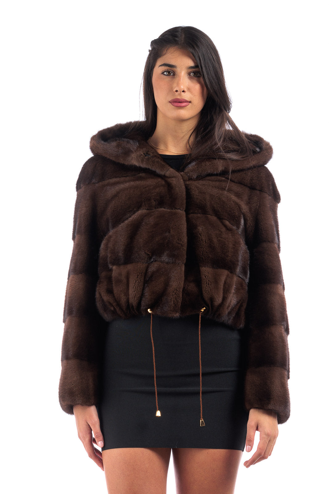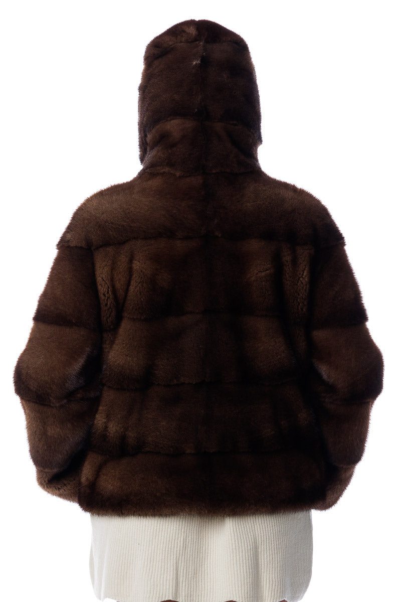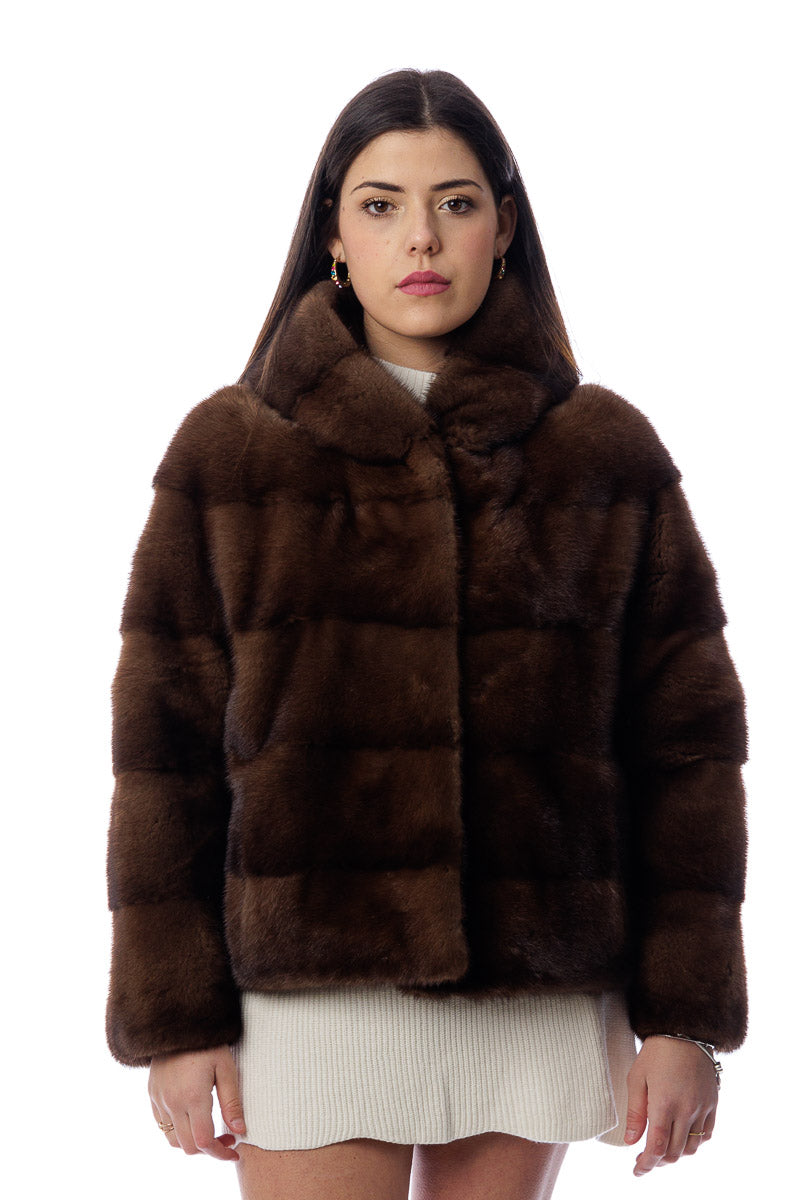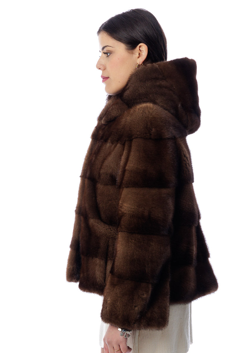 Giacca in pelliccia di Visone demy buff corta con e cappuccio