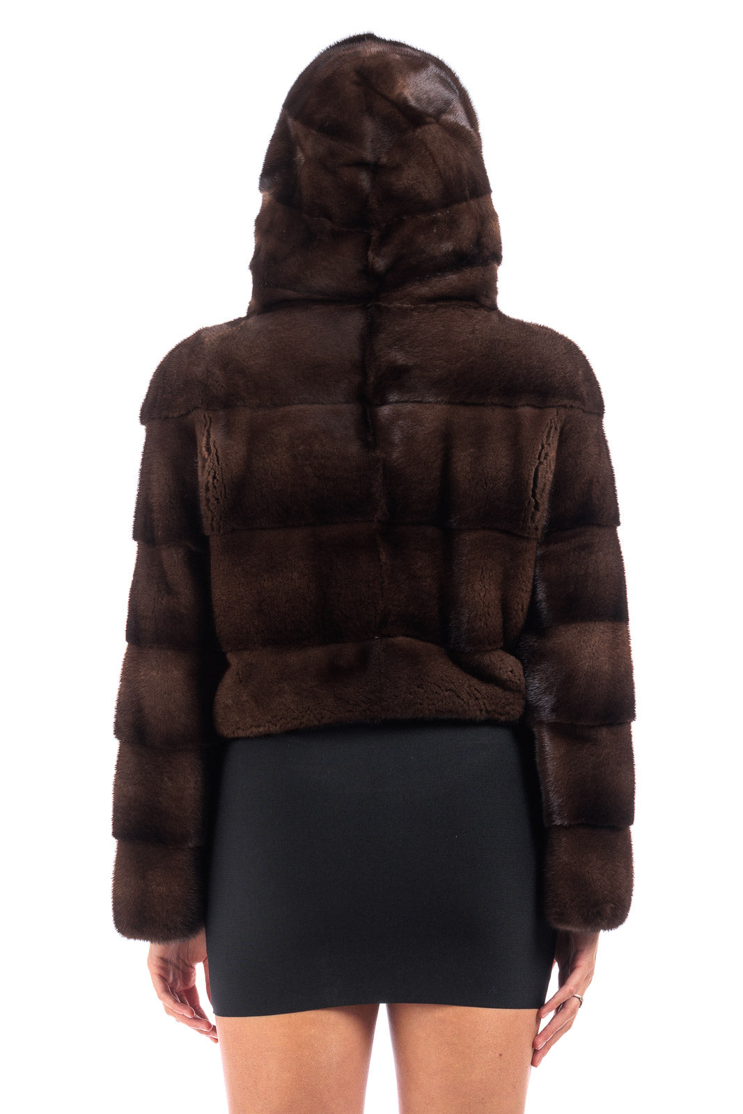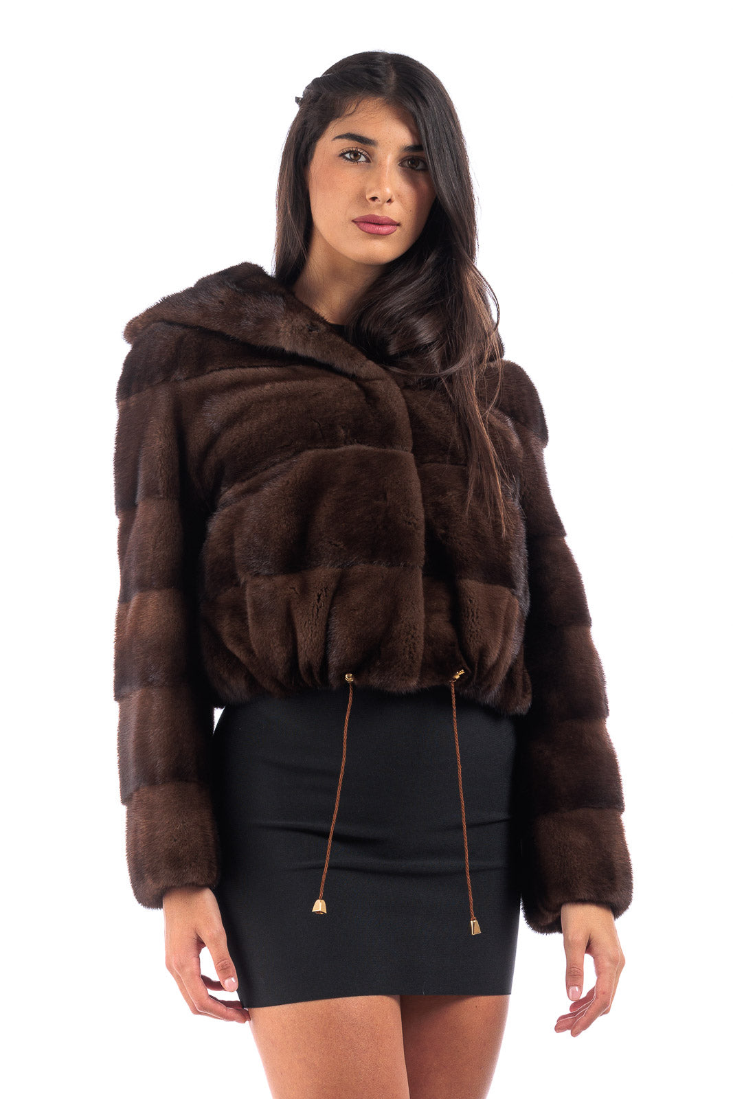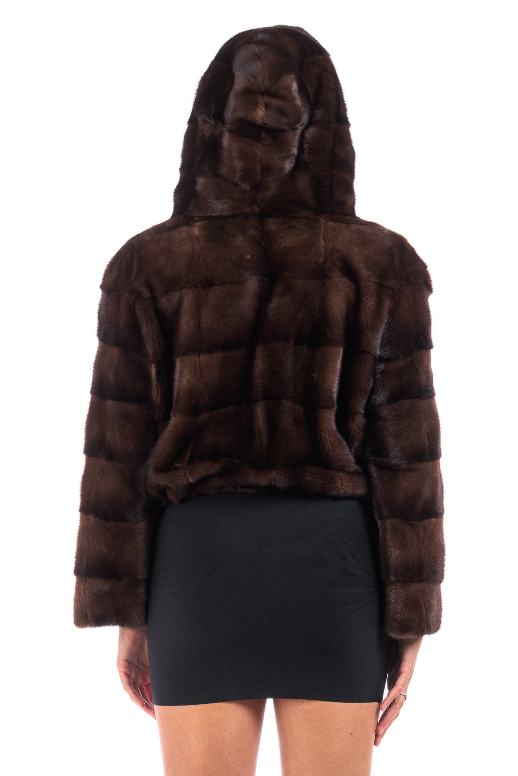 Giacca in pelliccia di Visone demy buff corta con e cappuccio