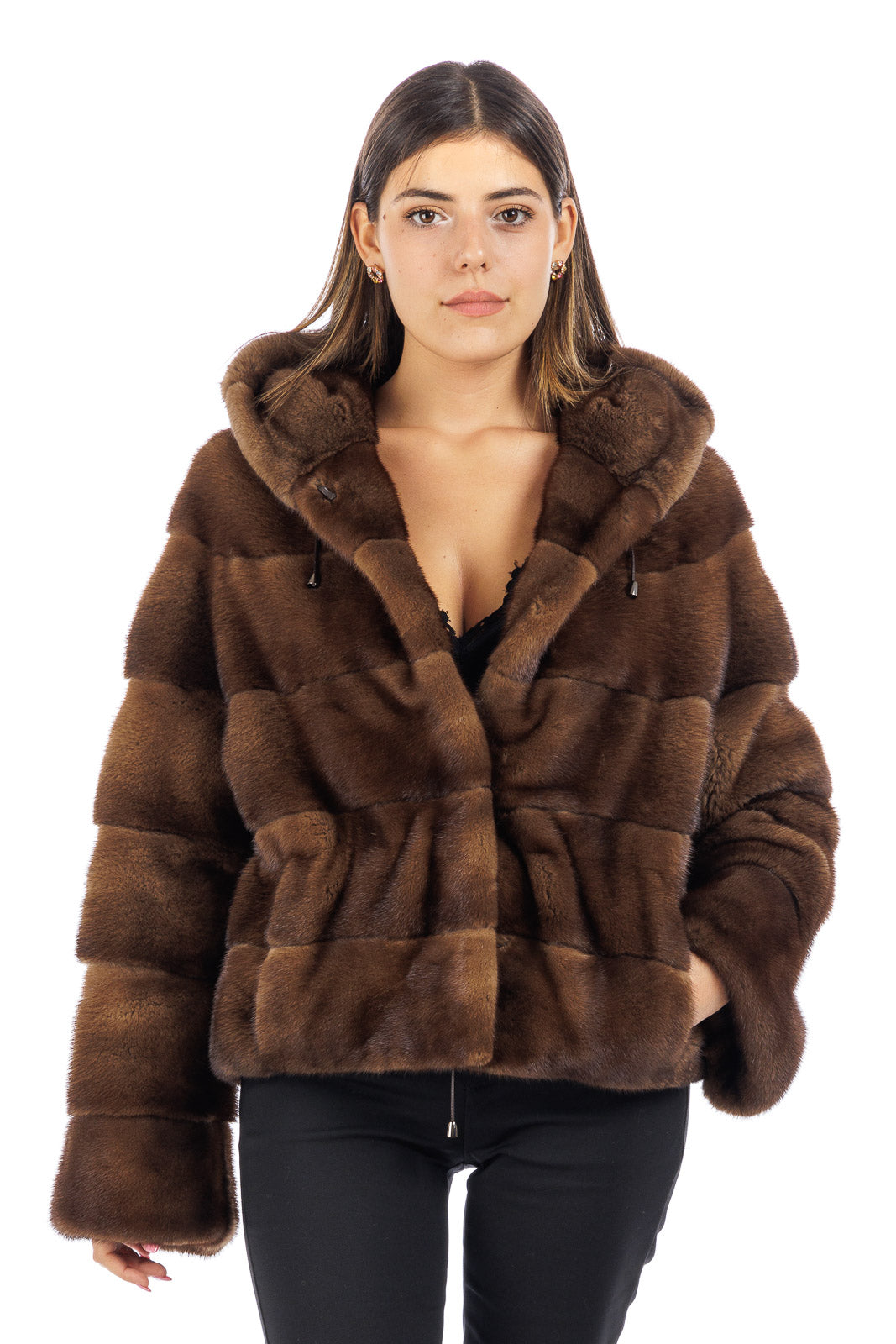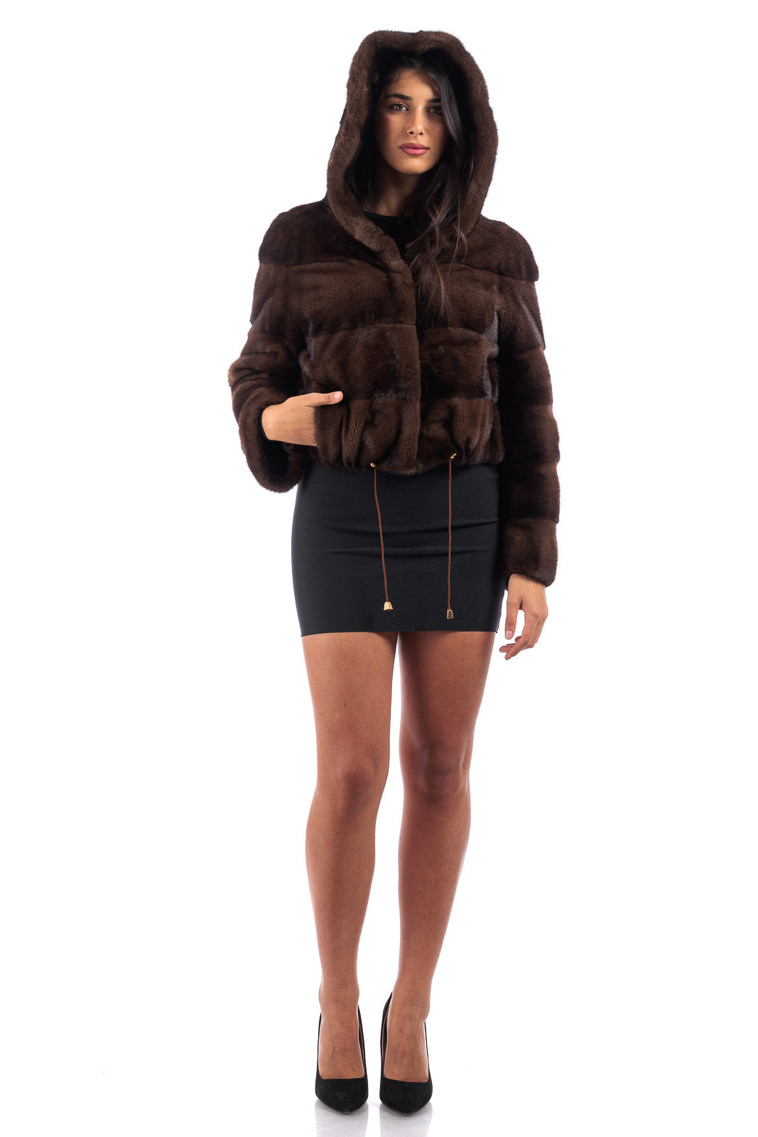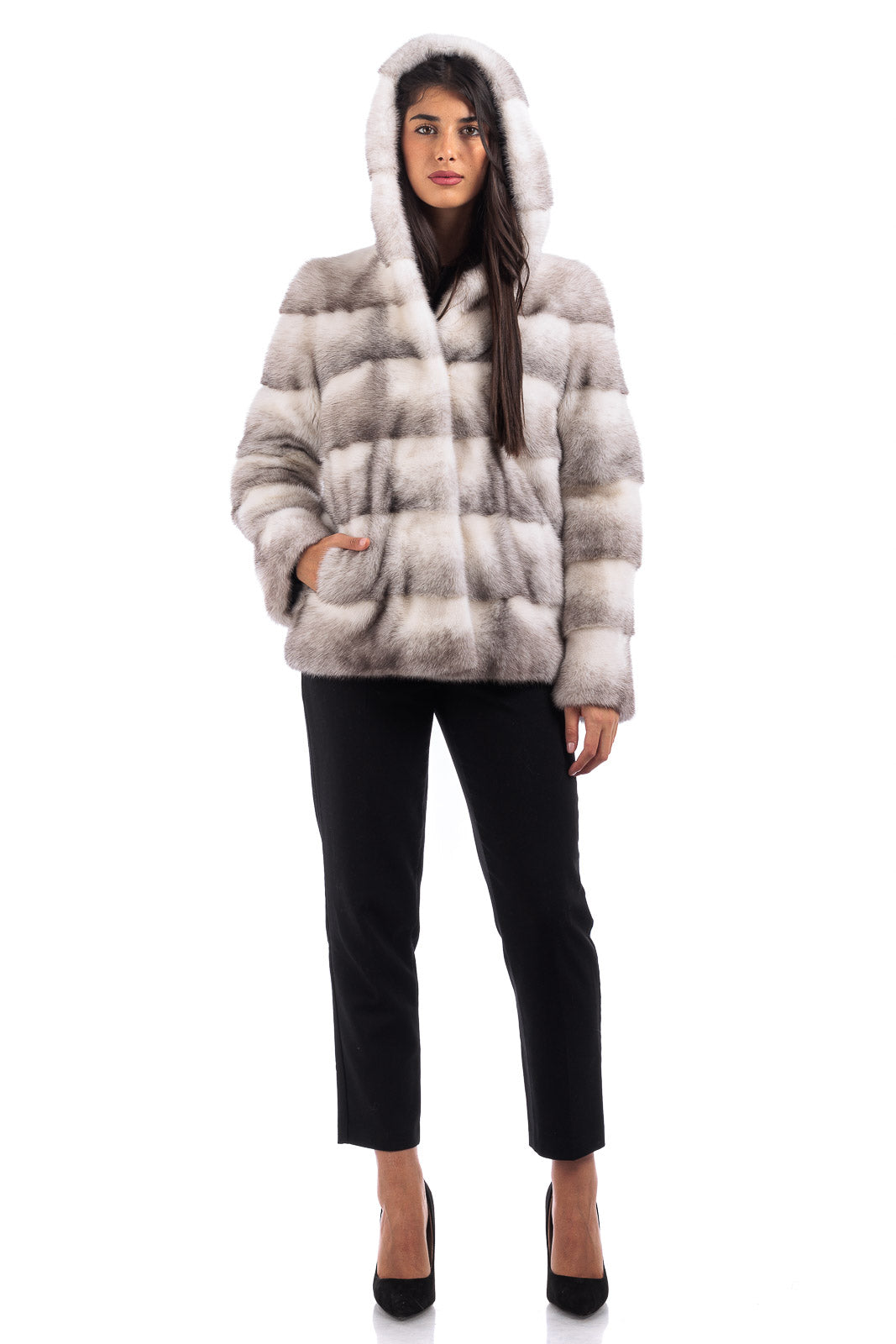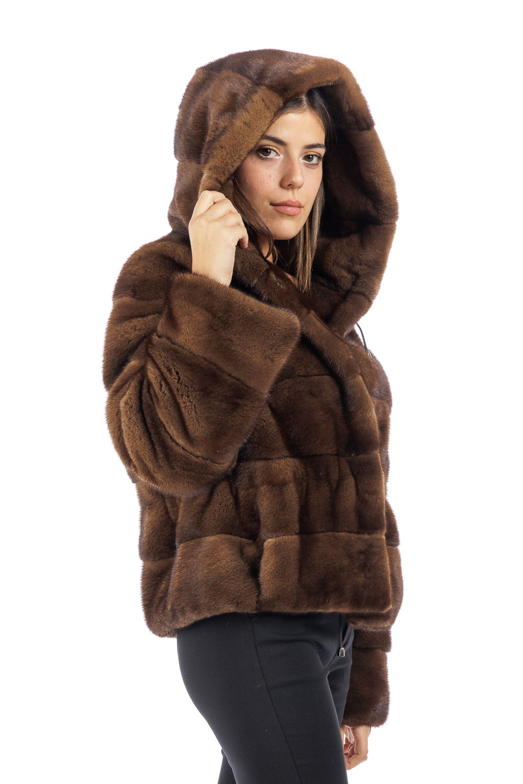 Giacca in pelliccia di Visone con Cappuccio donna
