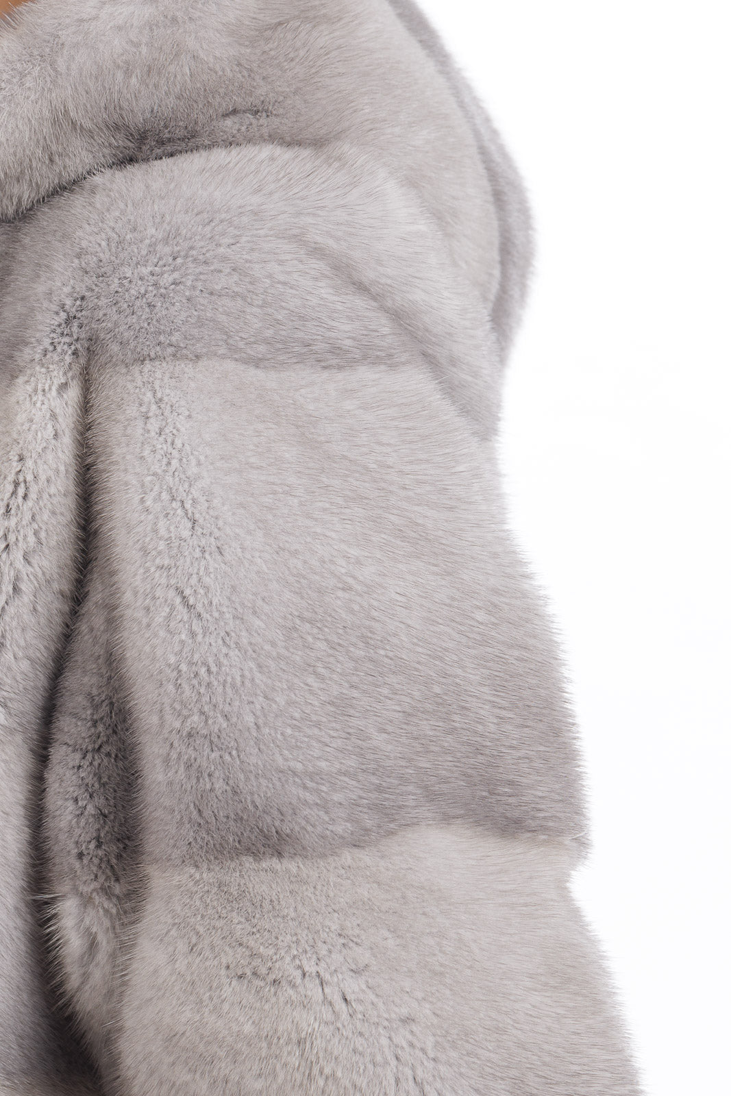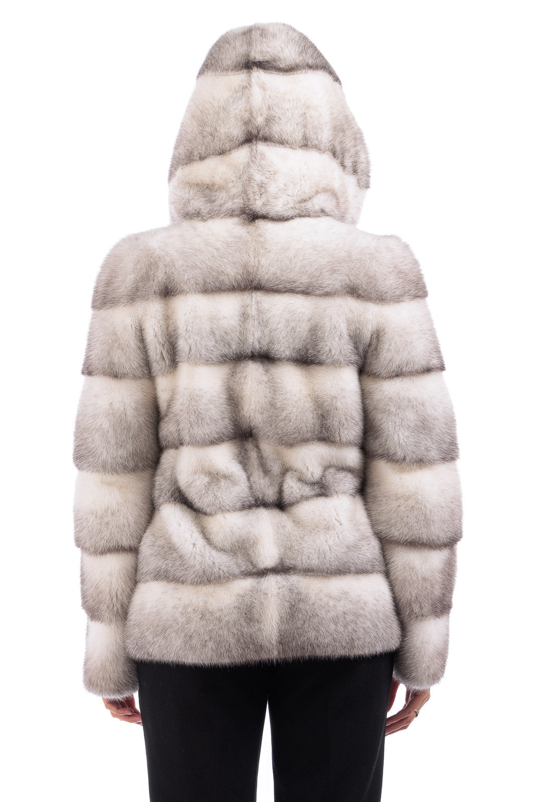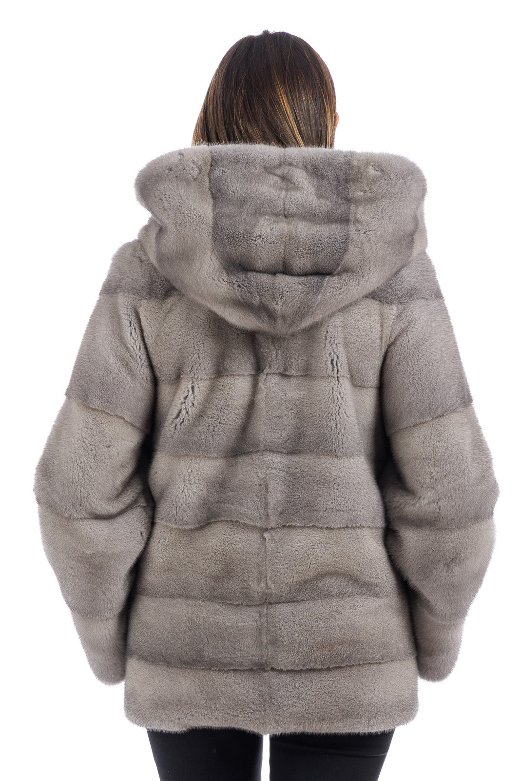 Giacca in pelliccia di Visone sapphire grigio perla con cappuccio