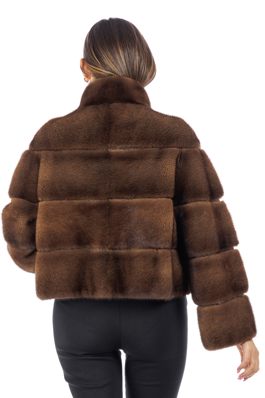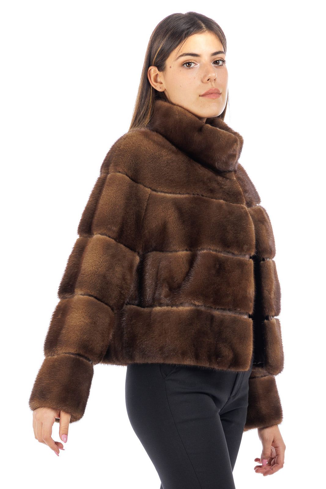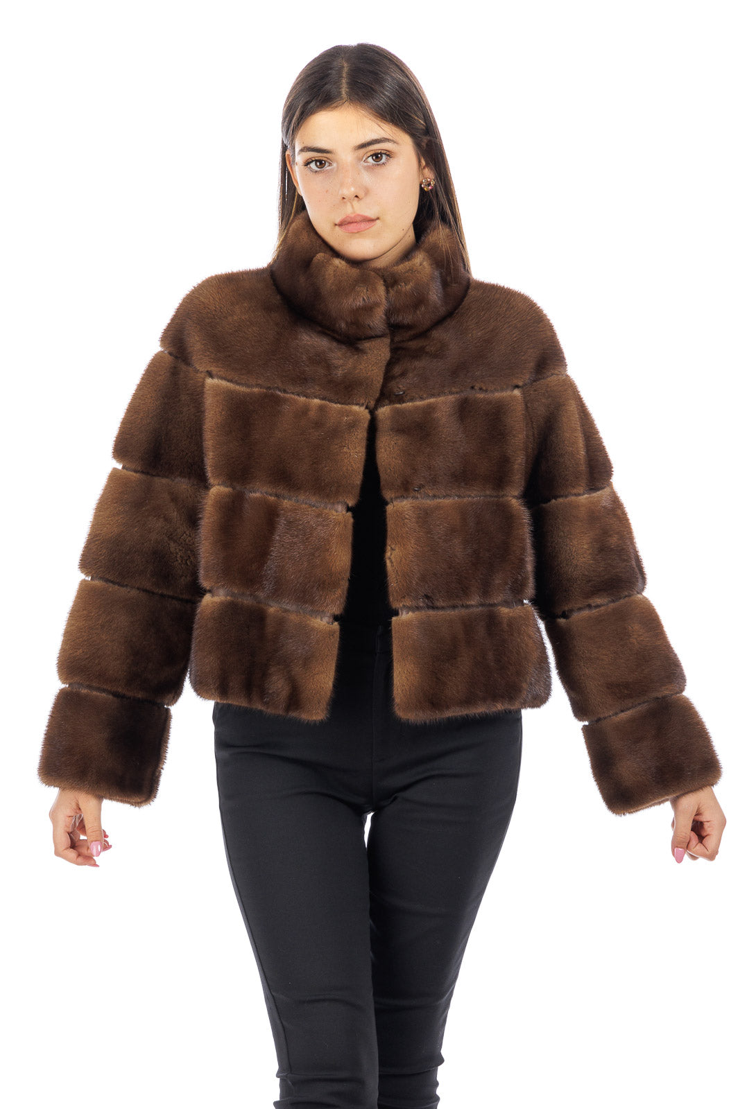Giacca in pelliccia donna Visone demy buff con collo coreano