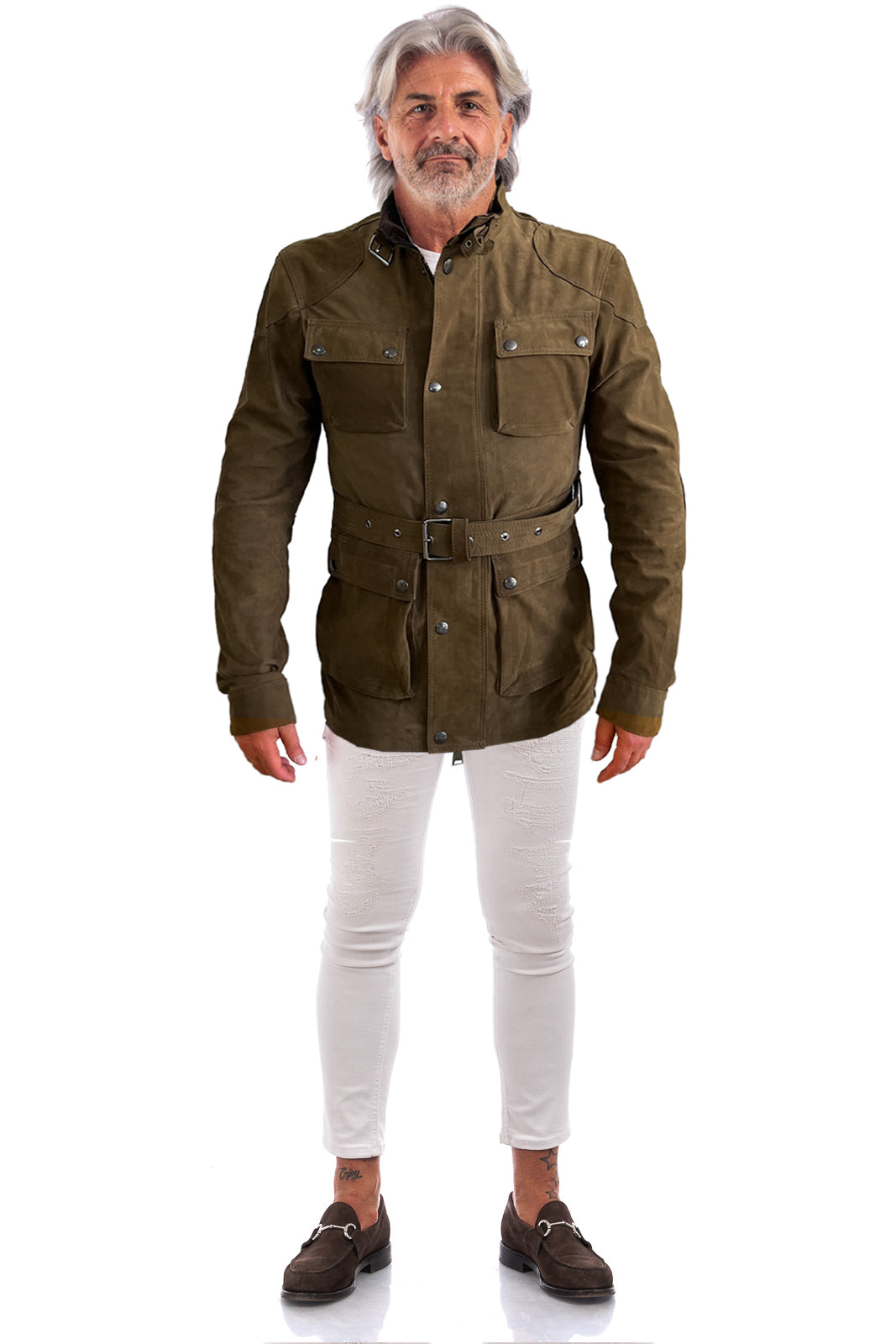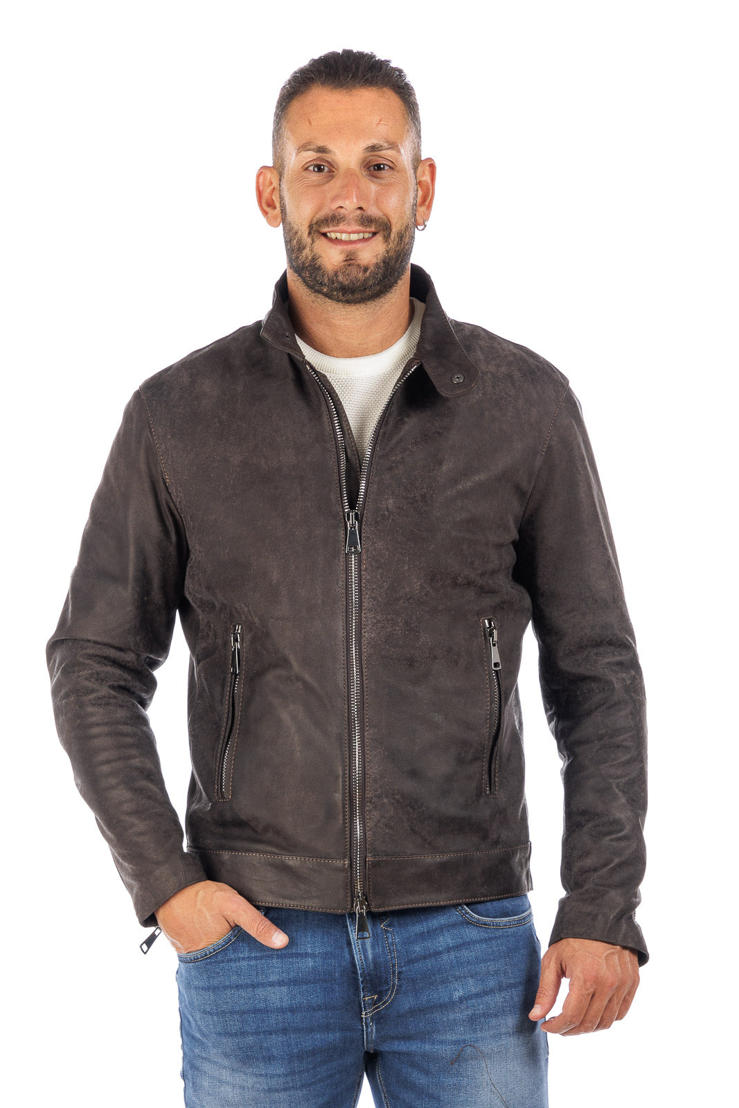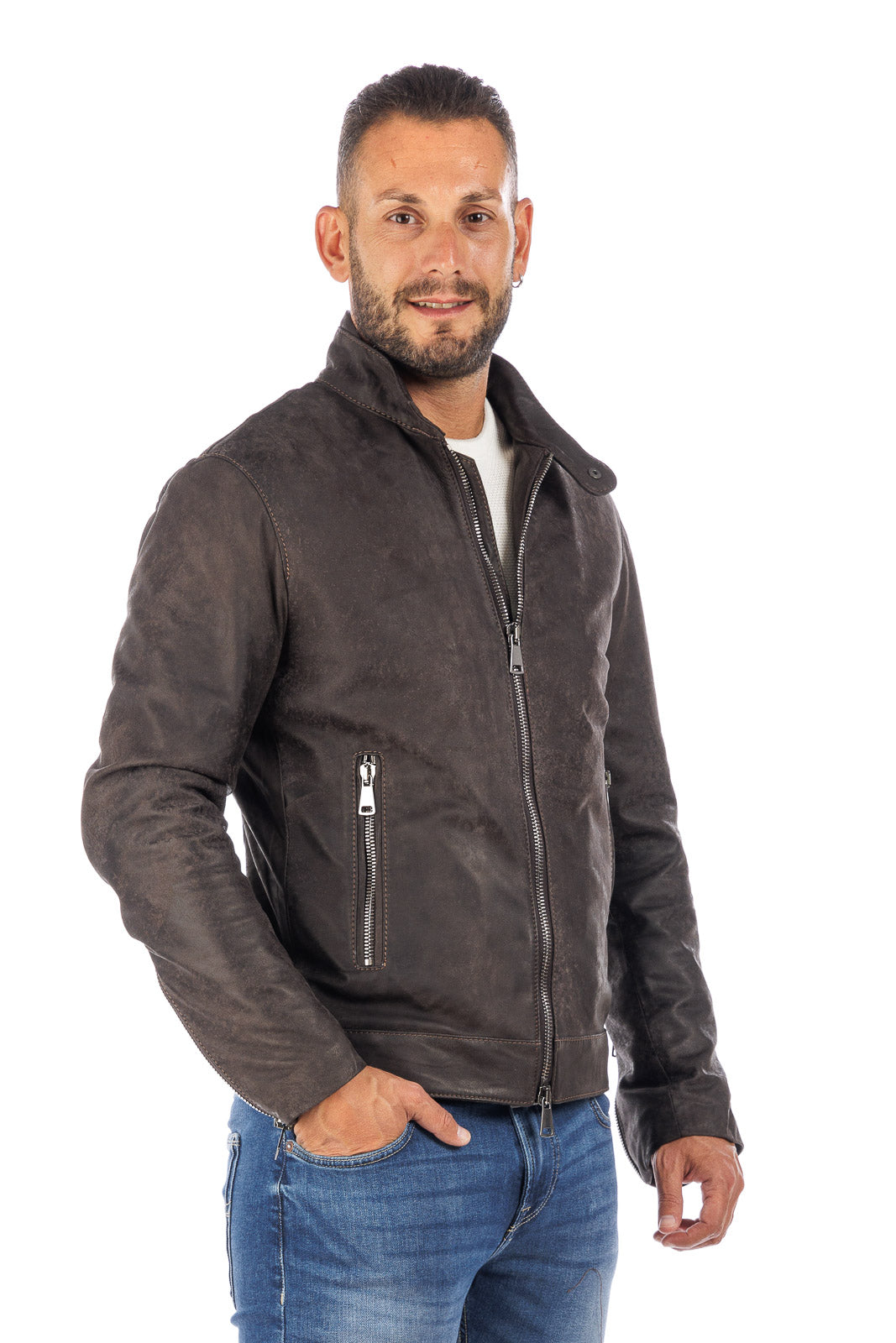 Giacca in vera pelle BELL + con zip in nabuk