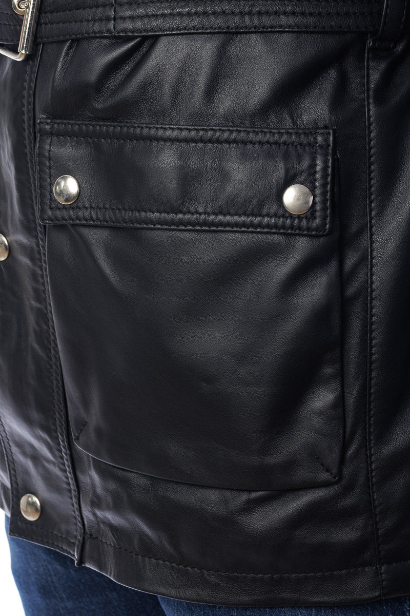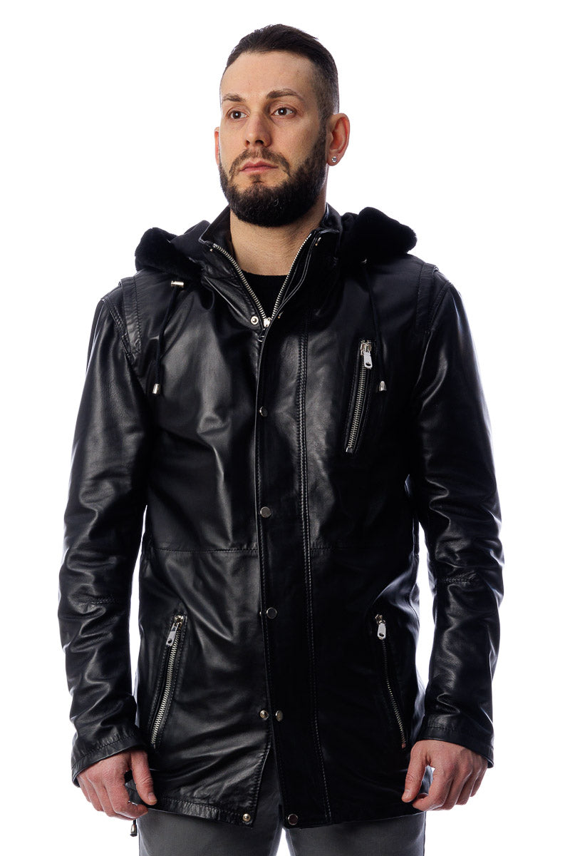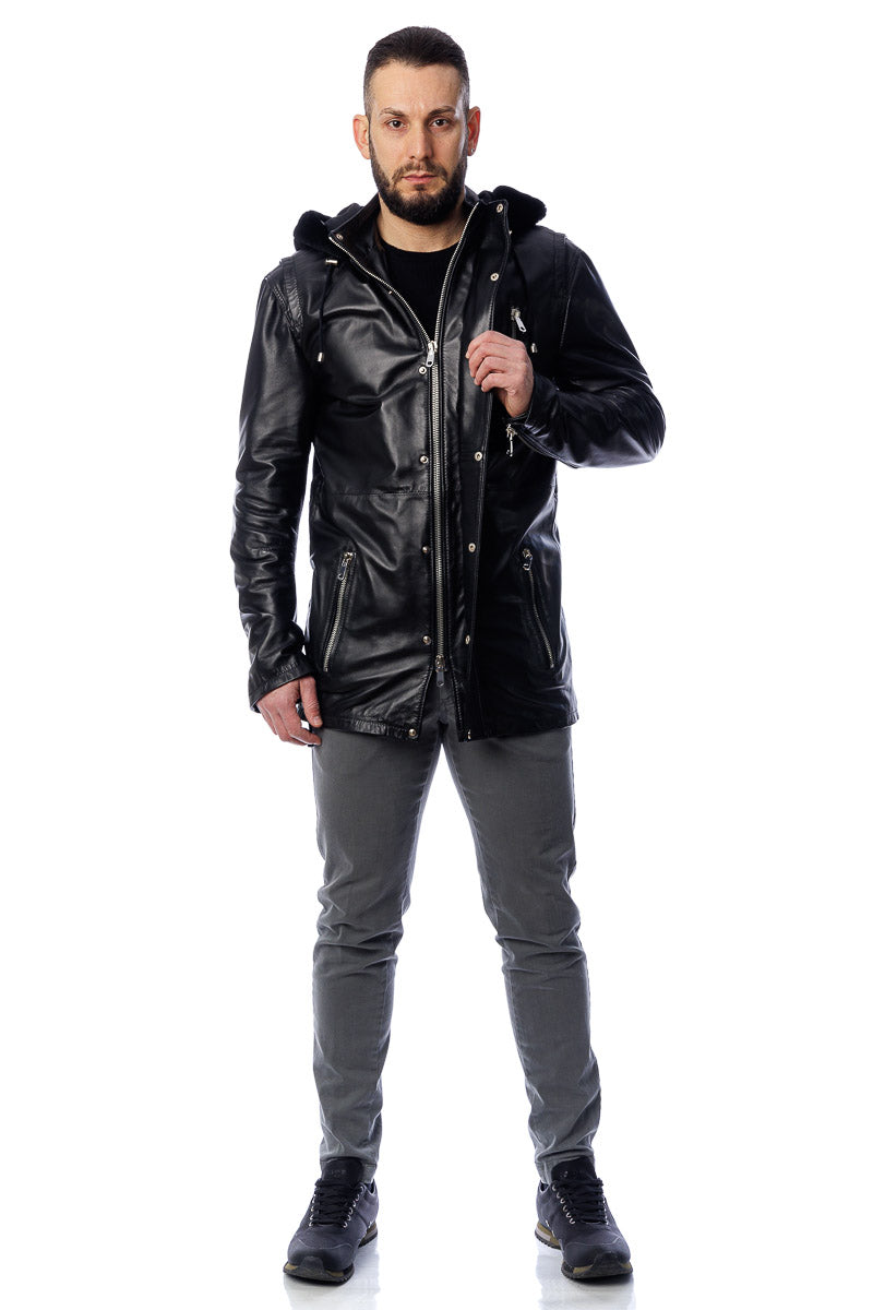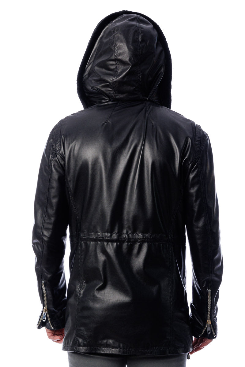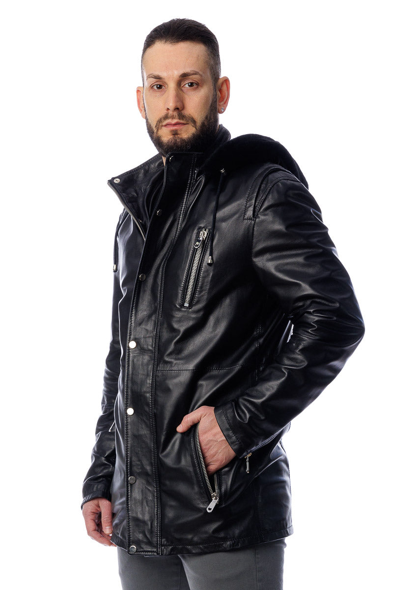 Giacca in vera pelle con cappuccio in montone