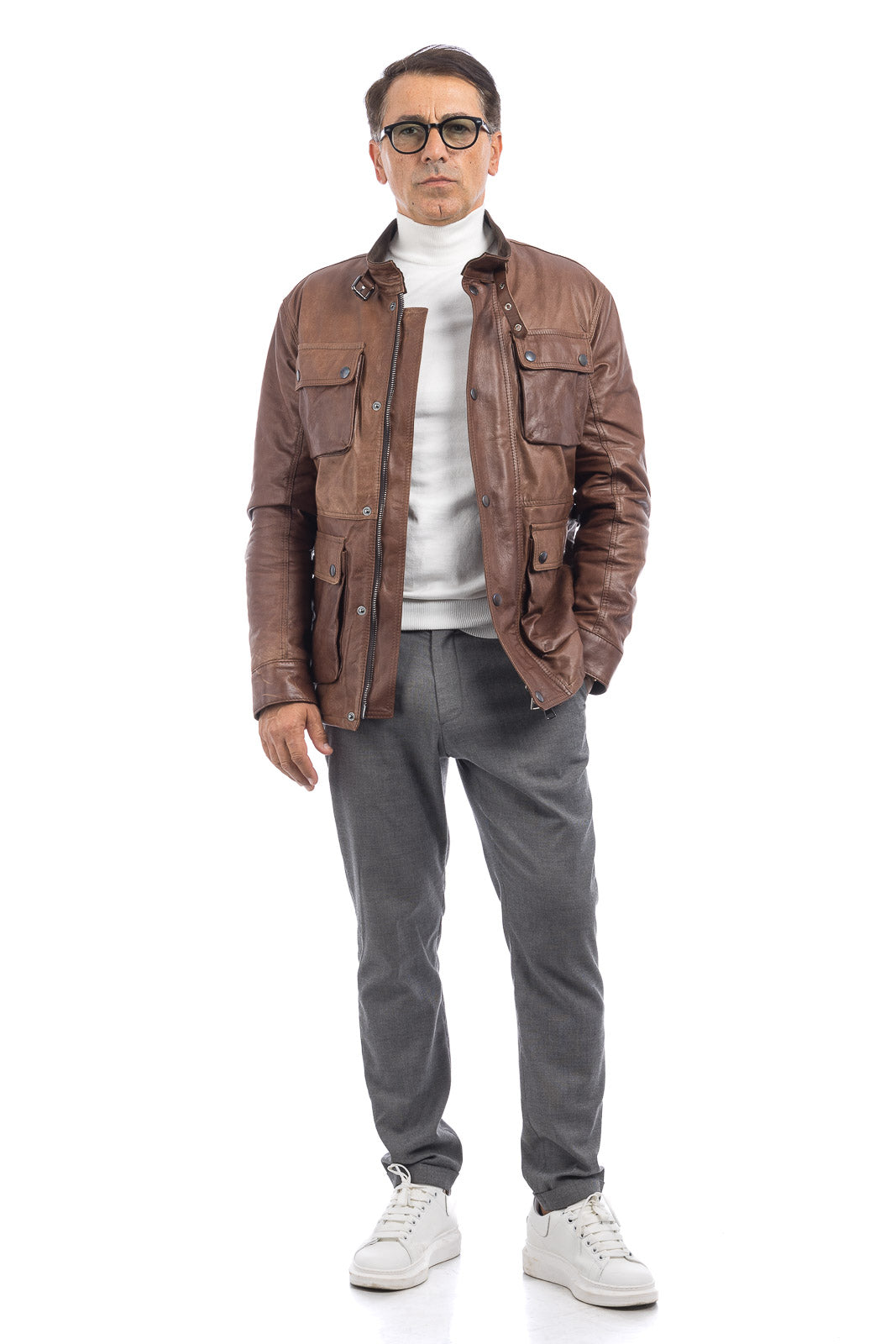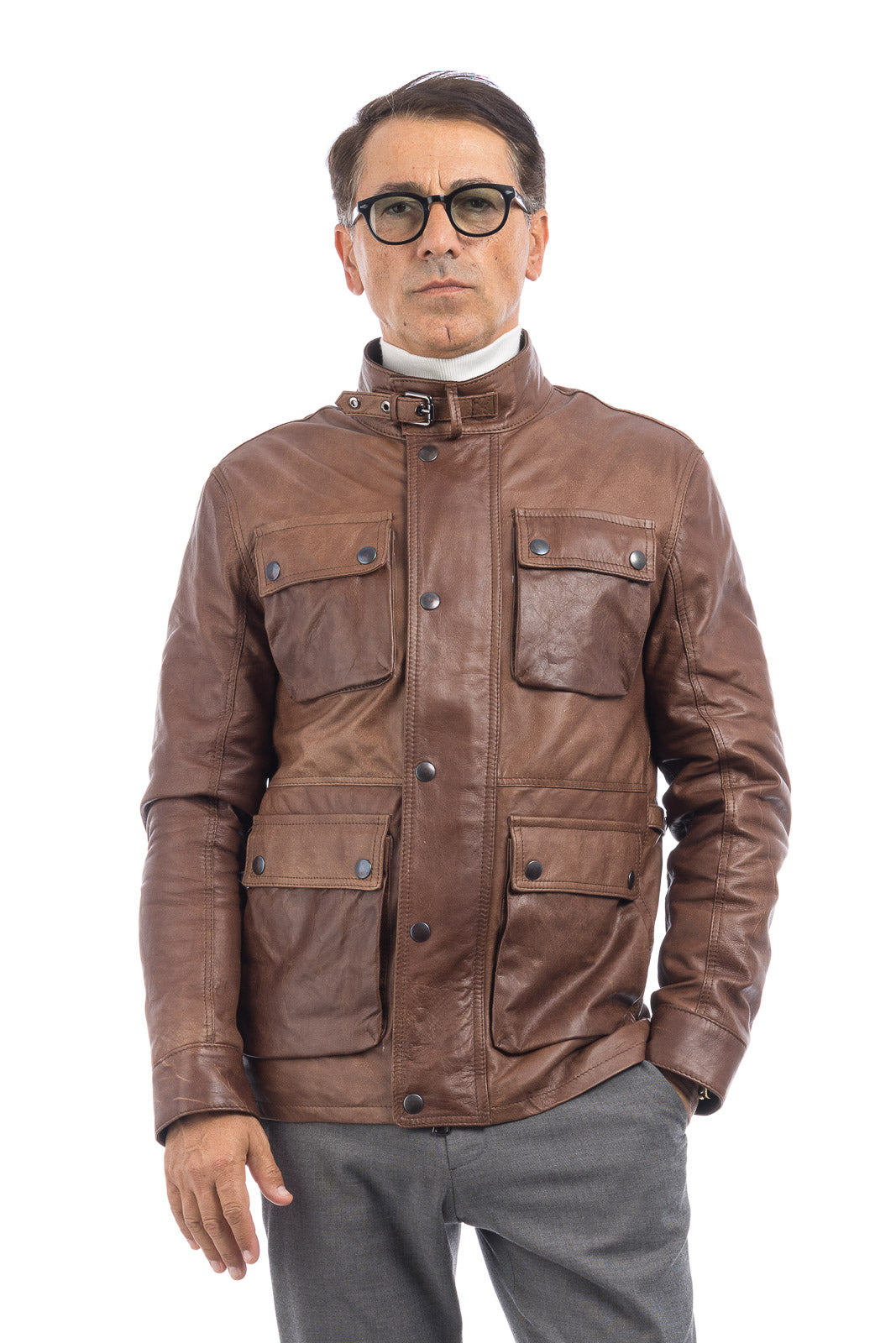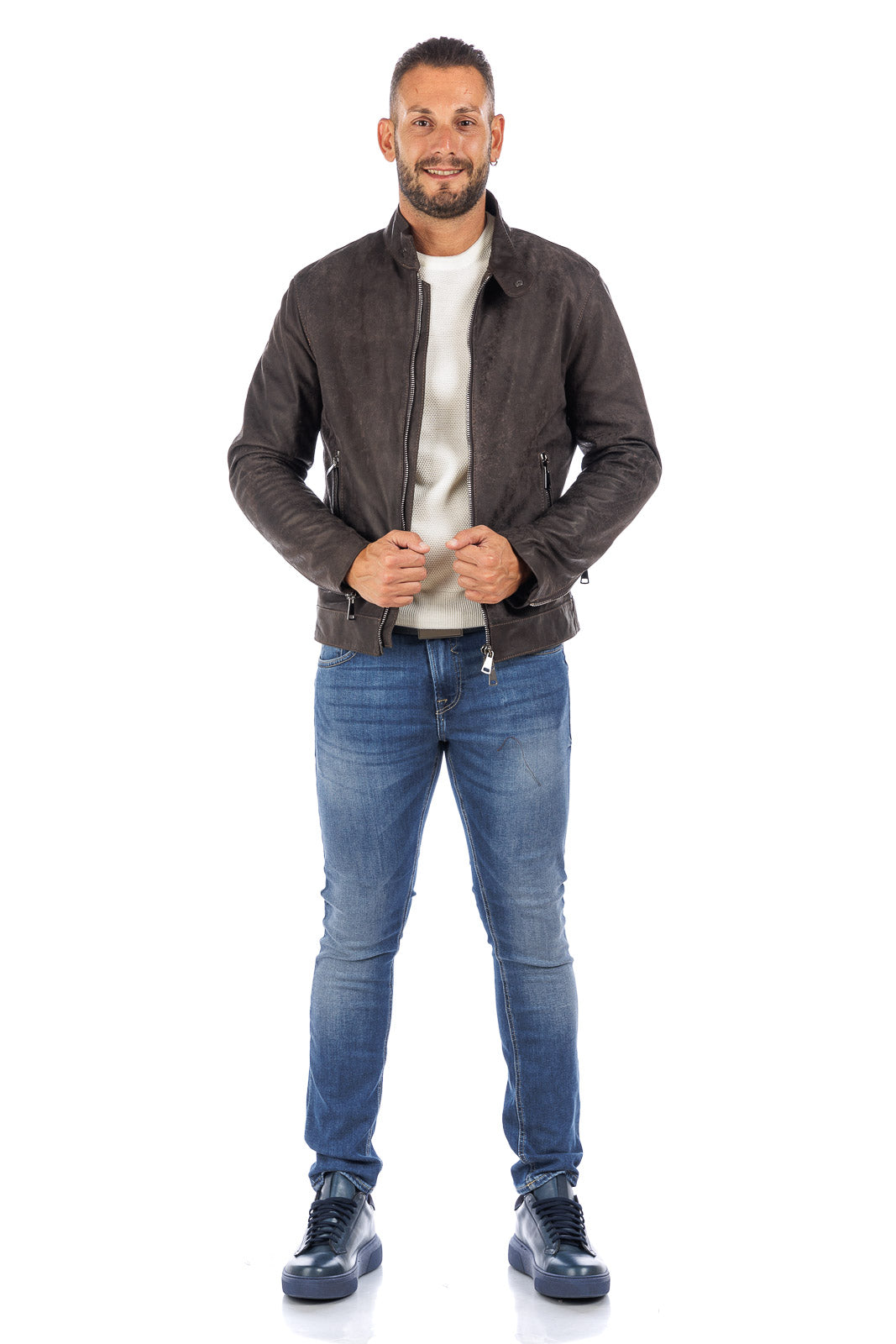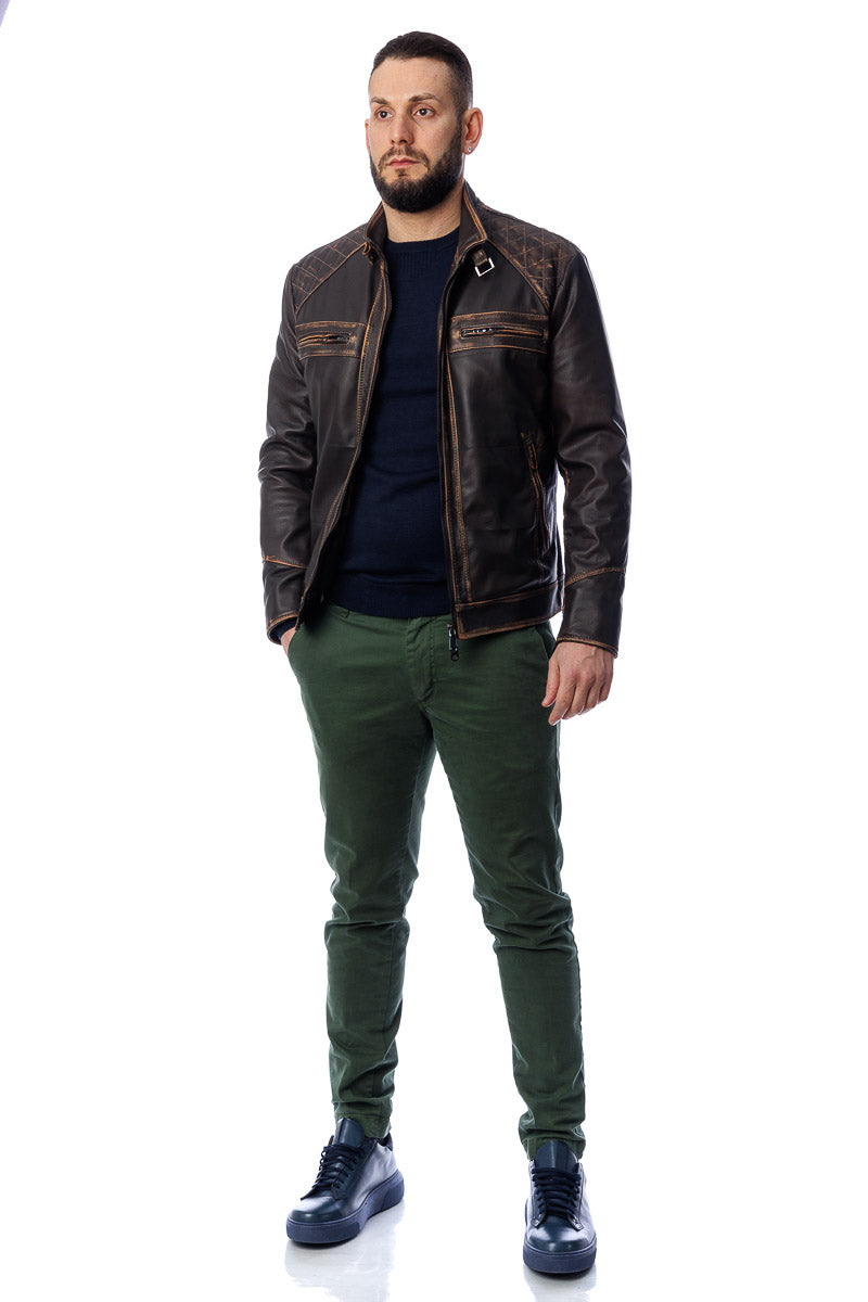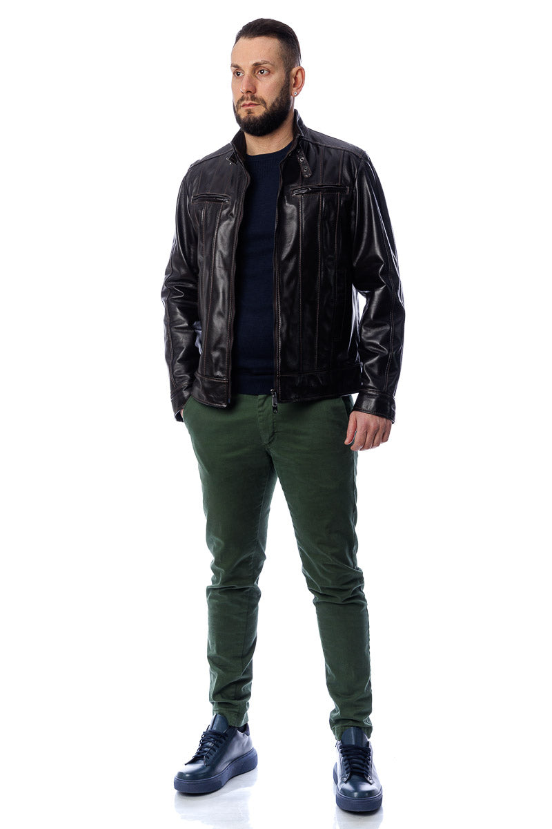 Giacca in vera pelle uomo con zip BEK