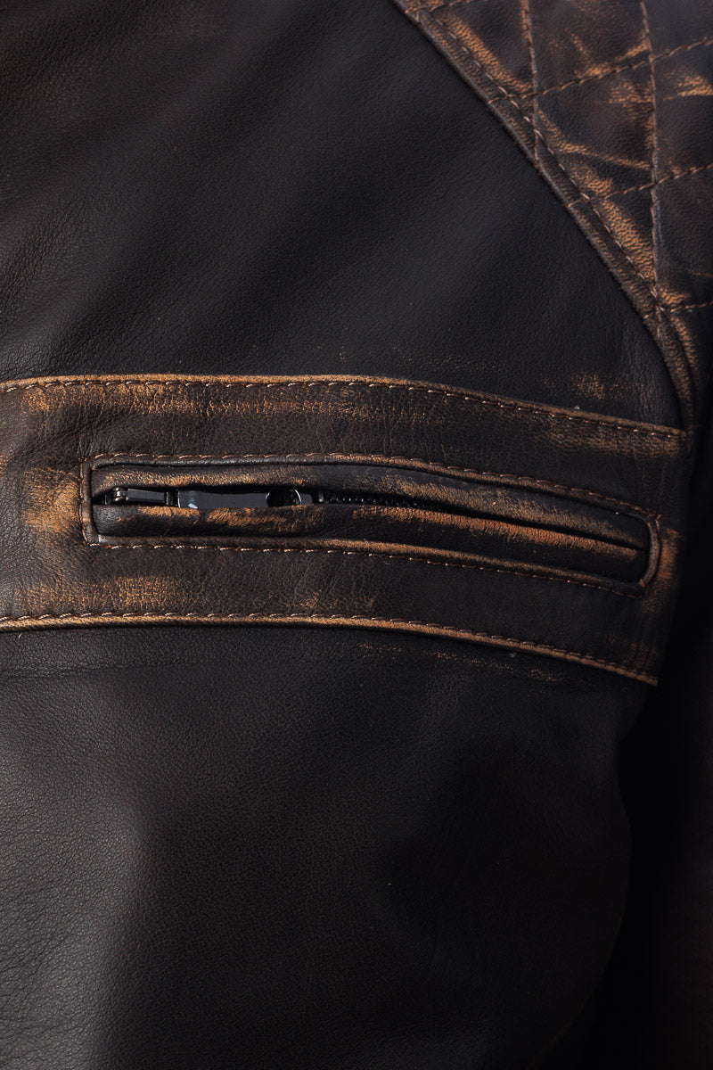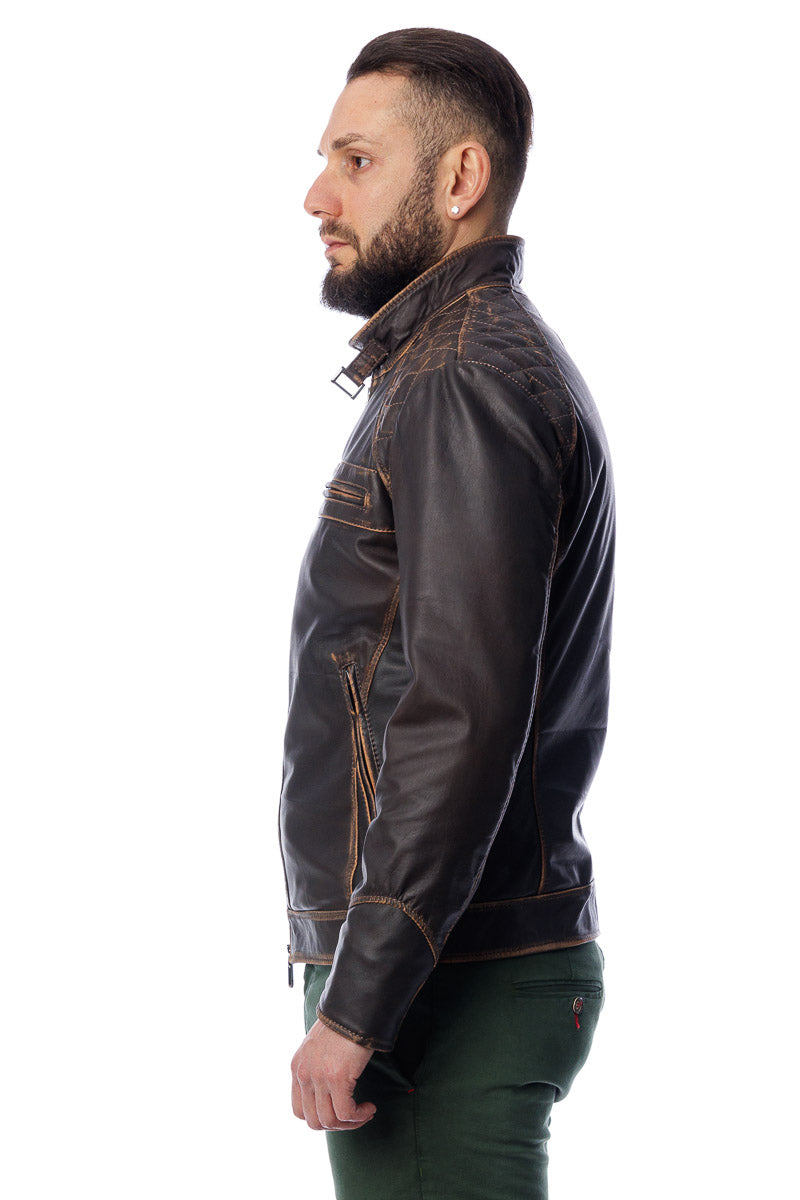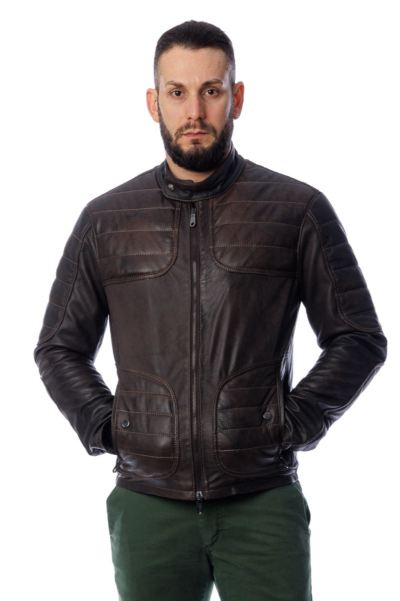 Giacca in vera pelle con zip uomo Scab marrone
