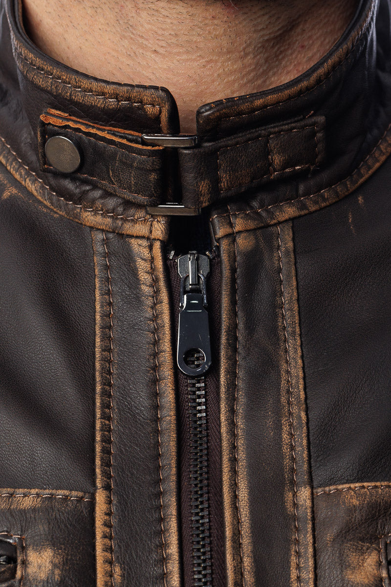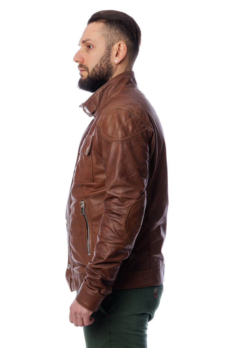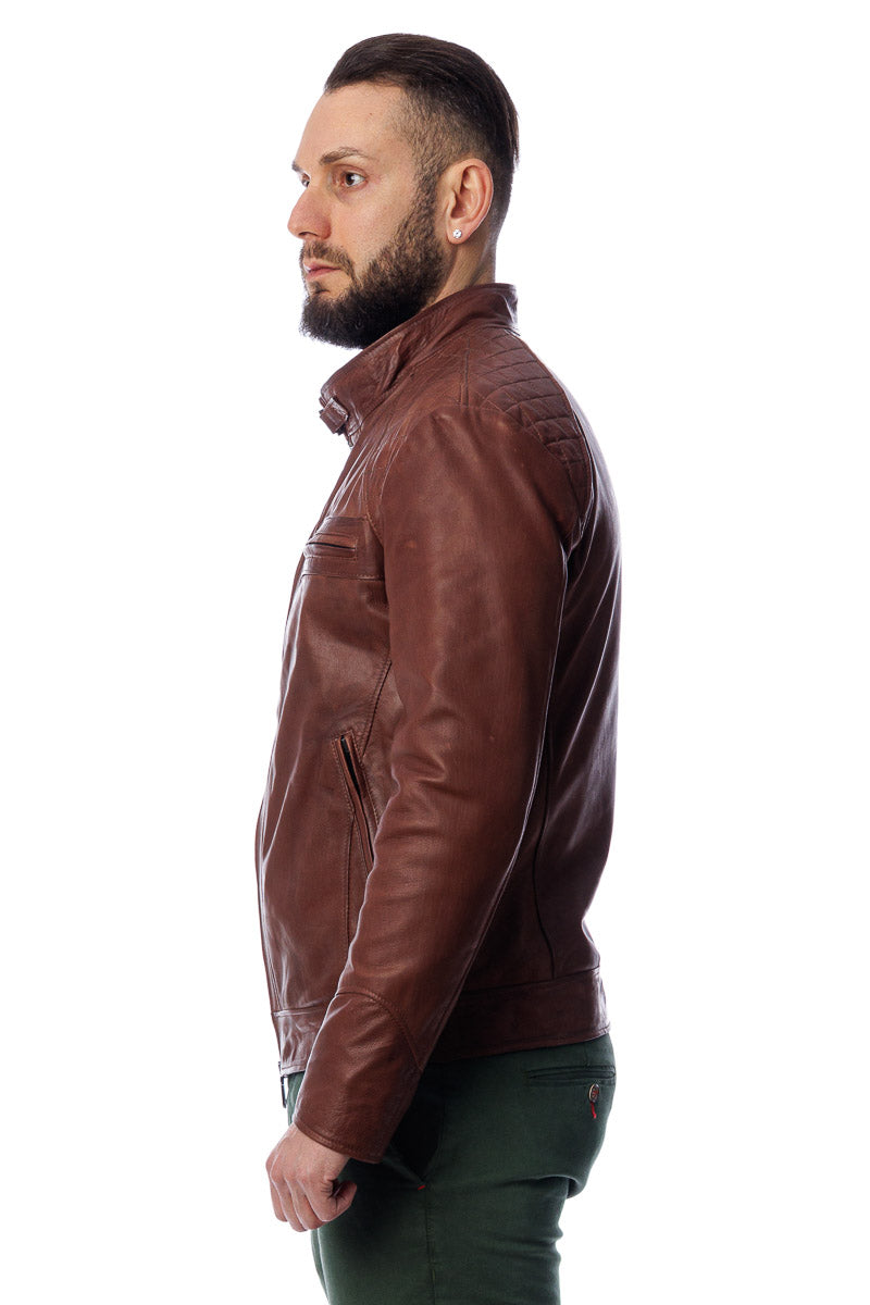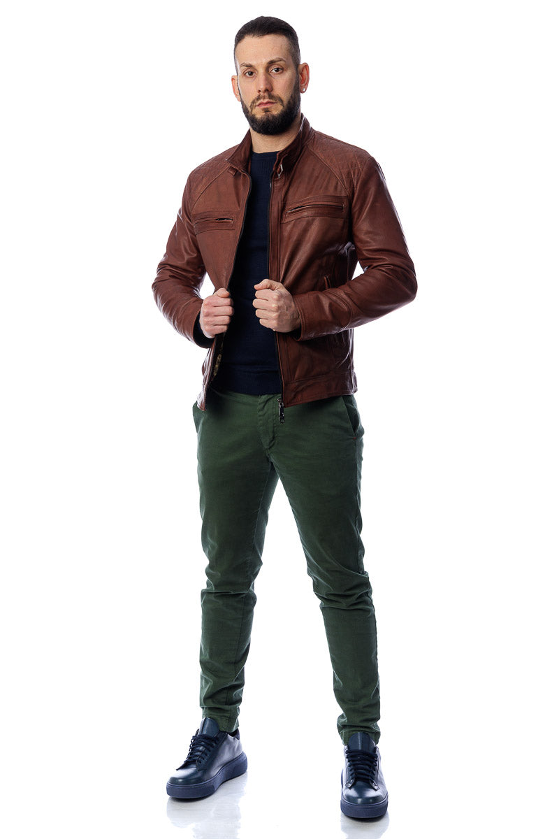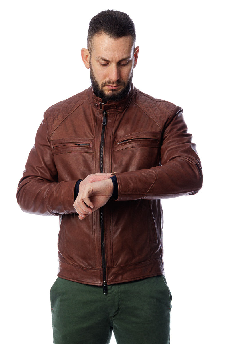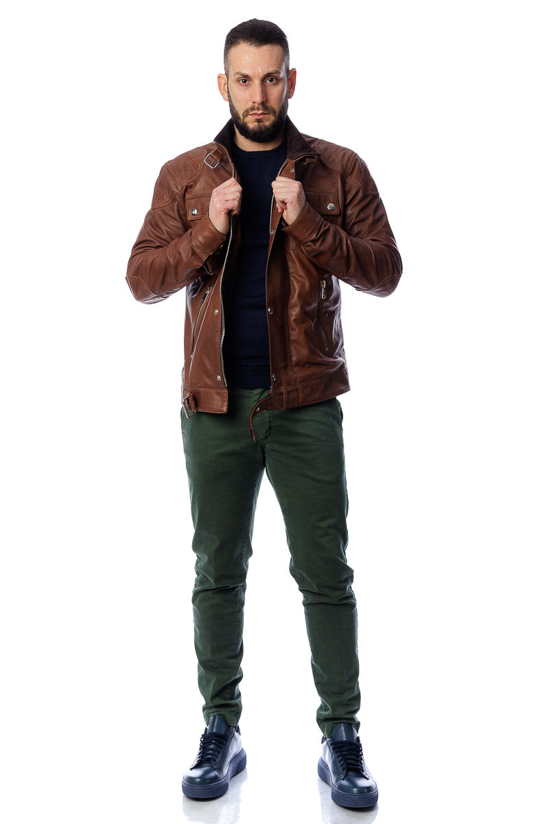 Giacca in vera pelle uomo con zip Bel marrone
