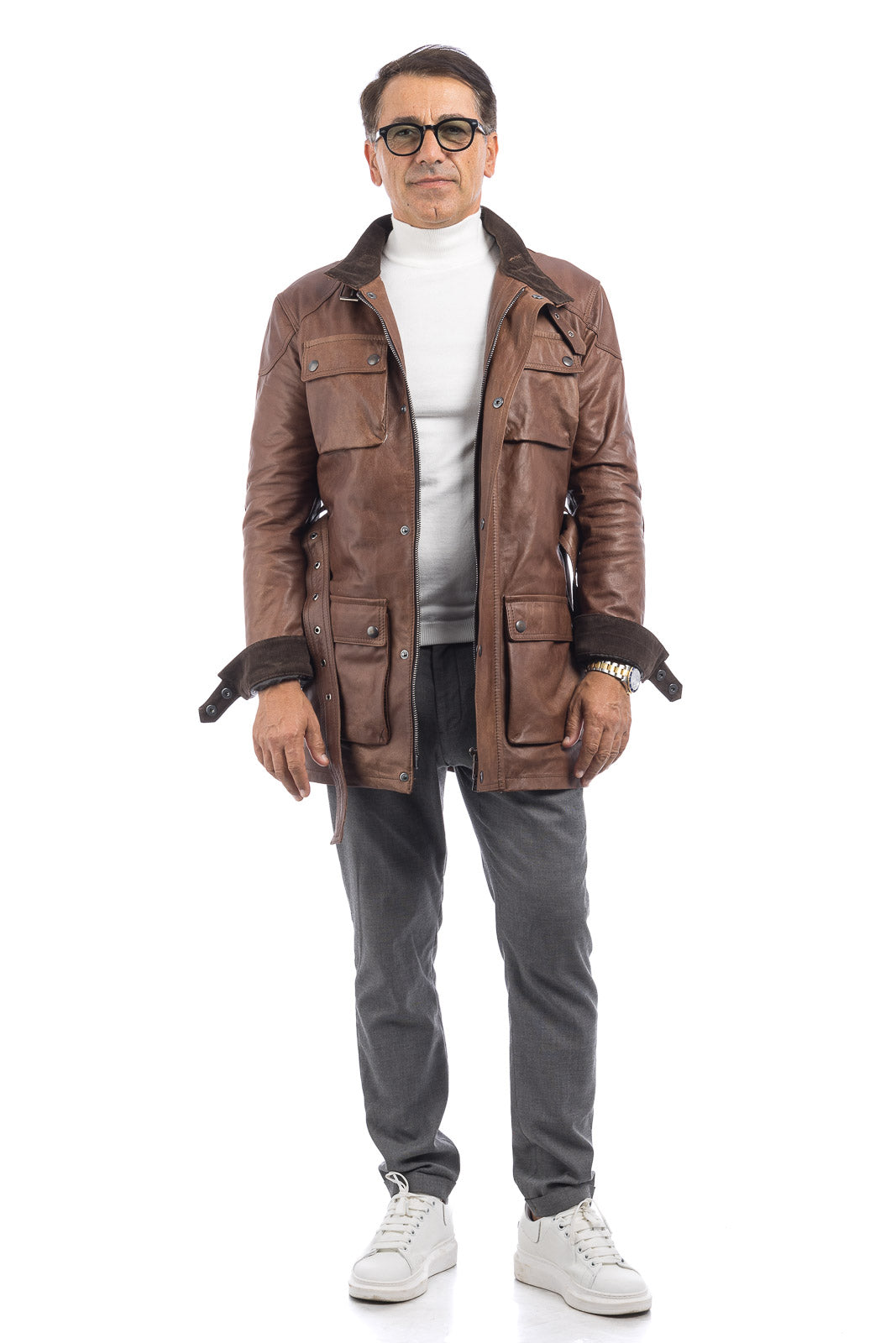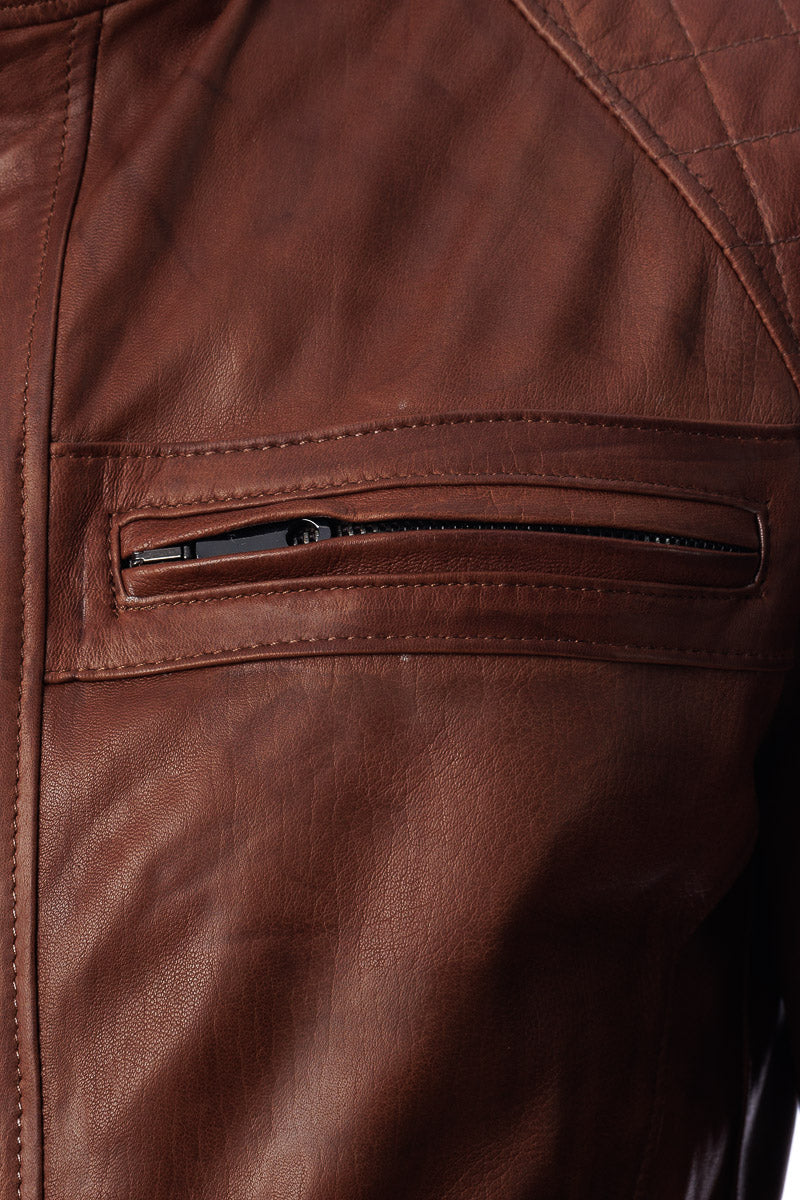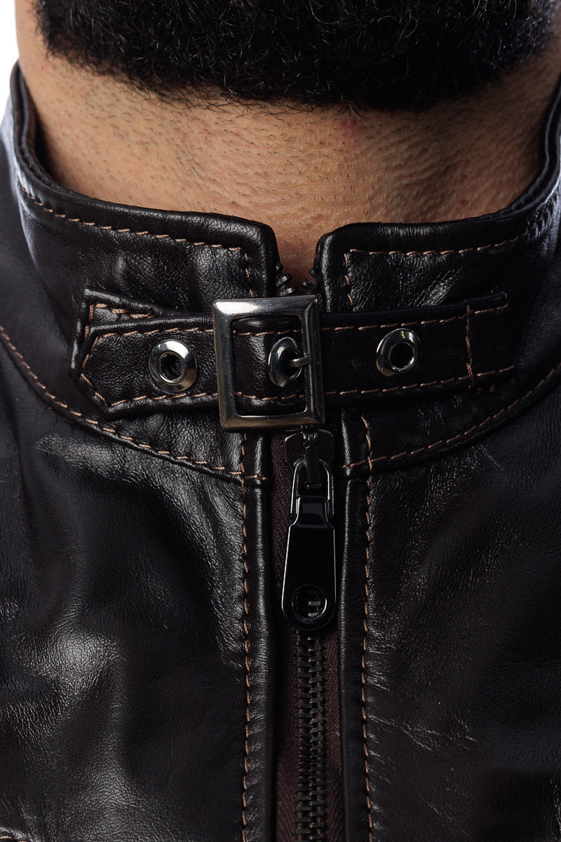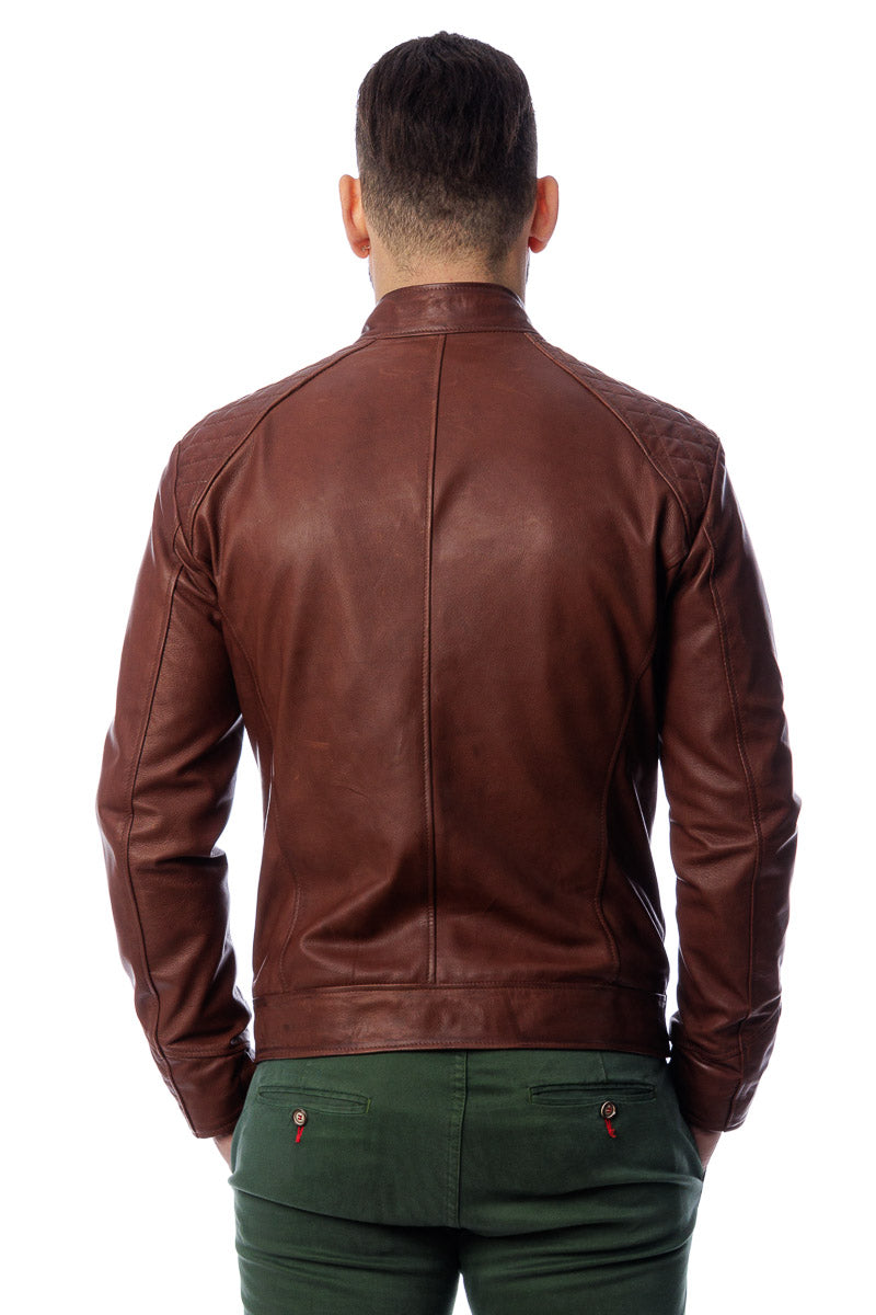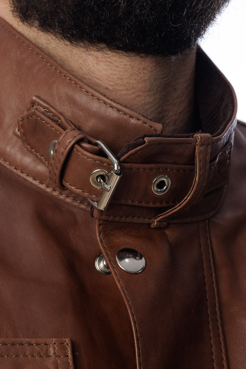Giacca in vera pelle uomo con zip Bel marrone