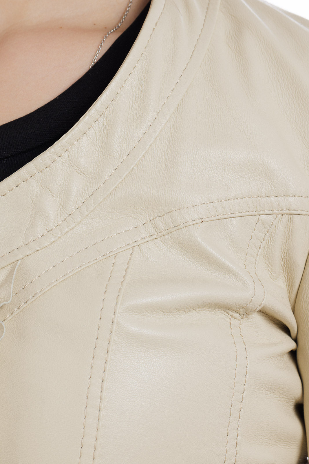 Giacca in vera pelle donna con zip e rush GATE panna