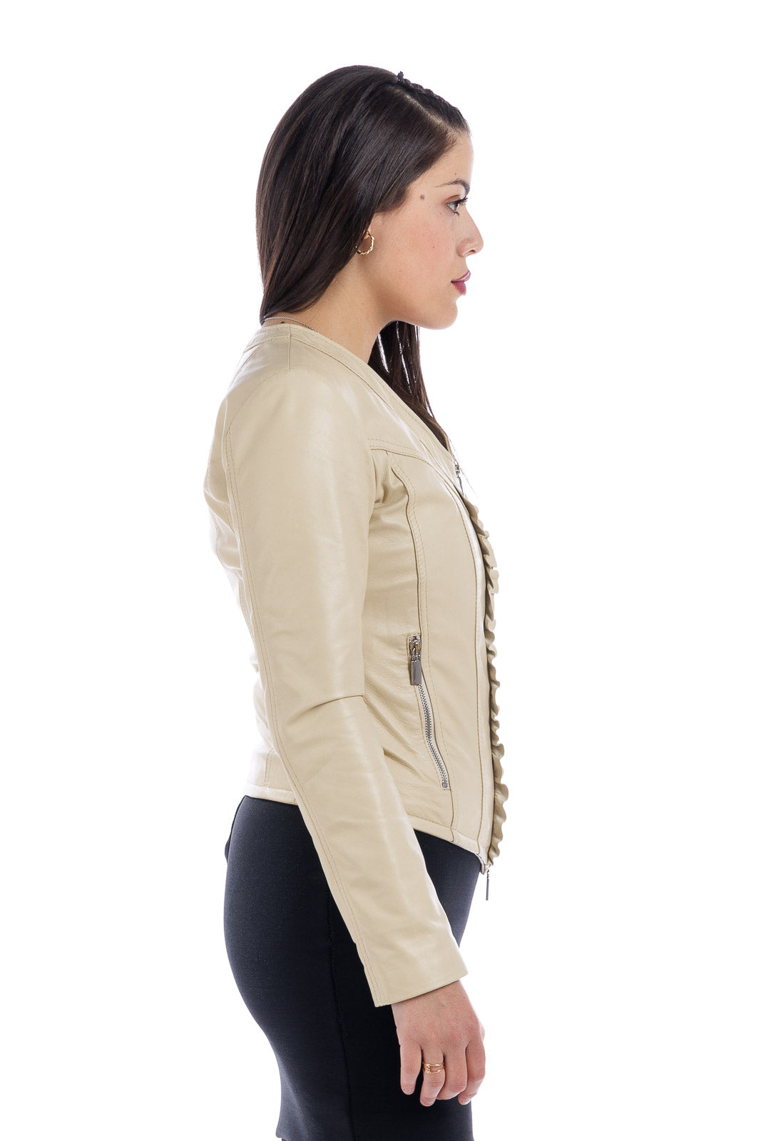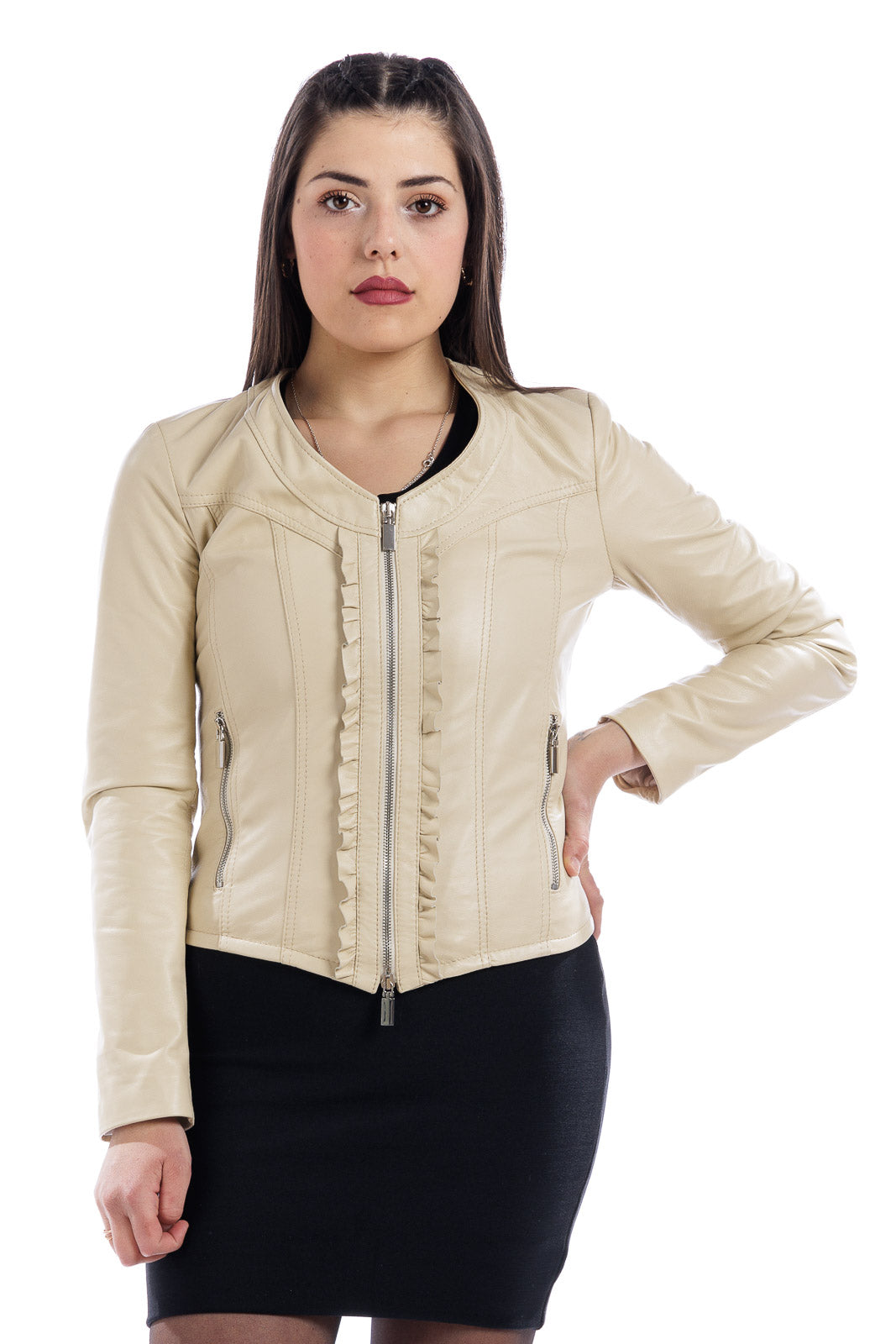 Giacca in vera pelle donna con zip GIUS panna
