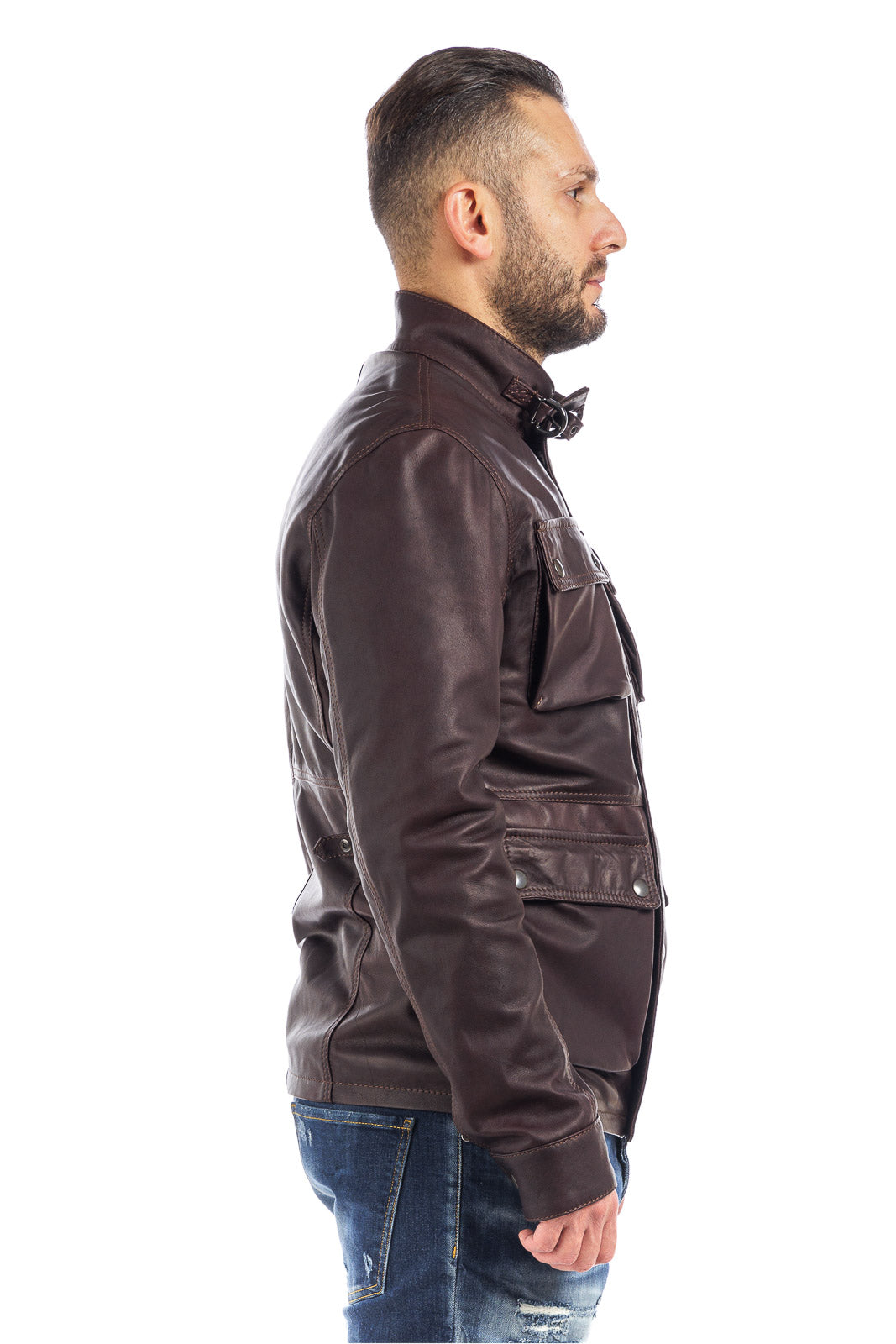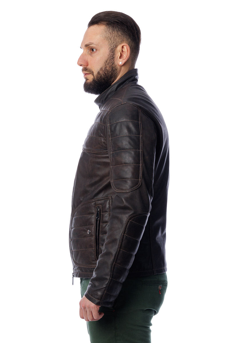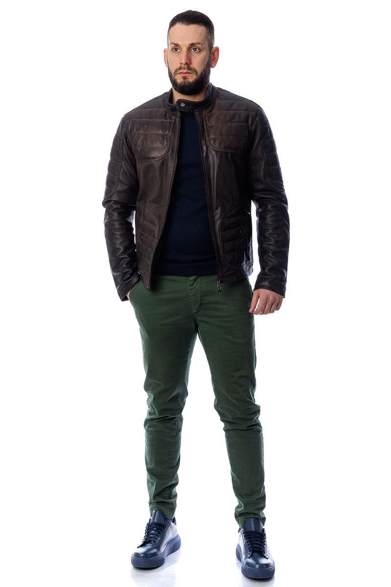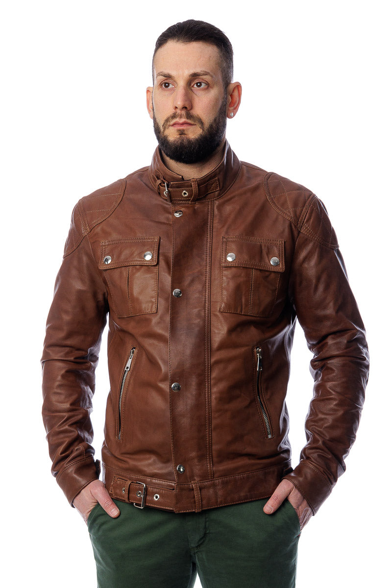 Giacca in vera pelle uomo con zip Bel sc marrone