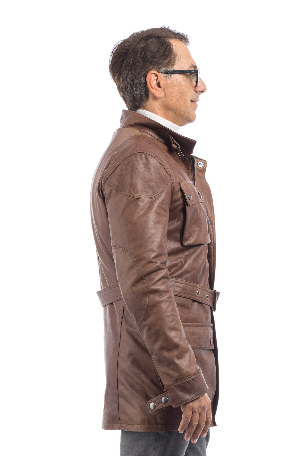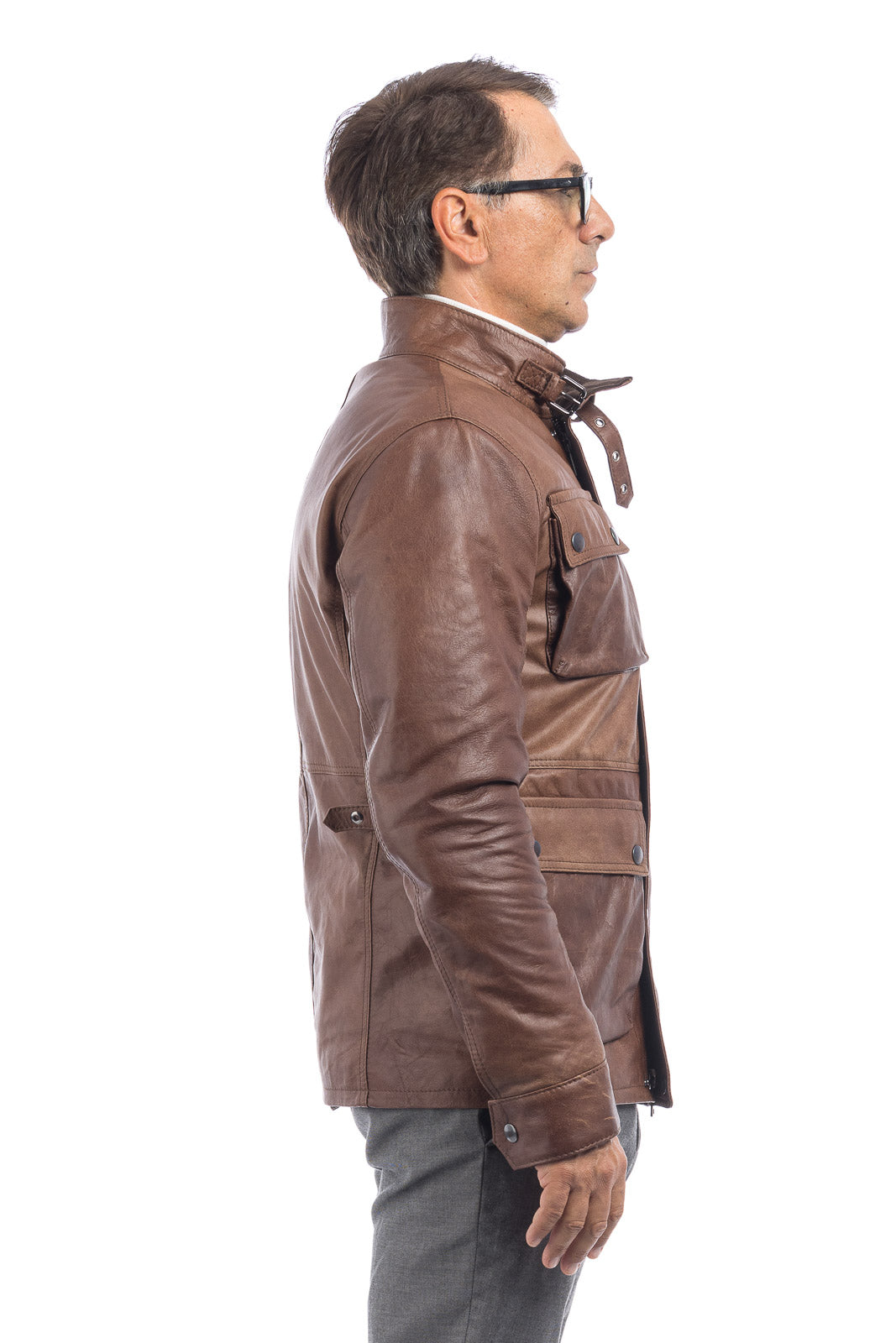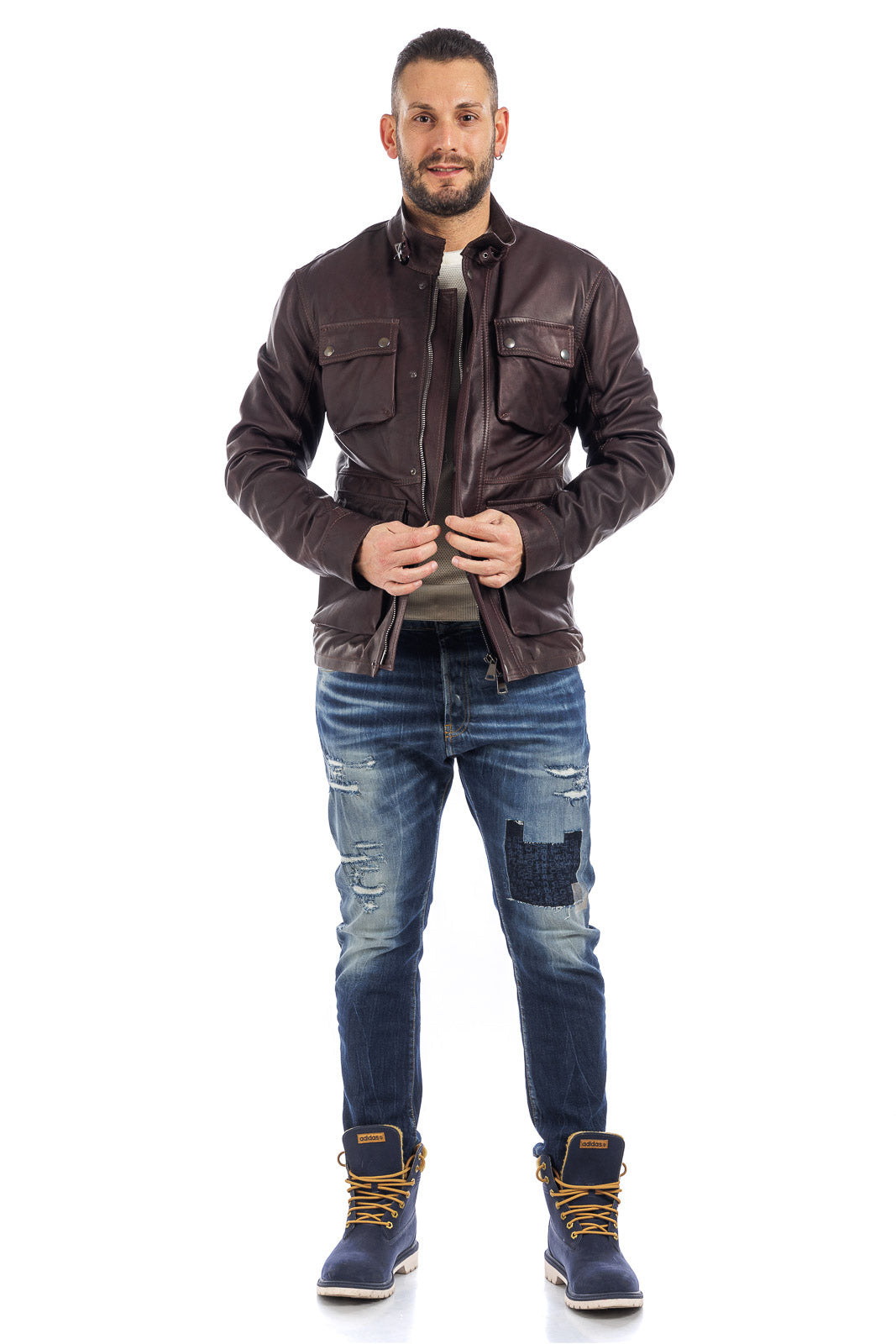 Giacca in vera pelle uomo con zip Bel sc marrone