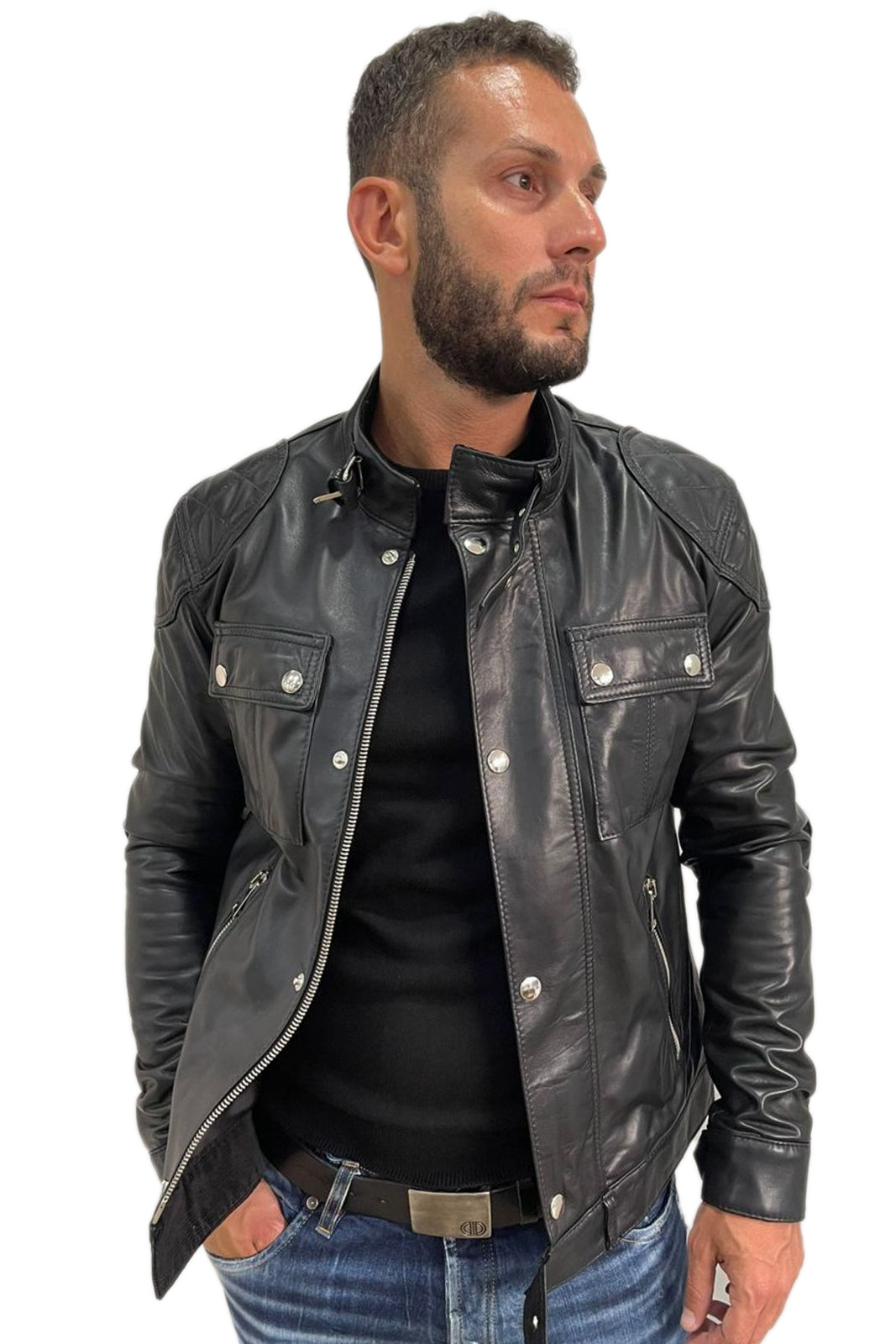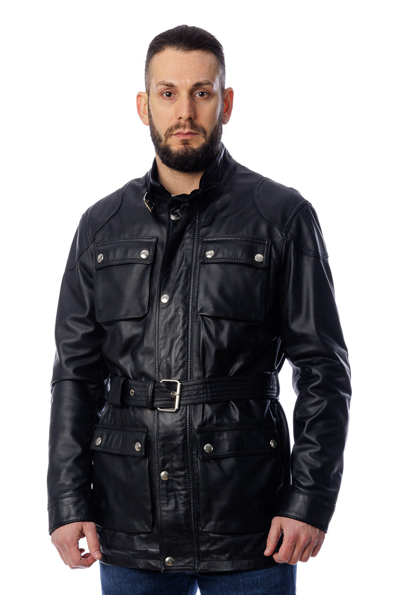 Giacca in vera pelle uomo con zip Bel