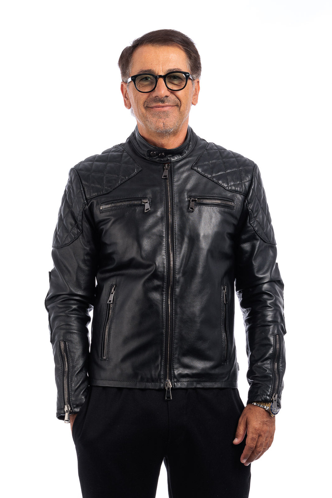 Giacca in vera pelle naturale uomo con zip Reese