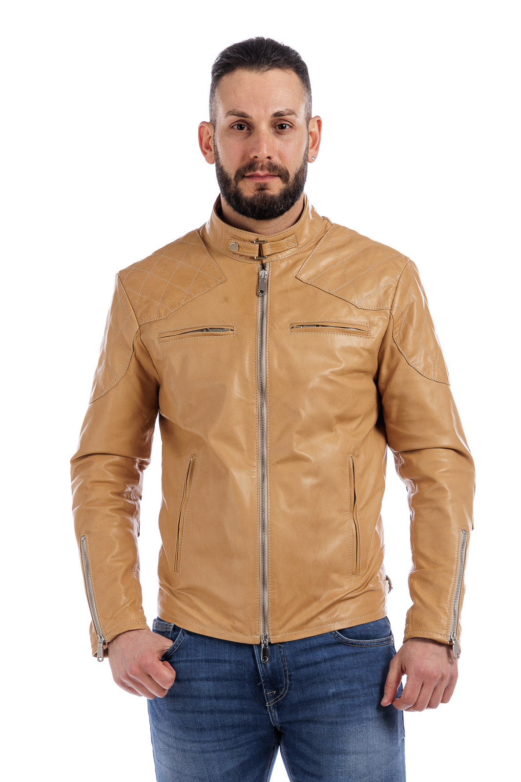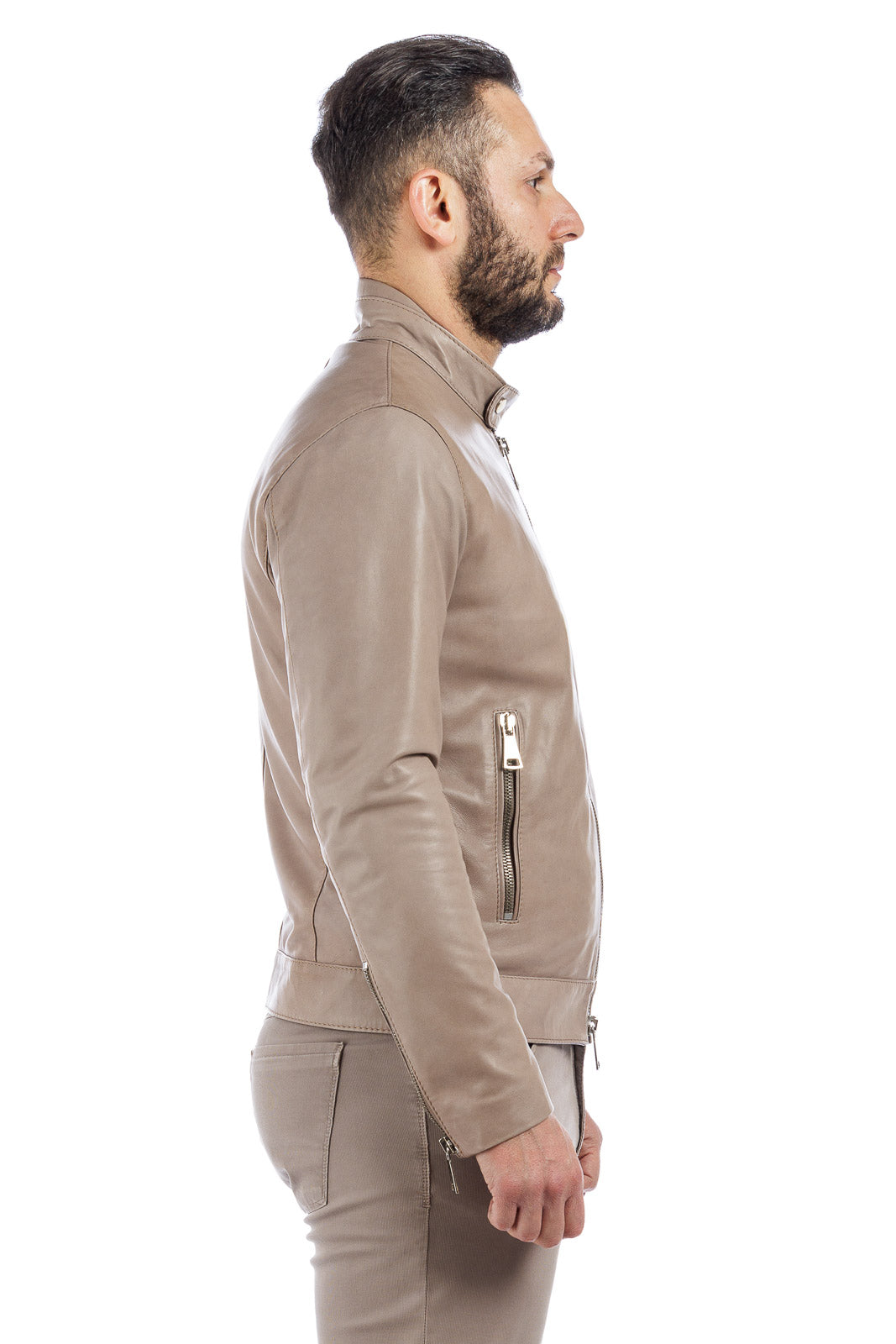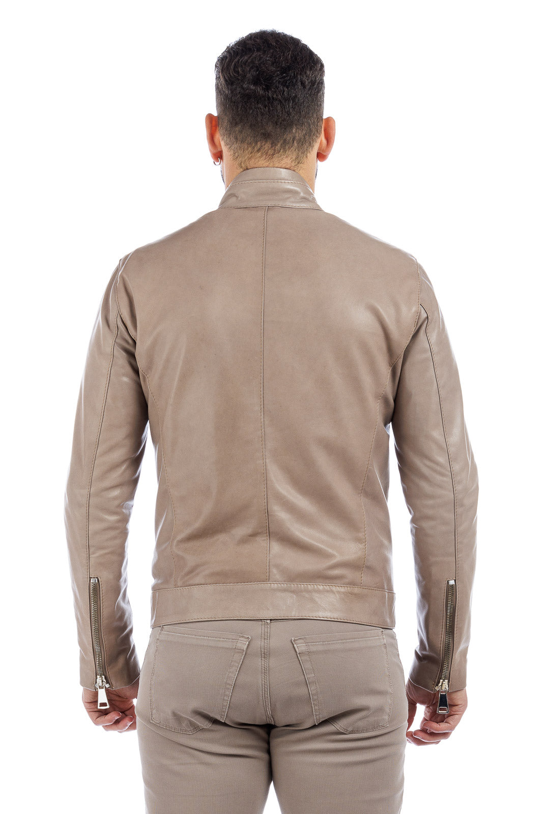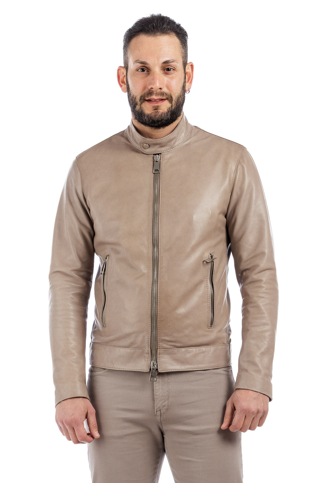 Giacca in vera pelle uomo con zip BEK sabbia