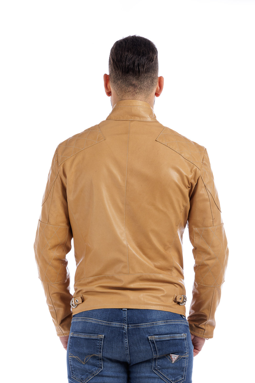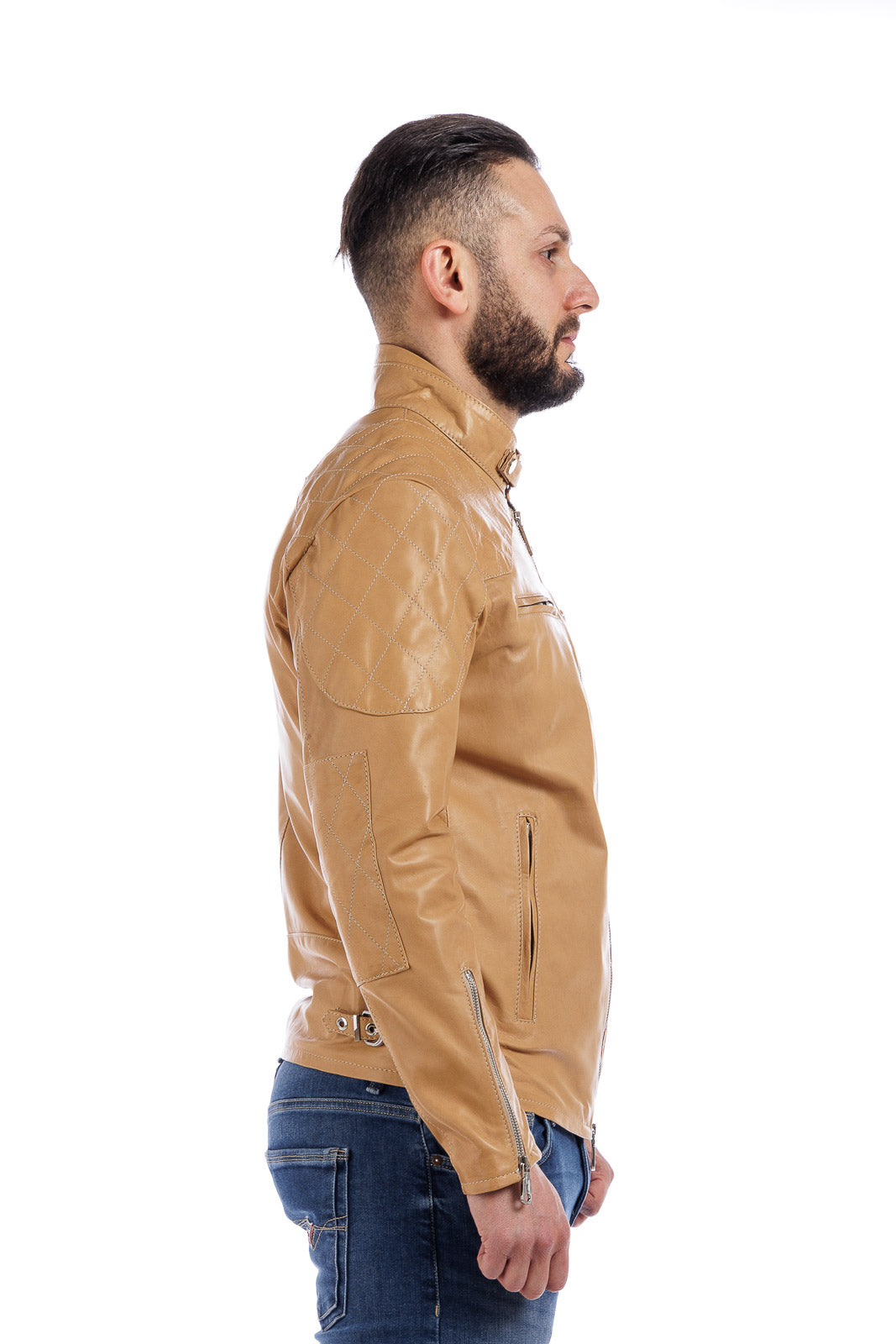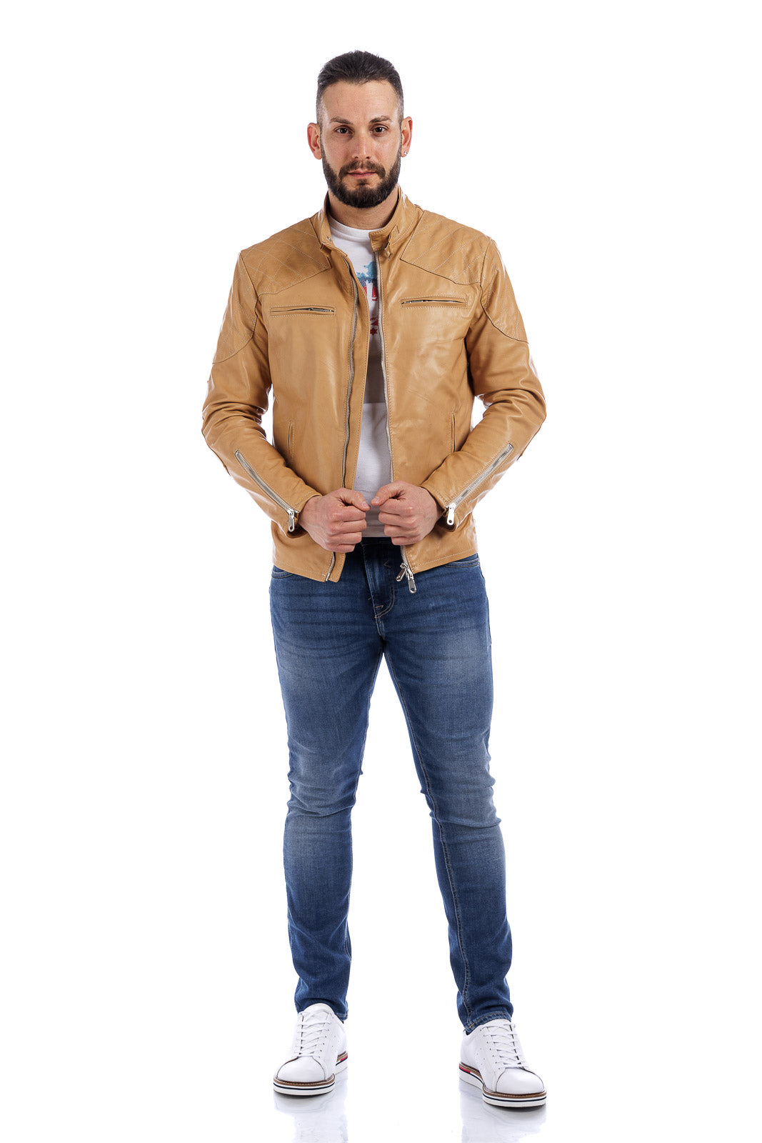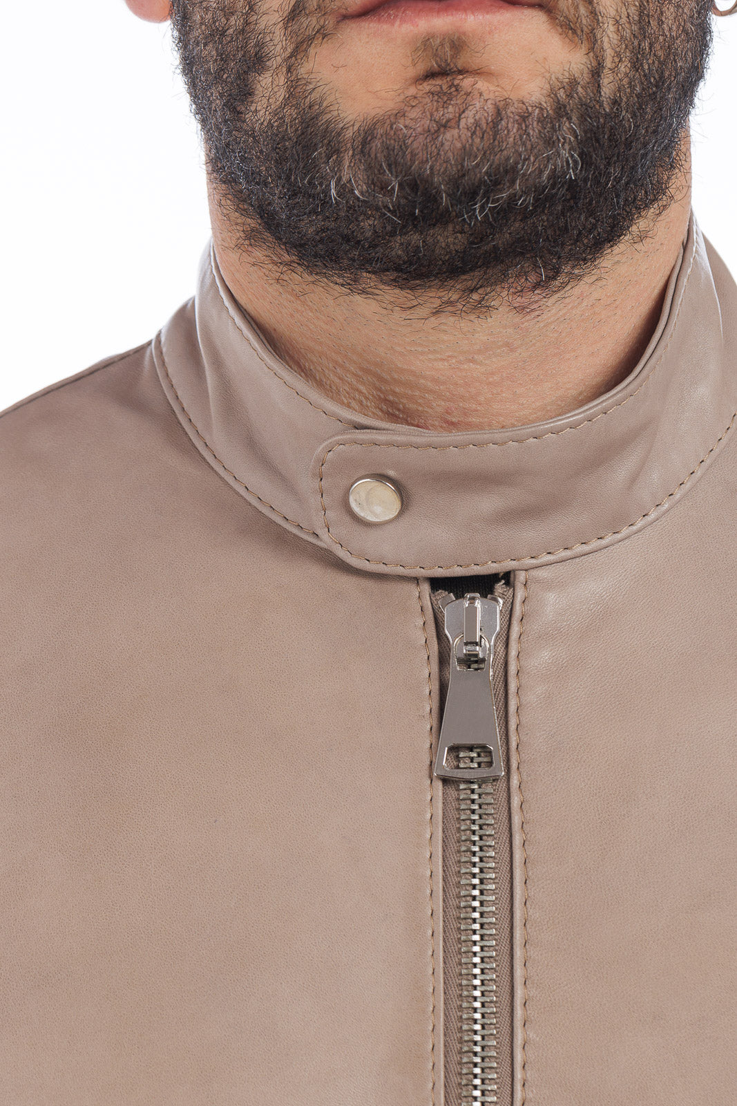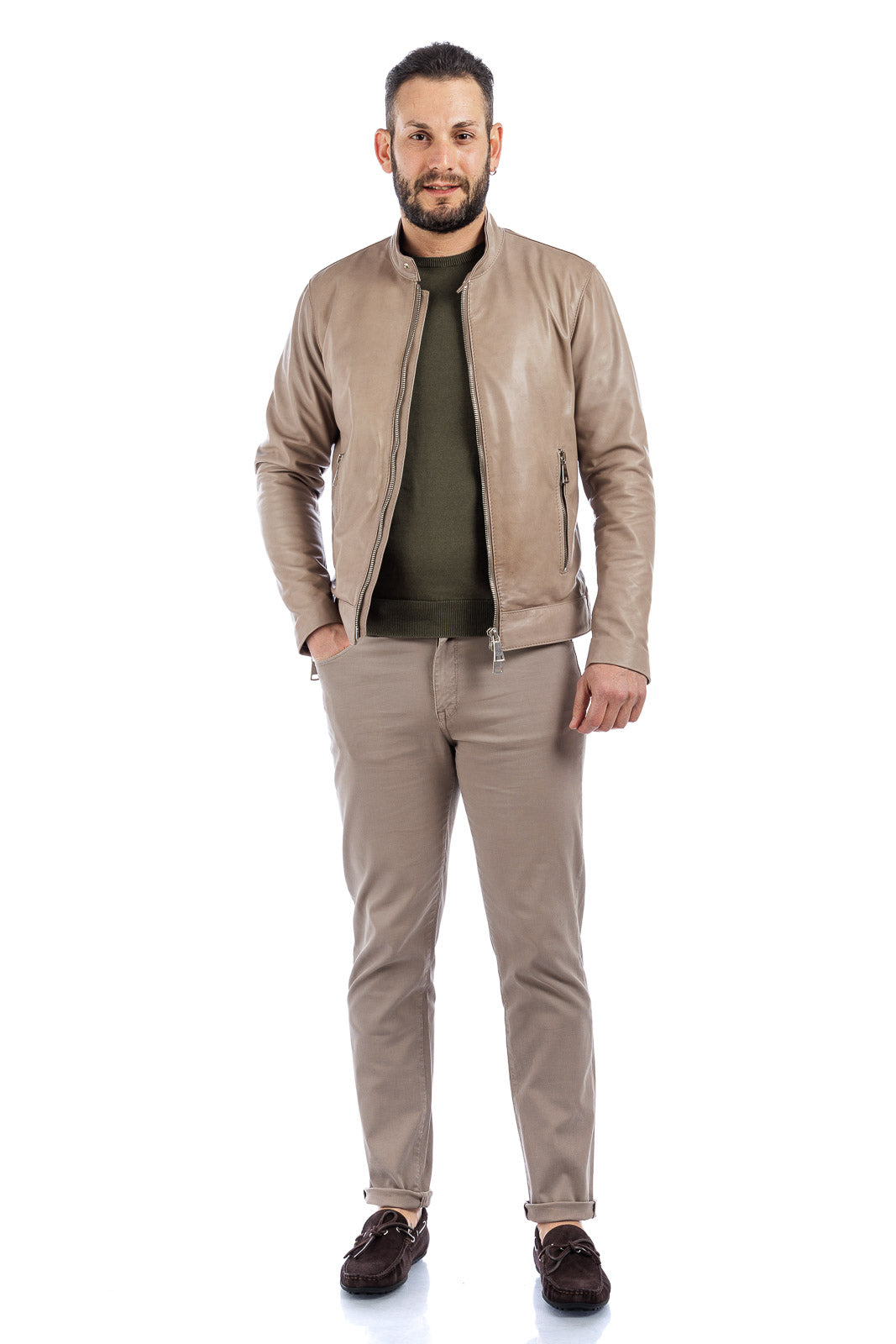 Giacca in vera pelle uomo con zip BEK sabbia