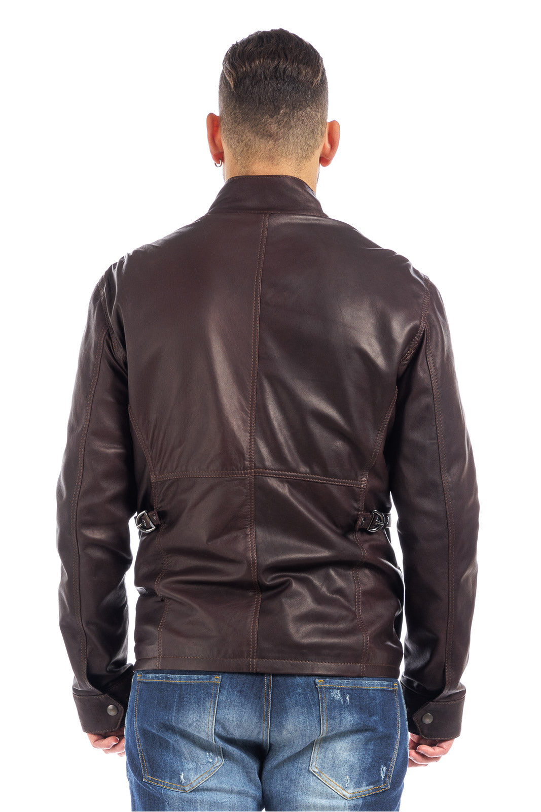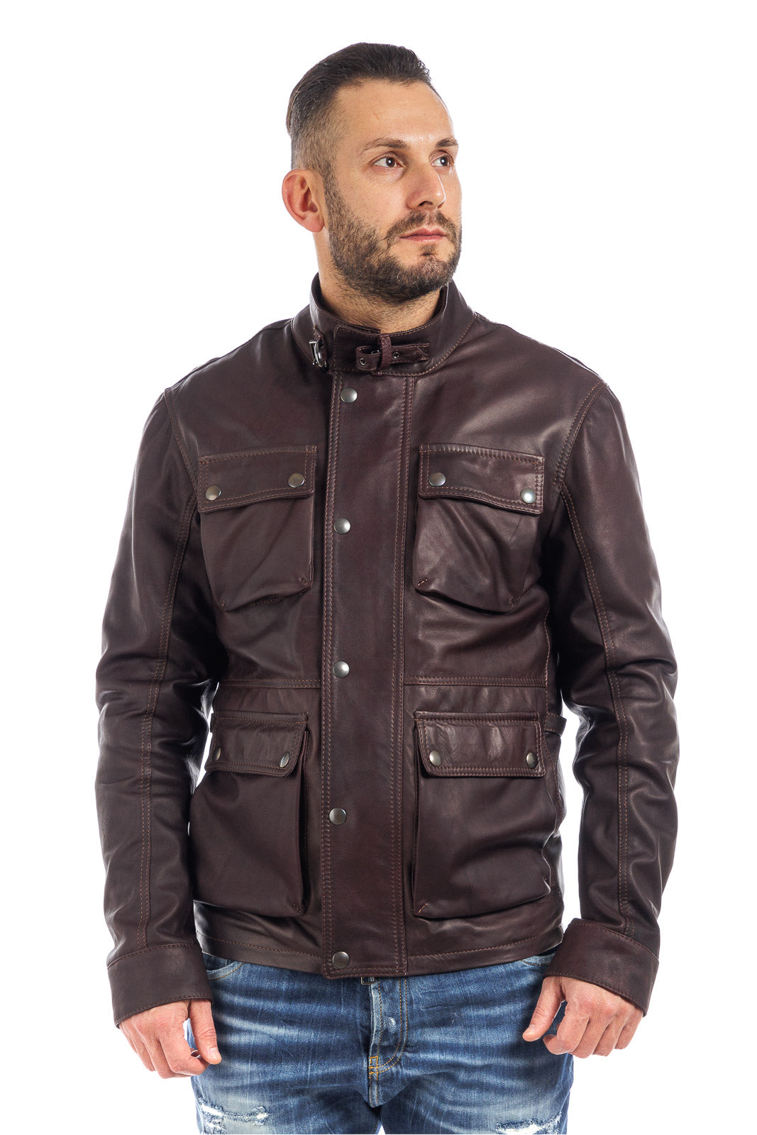 Giacca in vera pelle uomo con zip Bel sc marrone vinaccia