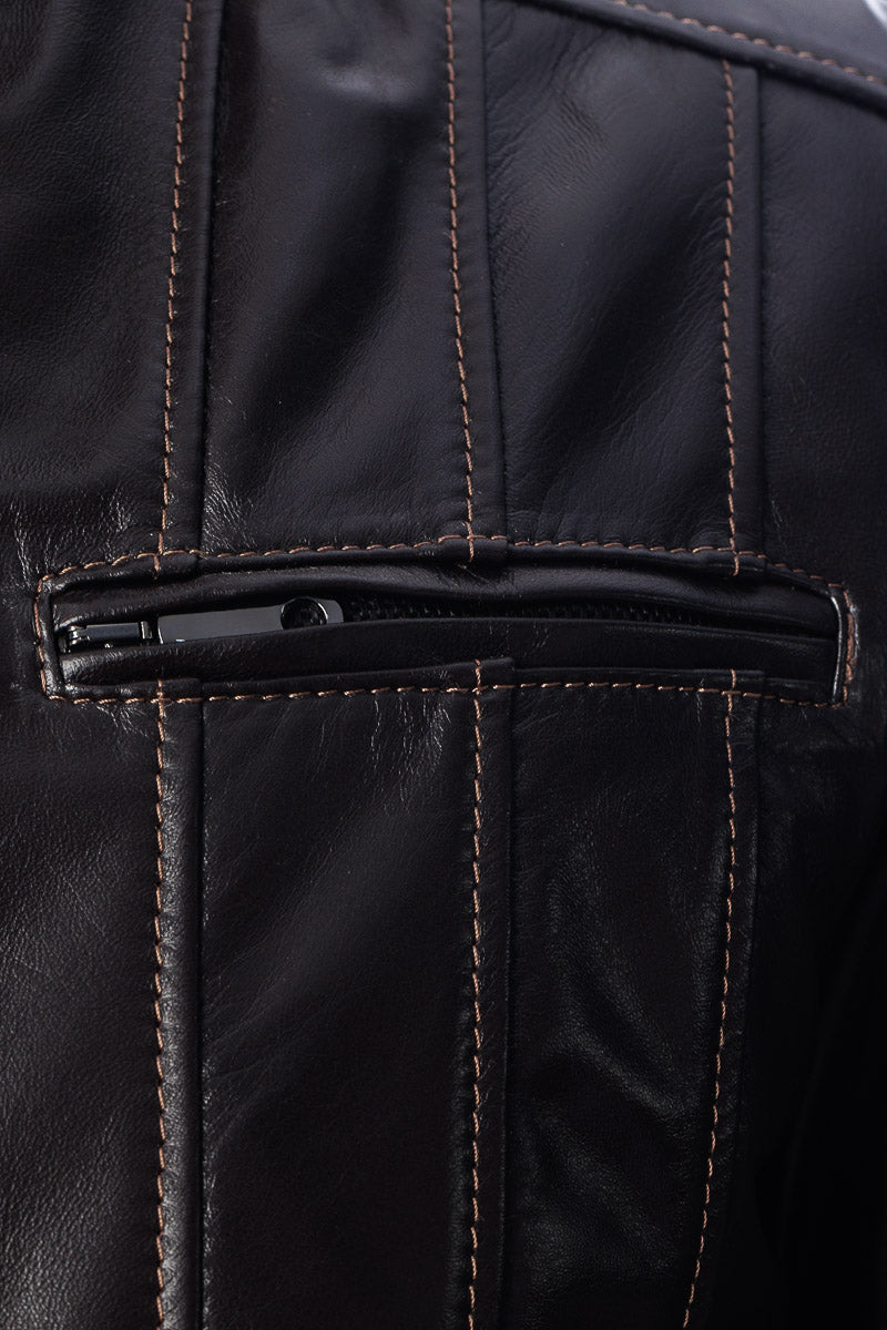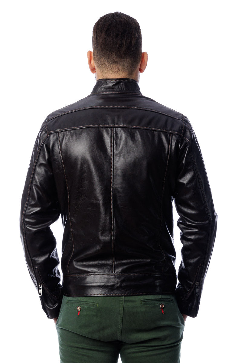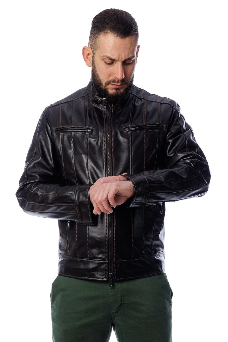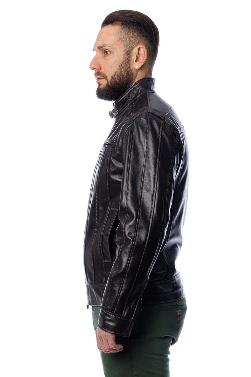 Giacca in vera pelle uomo con zip Piuma testa di moro